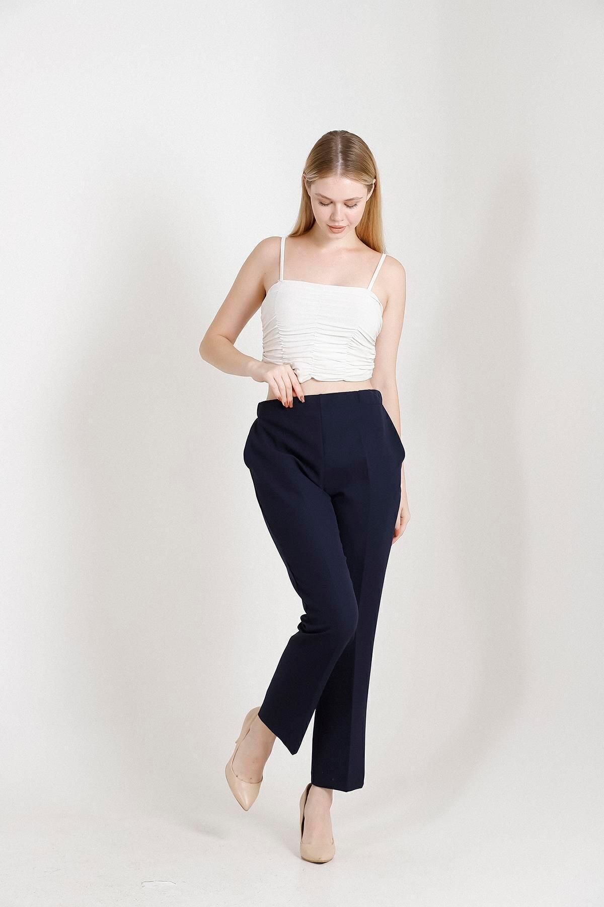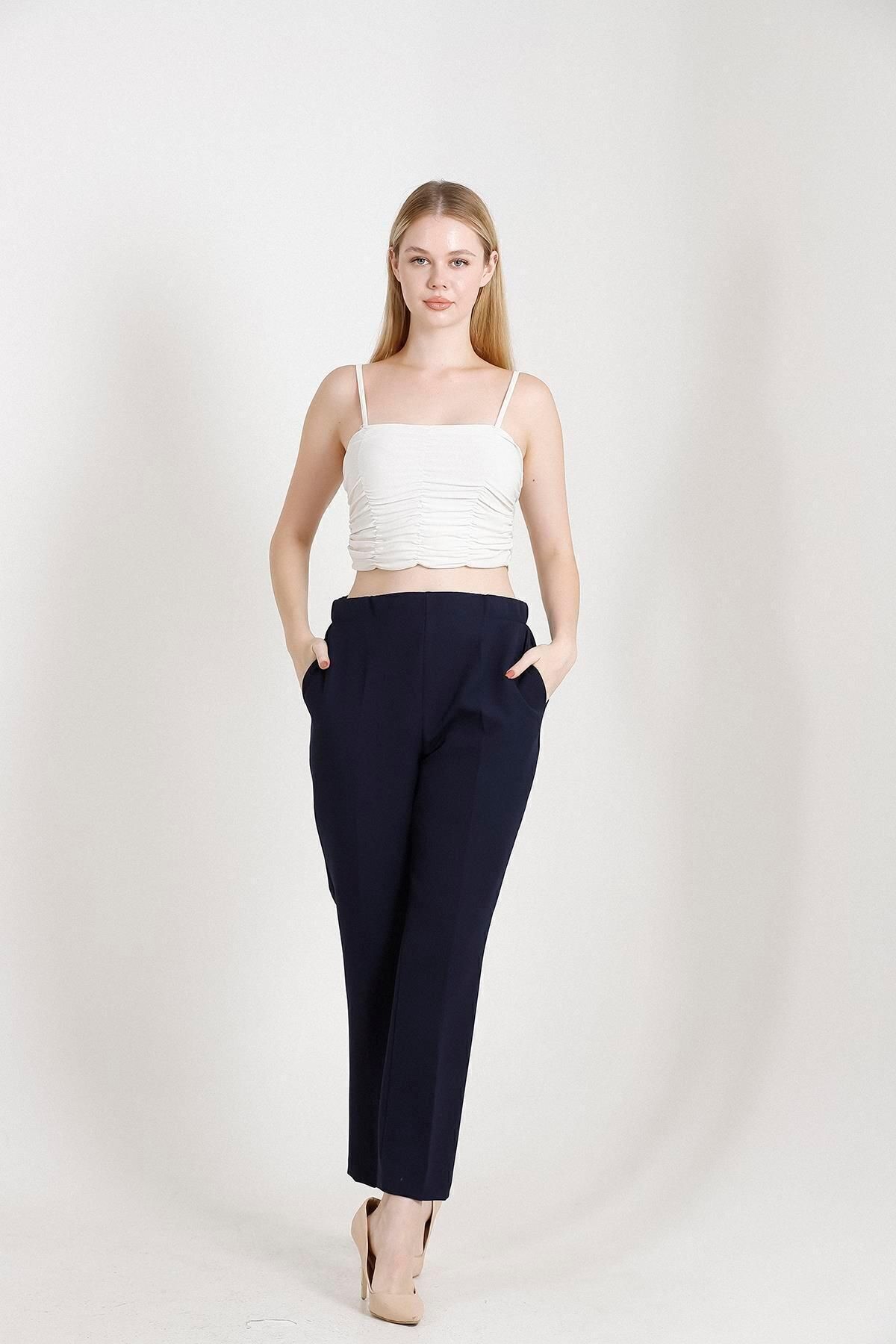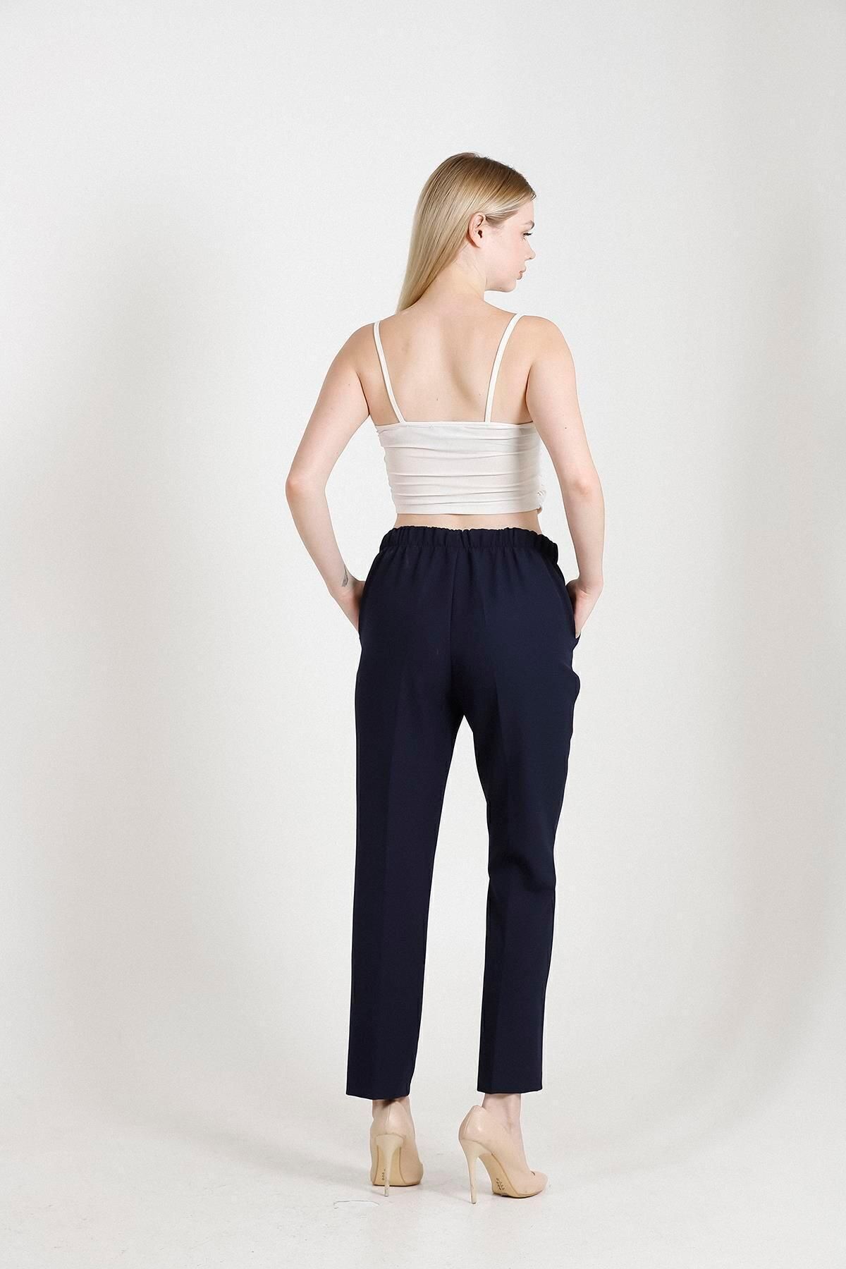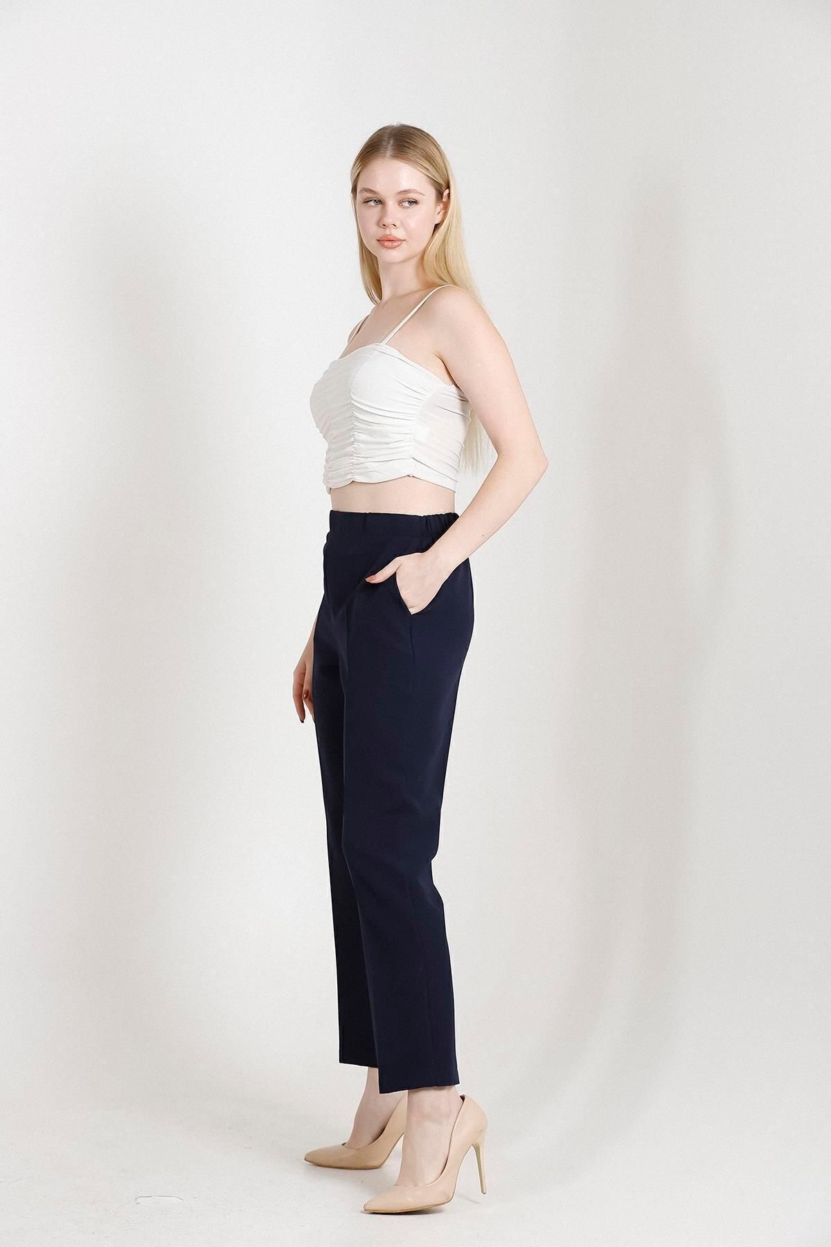 Balenbi 1009 Koyu Haki Boru Paça Yüksek Bel Likralı Dokuma Kadın Pantolon 36 - Lacivert