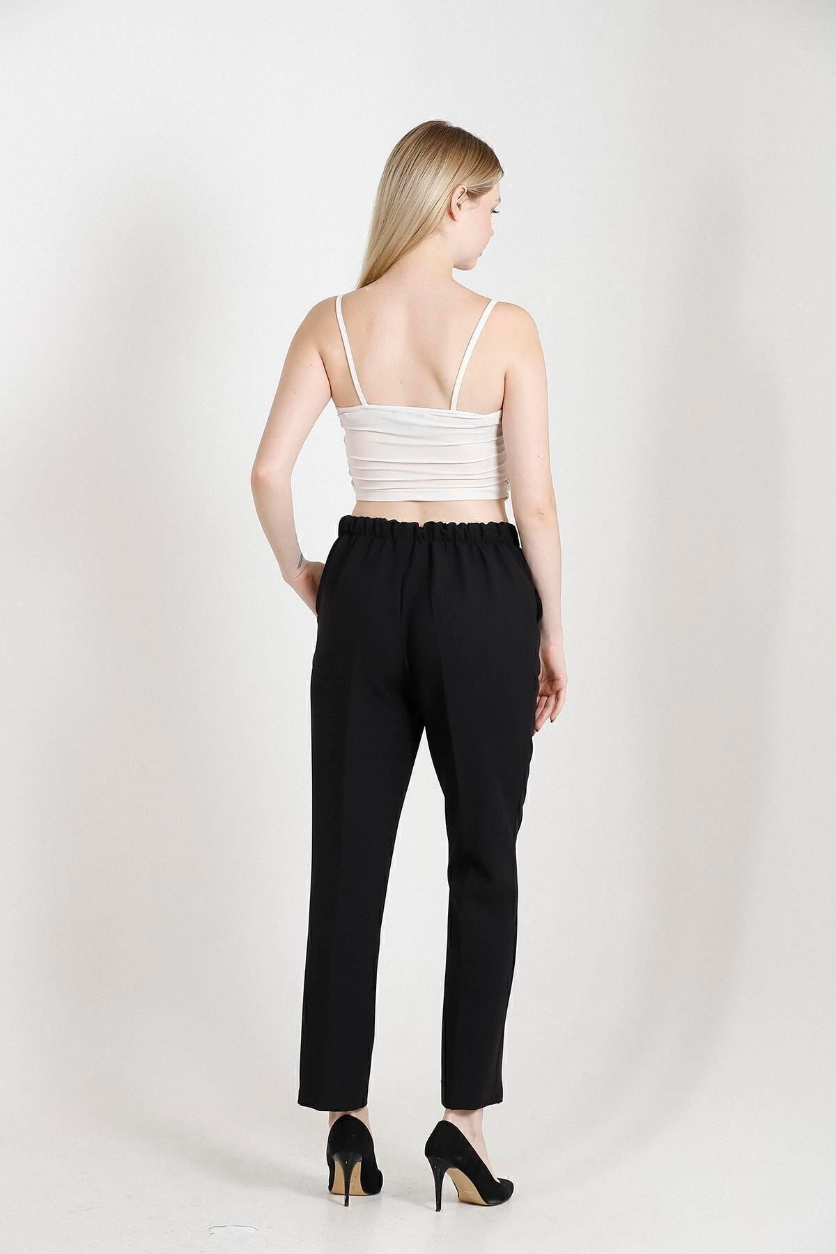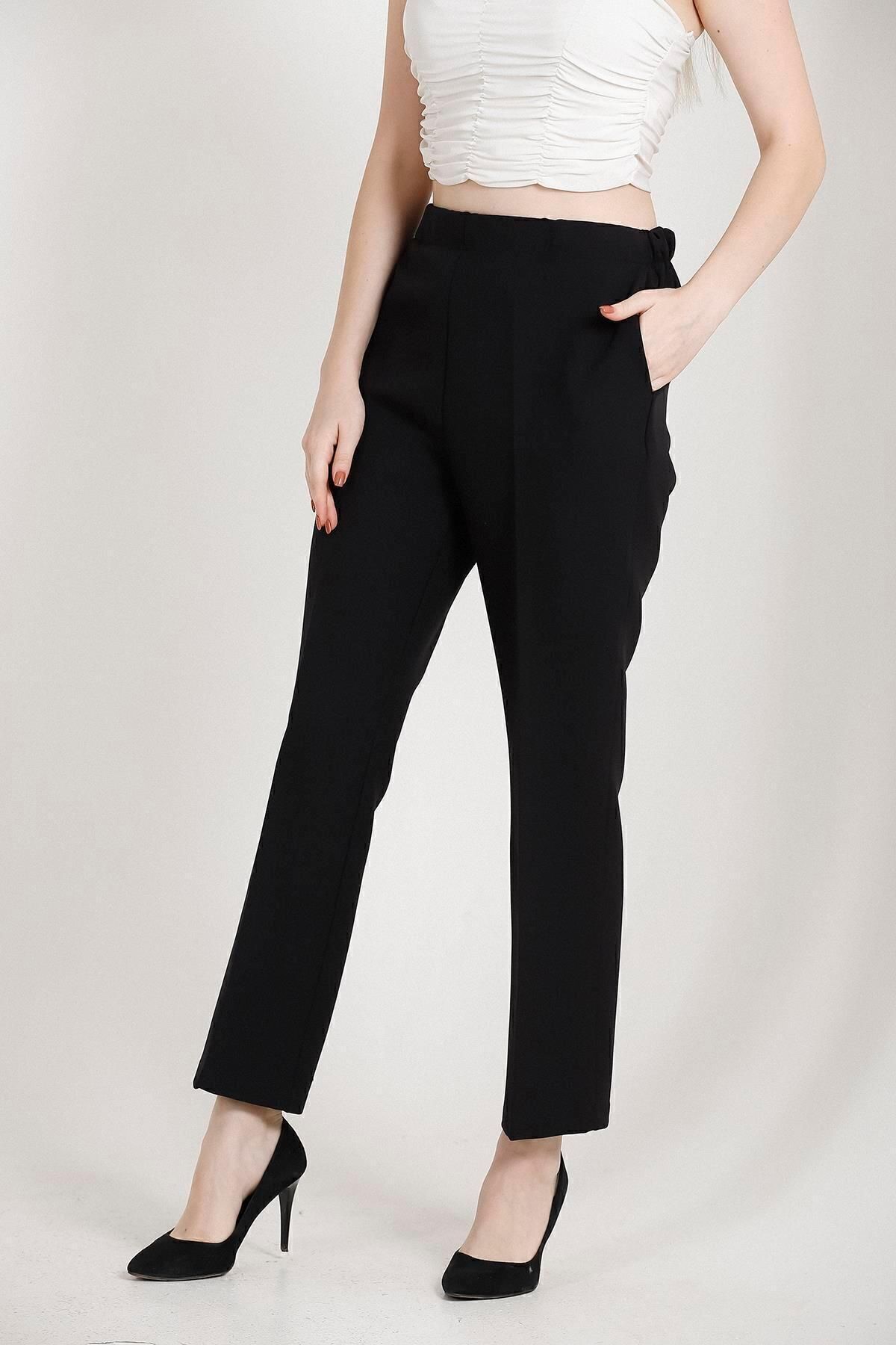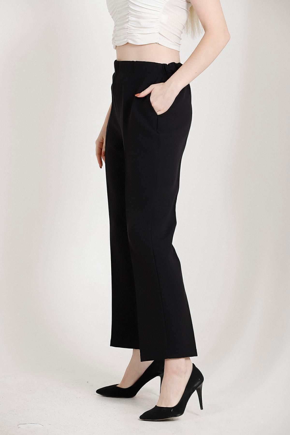 Balenbi 1009 Koyu Haki Boru Paça Yüksek Bel Likralı Dokuma Kadın Pantolon 36 - Siyah