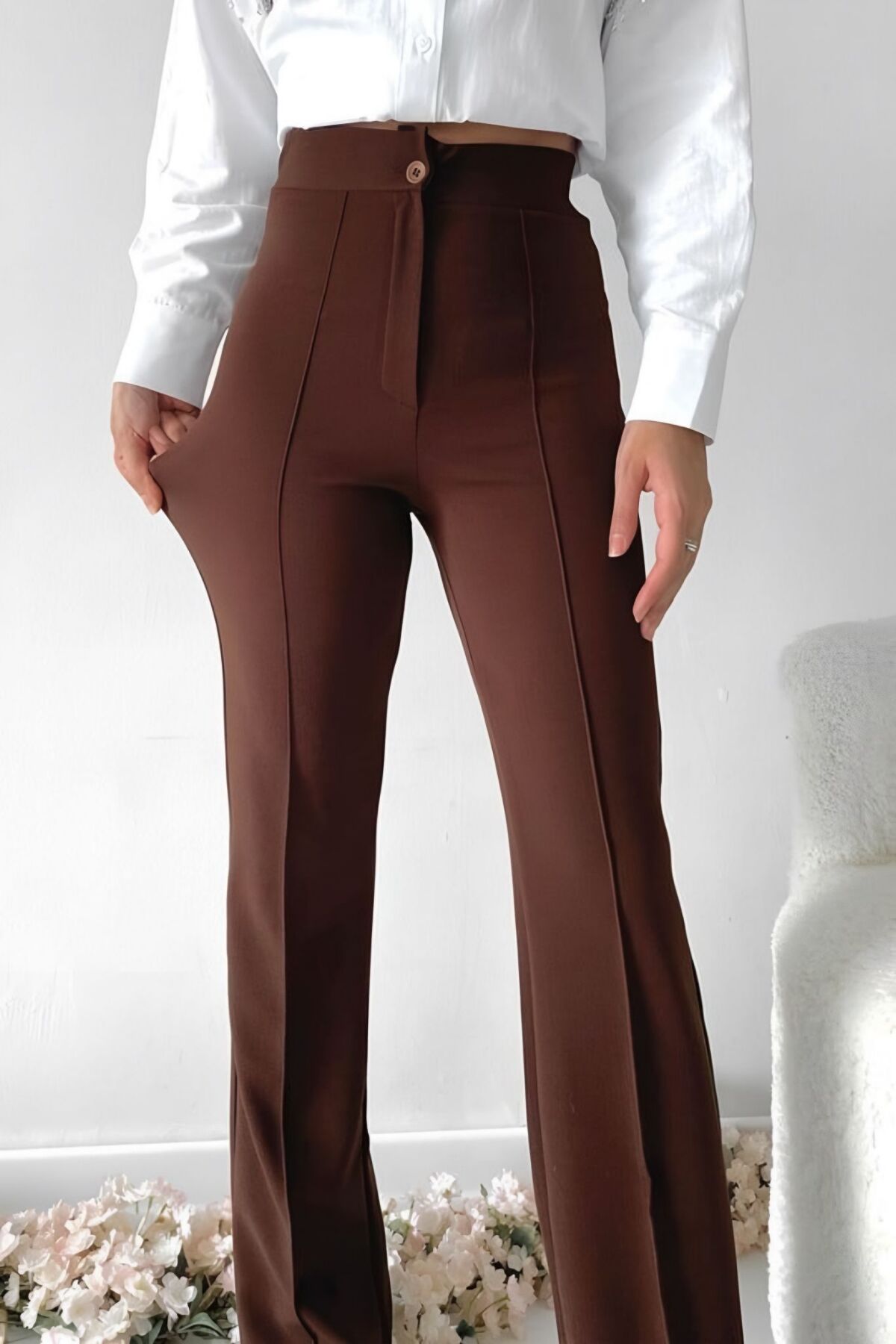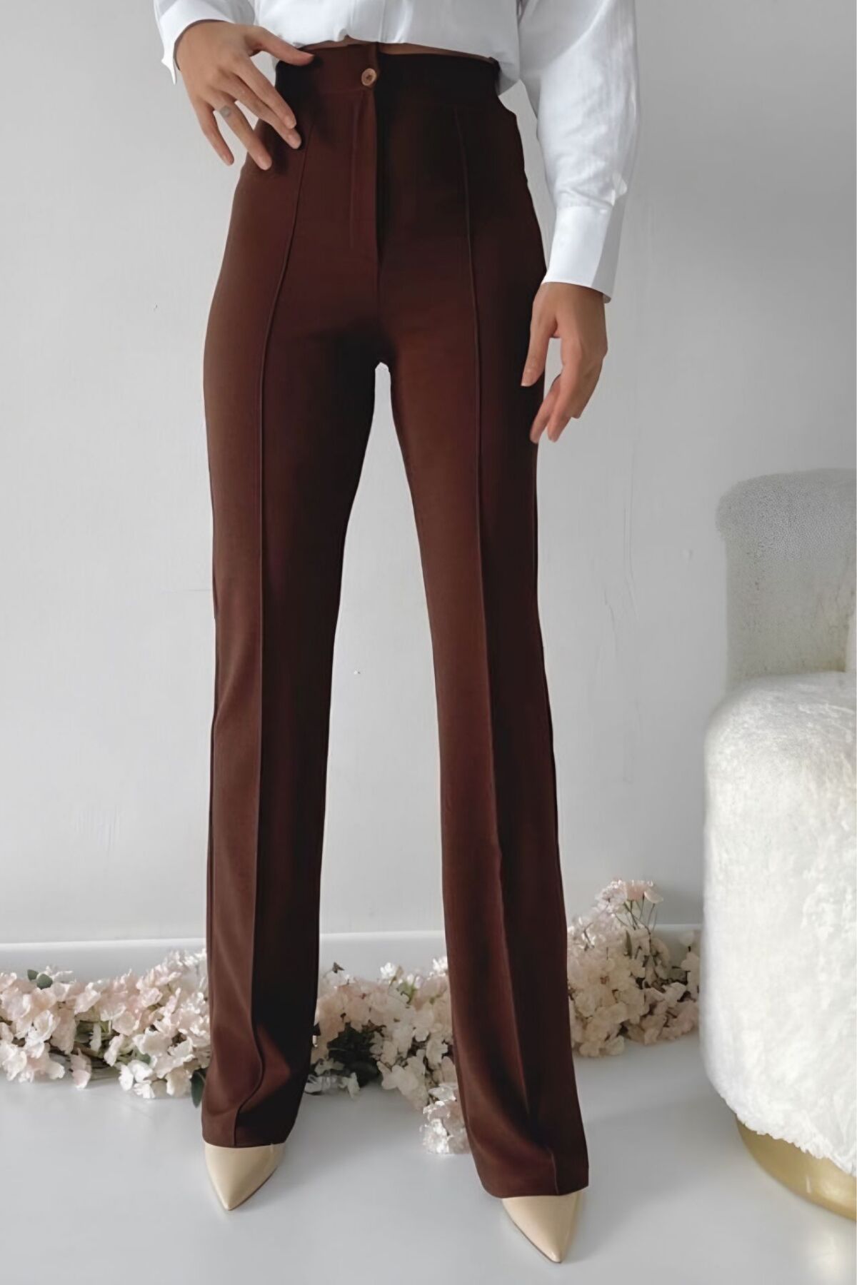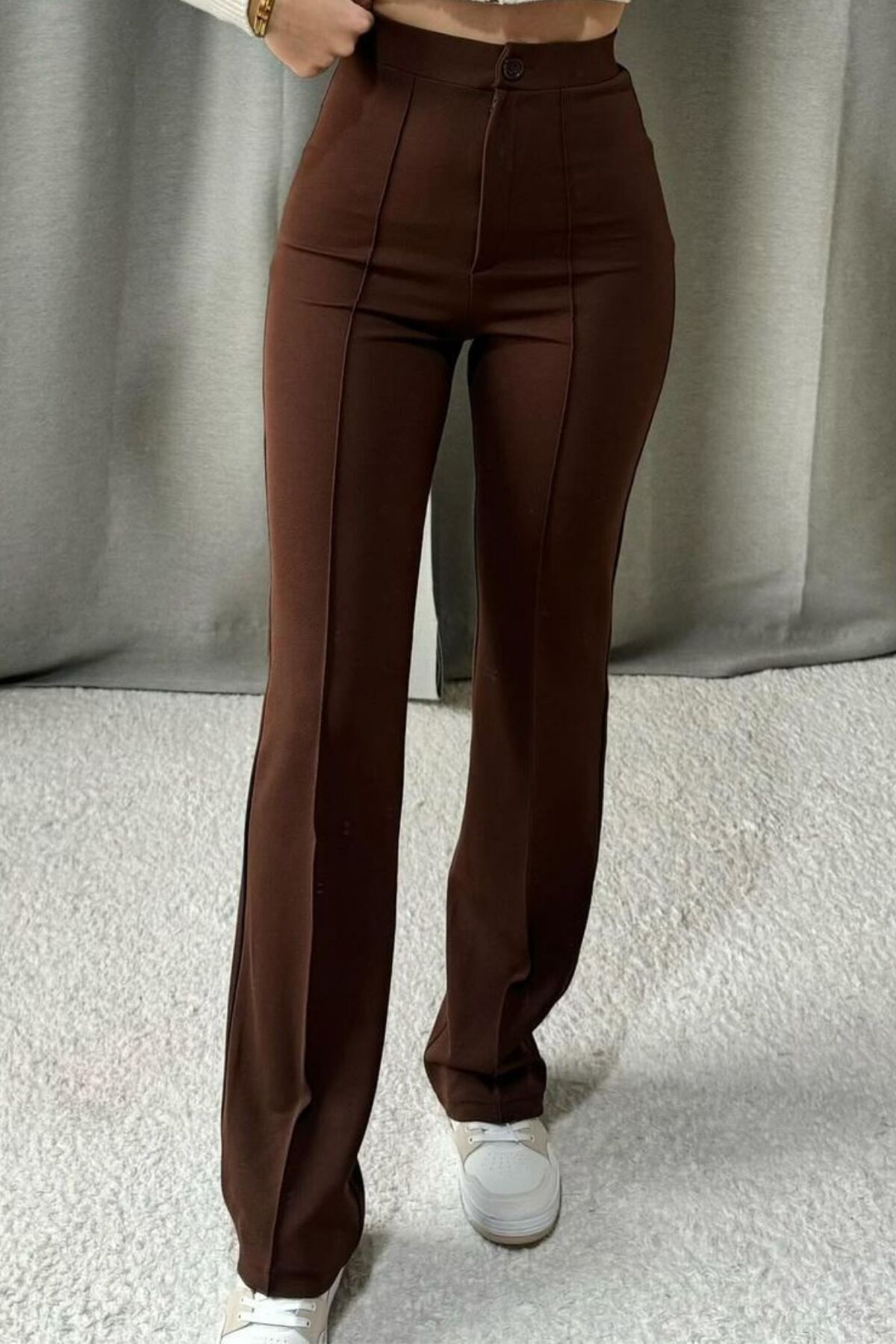 Balenbi 1079 Kadın Bej Yüksek Bel Toparlayıcı Ispanyol Paça Palazzo Pantolon 40 - Acı Kahve