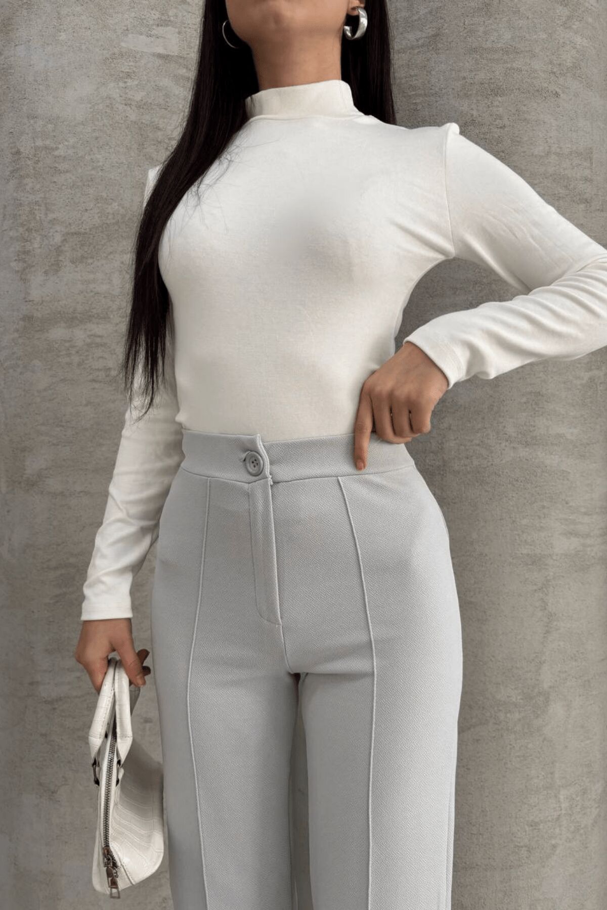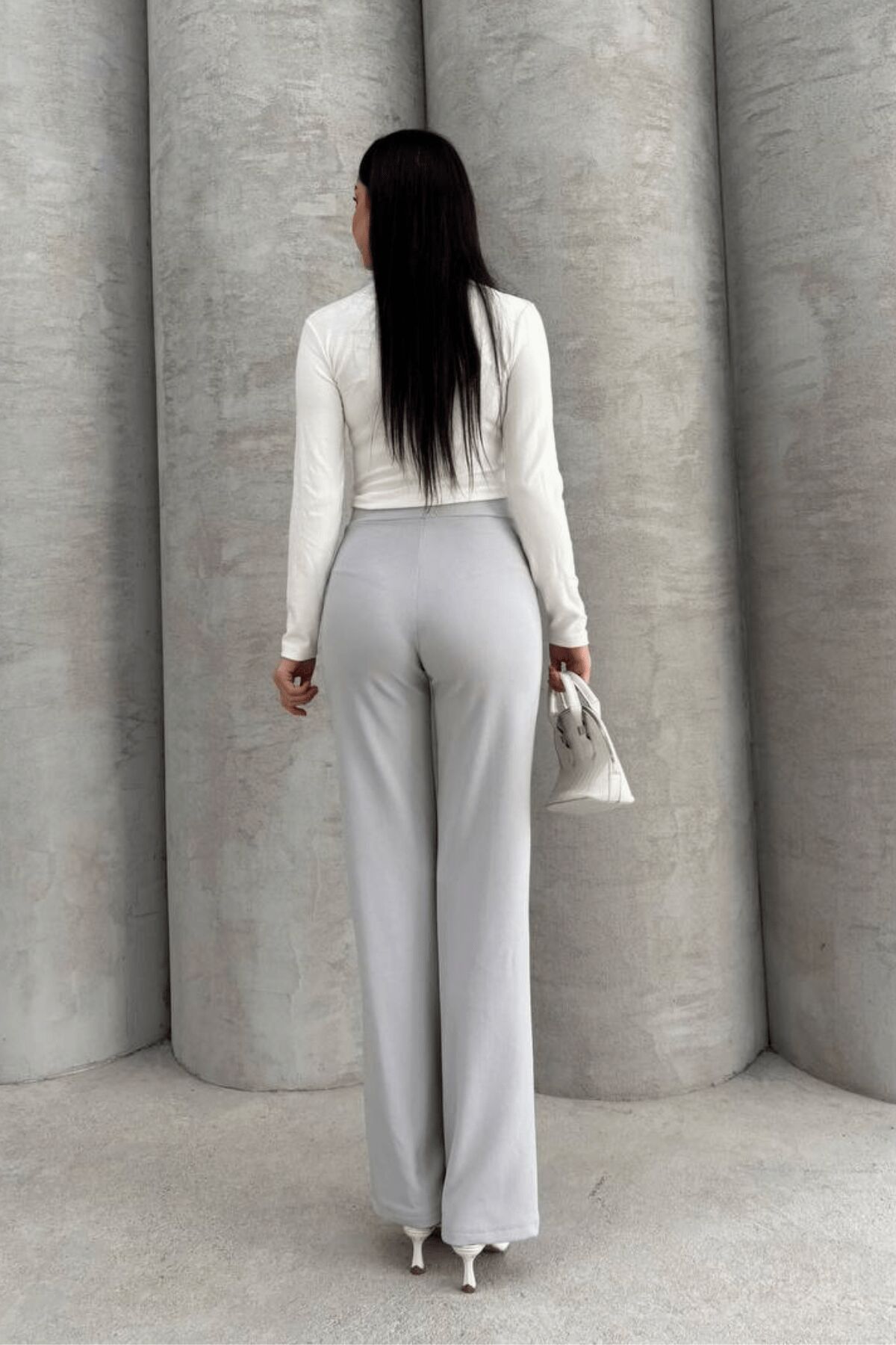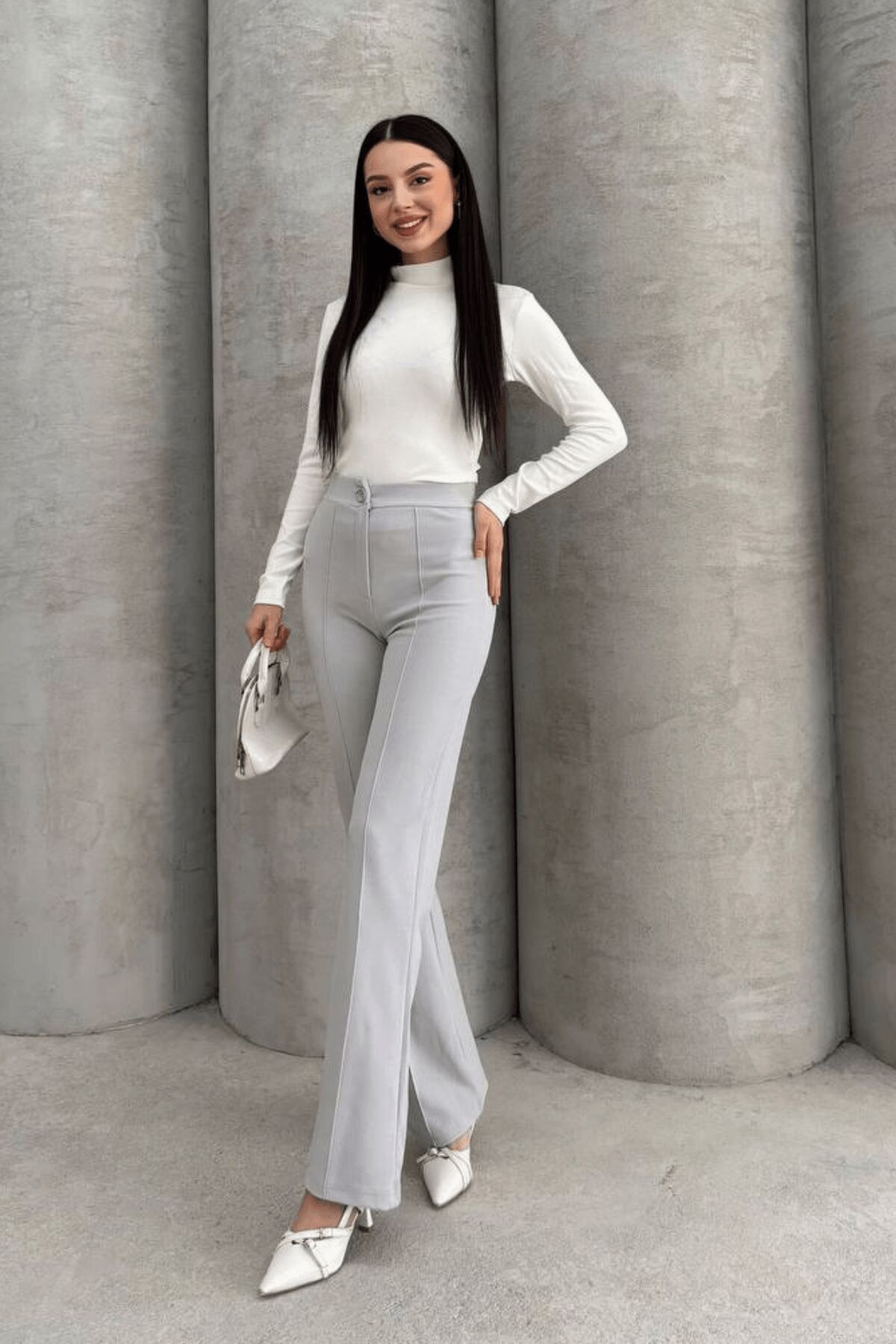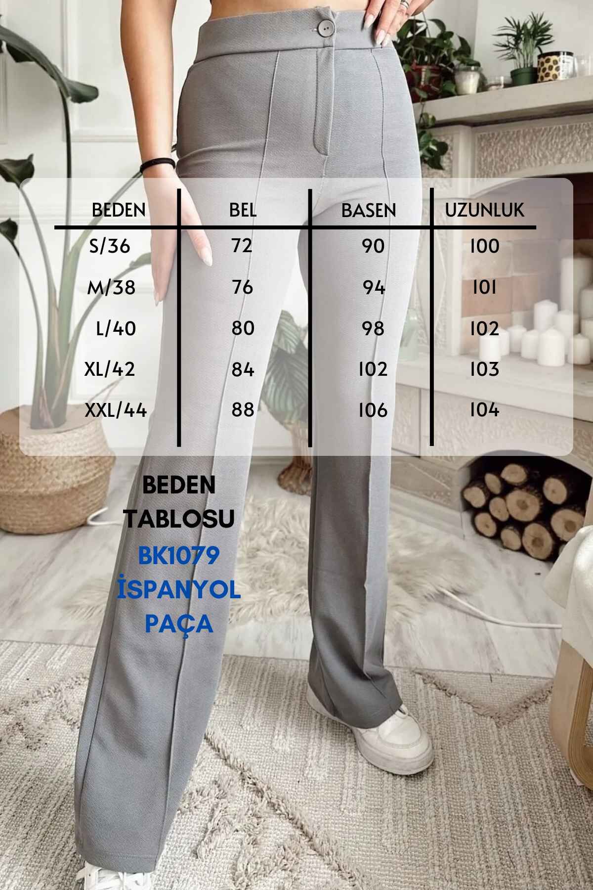 Balenbi 1079 Kadın Bej Yüksek Bel Toparlayıcı Ispanyol Paça Palazzo Pantolon 42 - Açık Gri