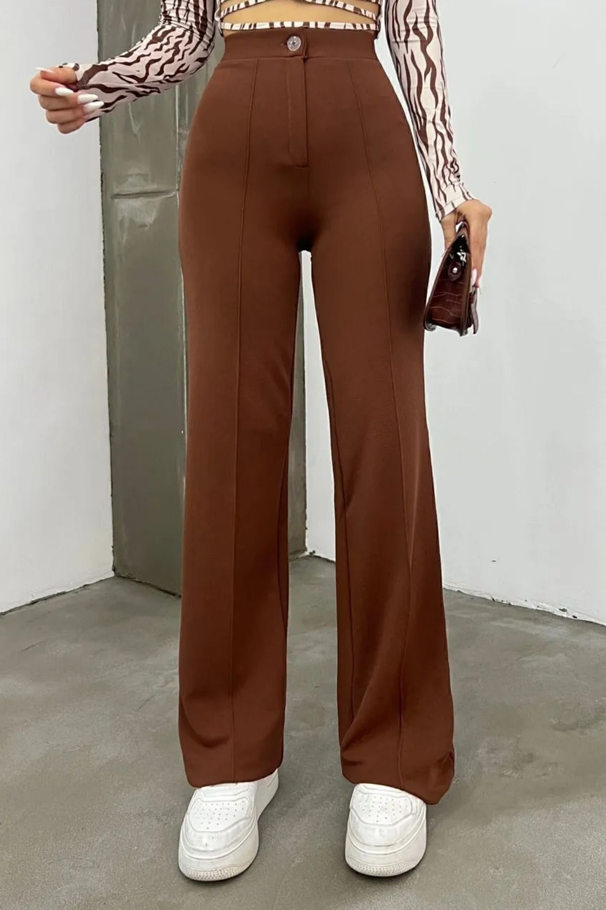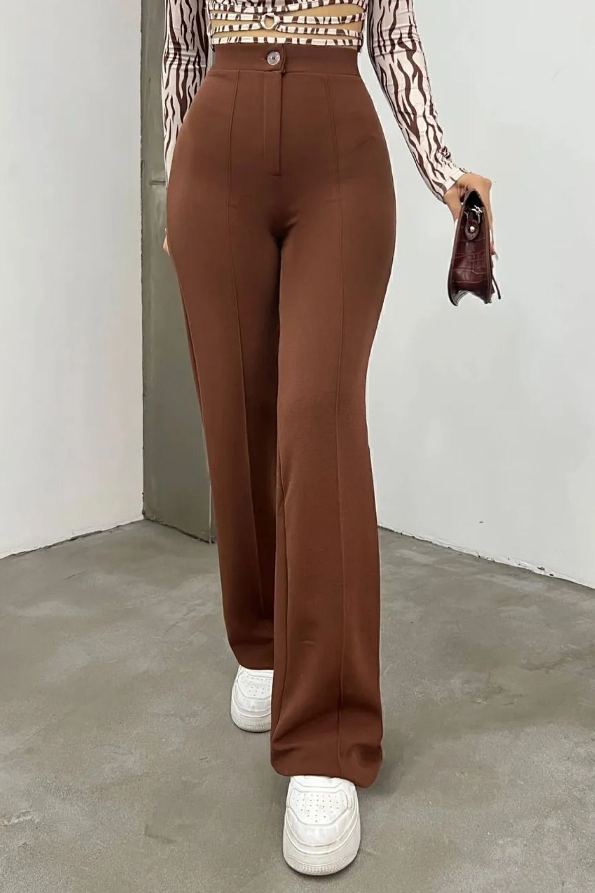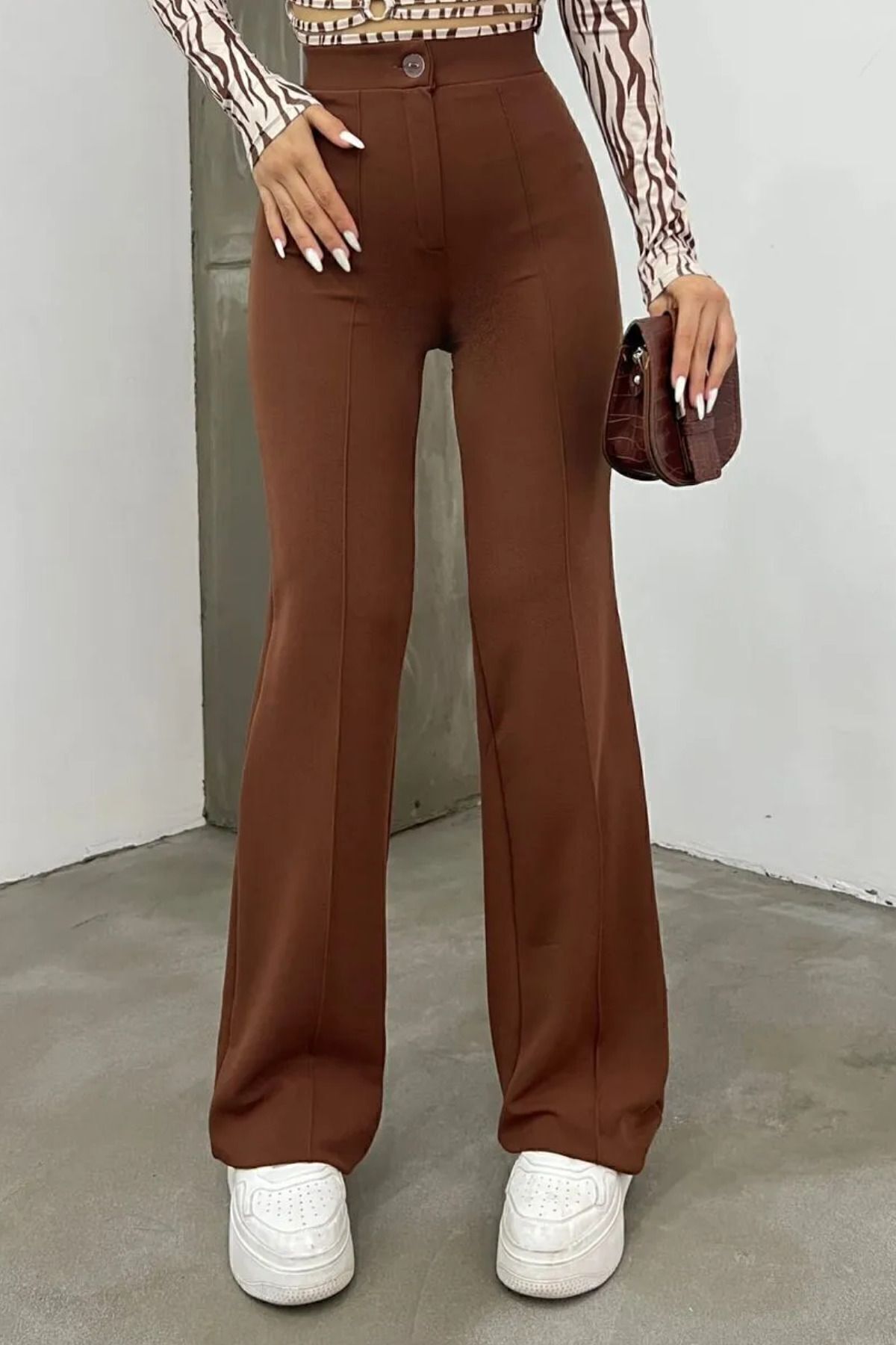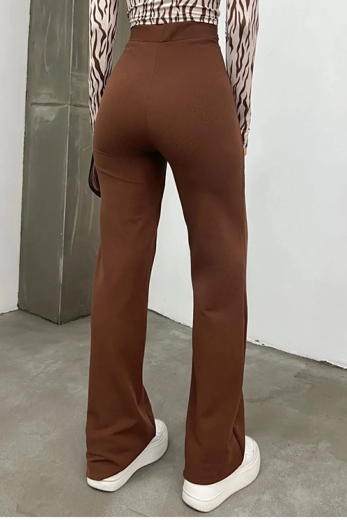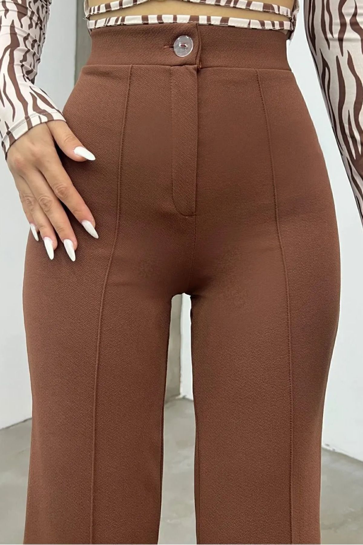 Balenbi 1079 Kadın Bej Yüksek Bel Toparlayıcı Ispanyol Paça Palazzo Pantolon 40 - Kahverengi