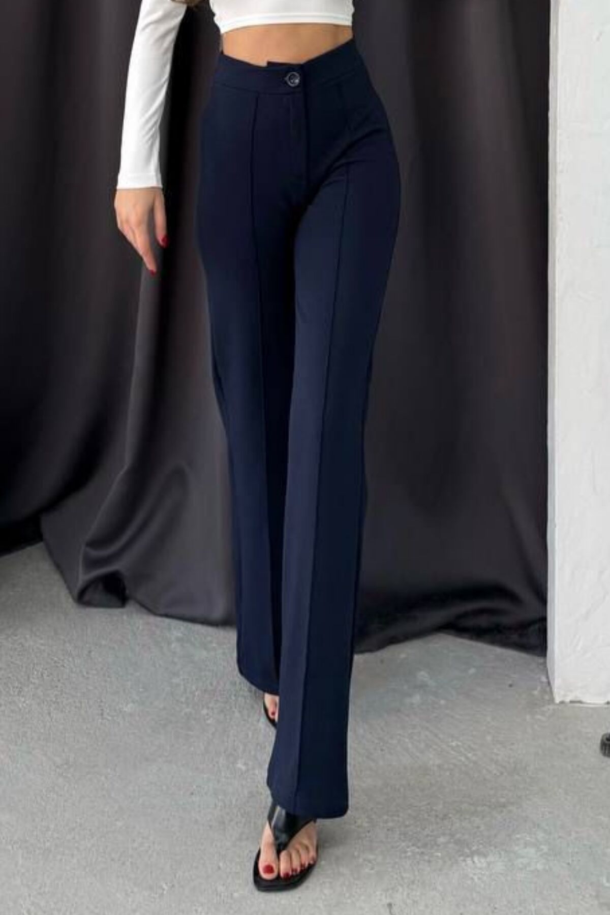 Balenbi 1079 Kadın Bej Yüksek Bel Toparlayıcı Ispanyol Paça Palazzo Pantolon 40 - Koyu Lacivert