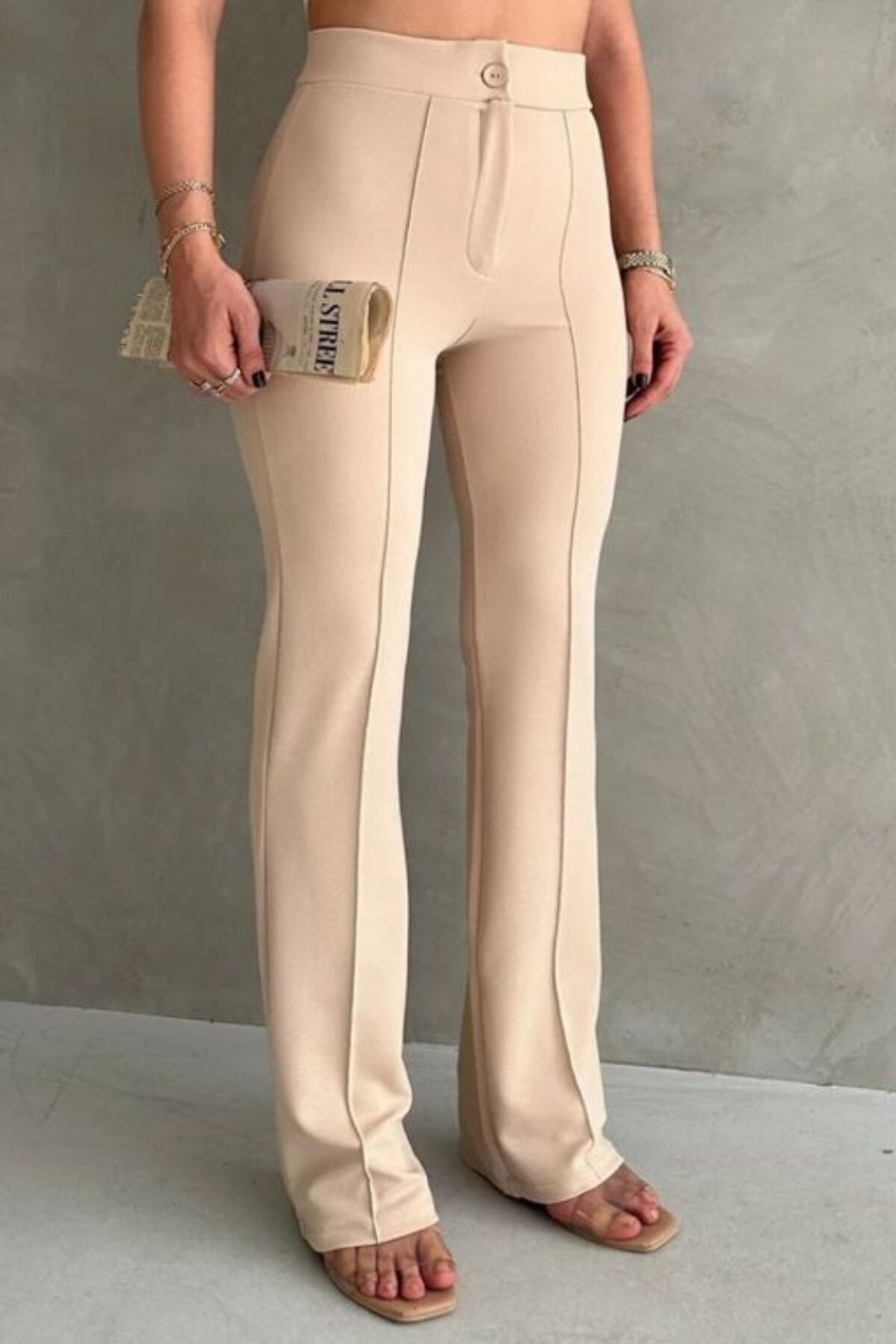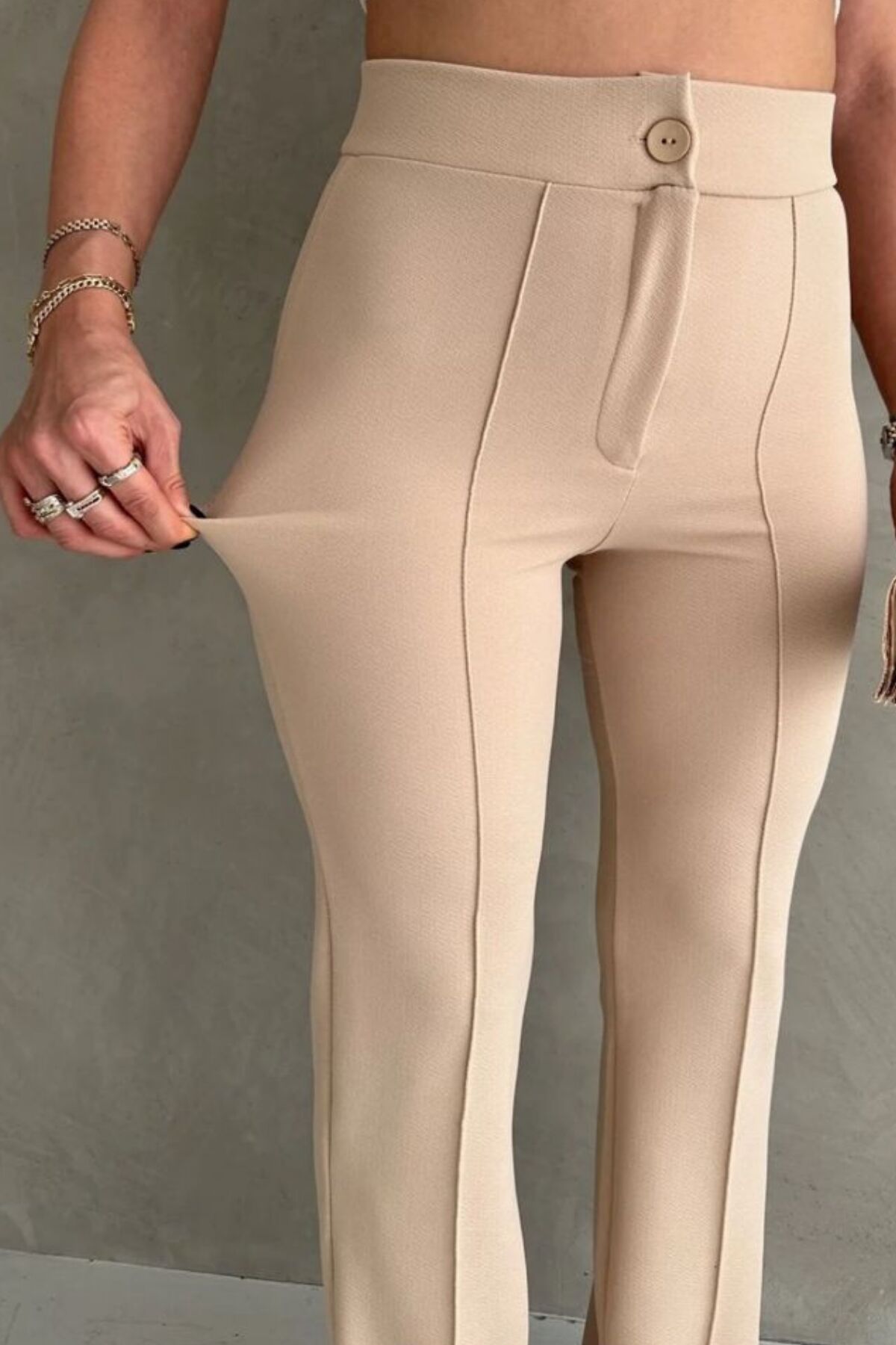 Balenbi 1079 Kadın Bej Yüksek Bel Toparlayıcı Ispanyol Paça Palazzo Pantolon 40 - Krem