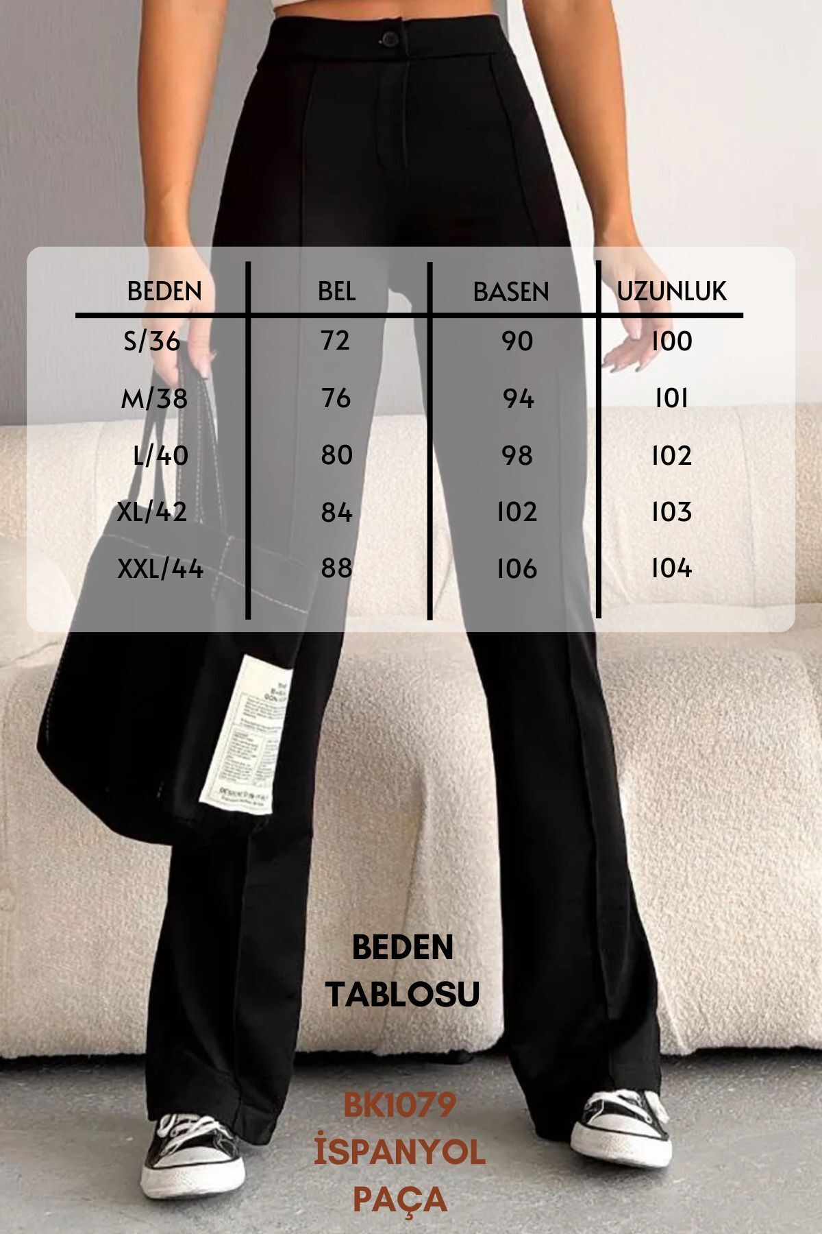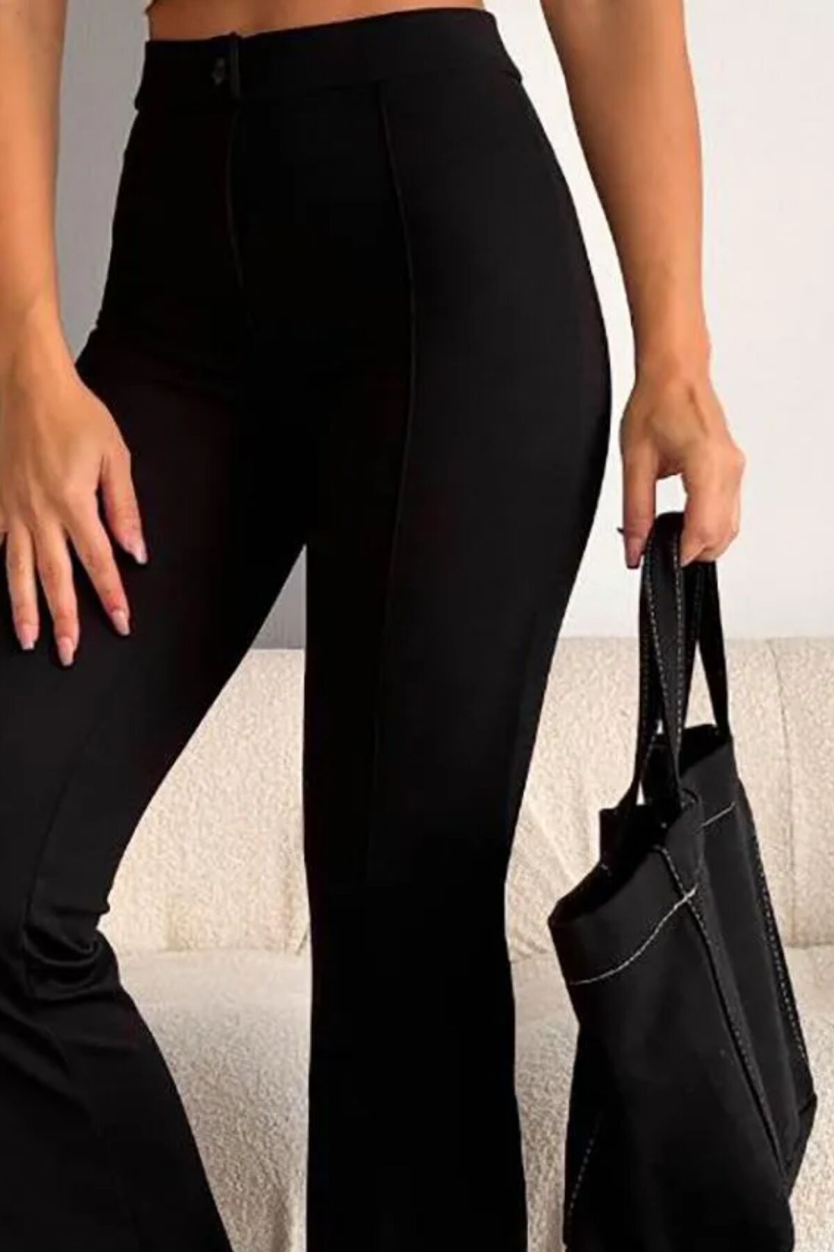 Balenbi 1079 Kadın Bej Yüksek Bel Toparlayıcı Ispanyol Paça Palazzo Pantolon 38 - Siyah