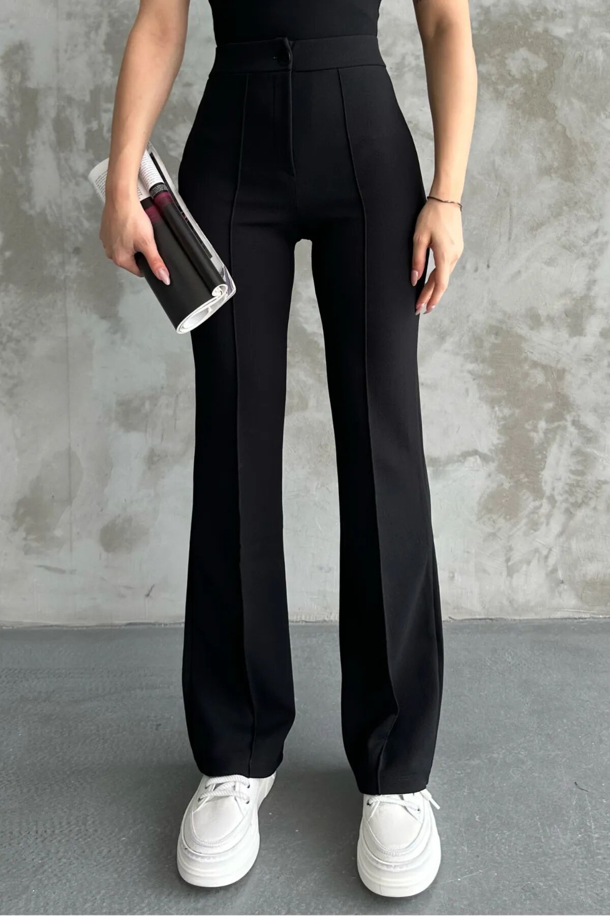 Balenbi 1079 Kadın Yüksek Bel Toparlayıcı İspanyol Paça Palazzo Pantolon Balenbi'nin palazzo pantolonu, şıklığı ve konforu bir araya getiriyor.; Yüksek bel tasarımı ve toparlayıcı özelliği ile vücut hatlarını kusursuz bir şekilde ortaya çıkarırken, Full likralı yapısıyla da hareket özgürlüğü sunar.; İspanyol paça detayı ve düğmeli kemer ise pantolonu benzersiz kılar.; Marka sadeliği ve kalitesiyle öne çıkan Balenbi palazzo pantolonunu, günlük şıklığınızın vazgeçilmezi yapabilirsiniz.; Bu muhteşem parçayı hemen inceleyerek gardırobunuza eklemek için 'balenbi' mağazasını ziyaret edebilirsiniz.