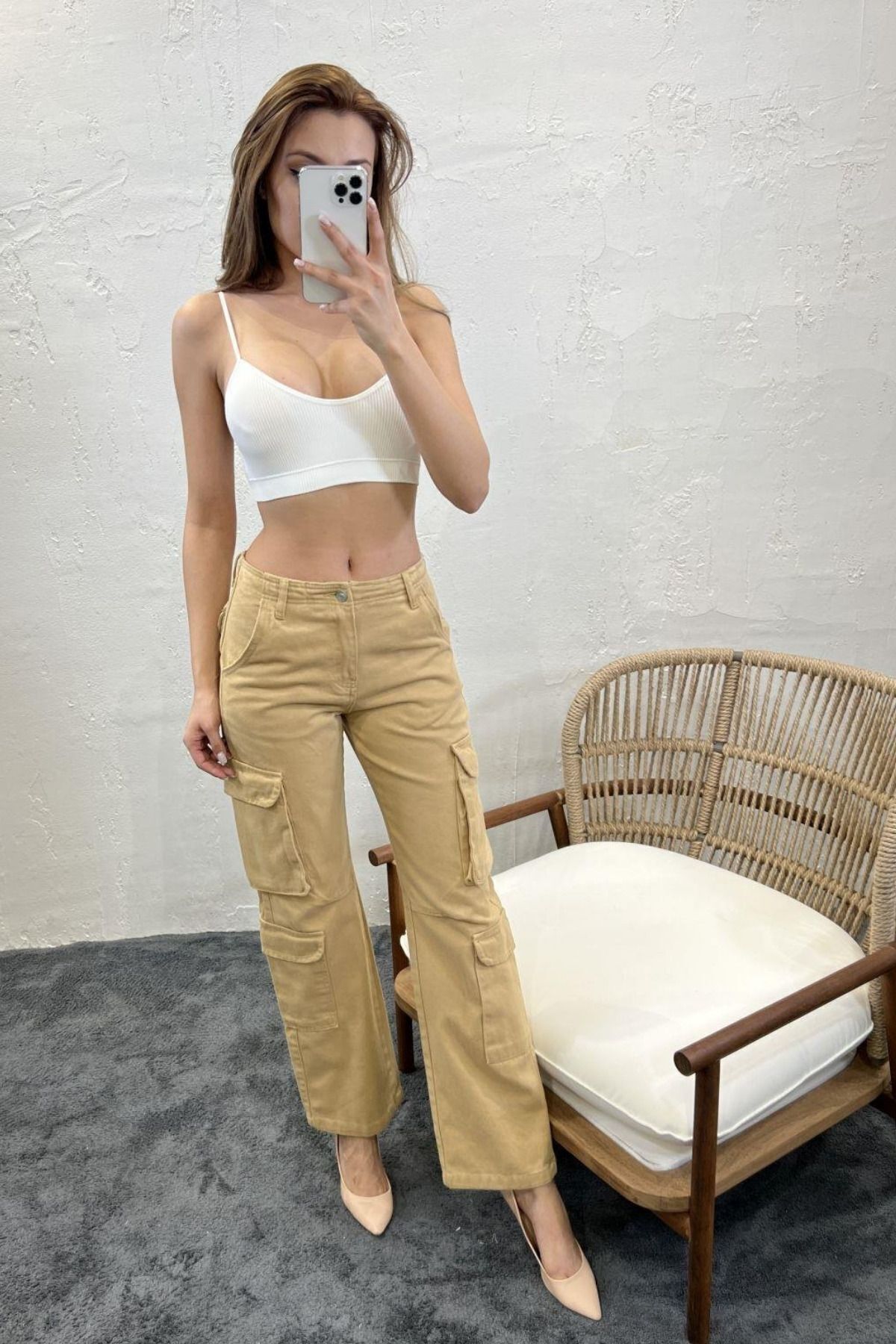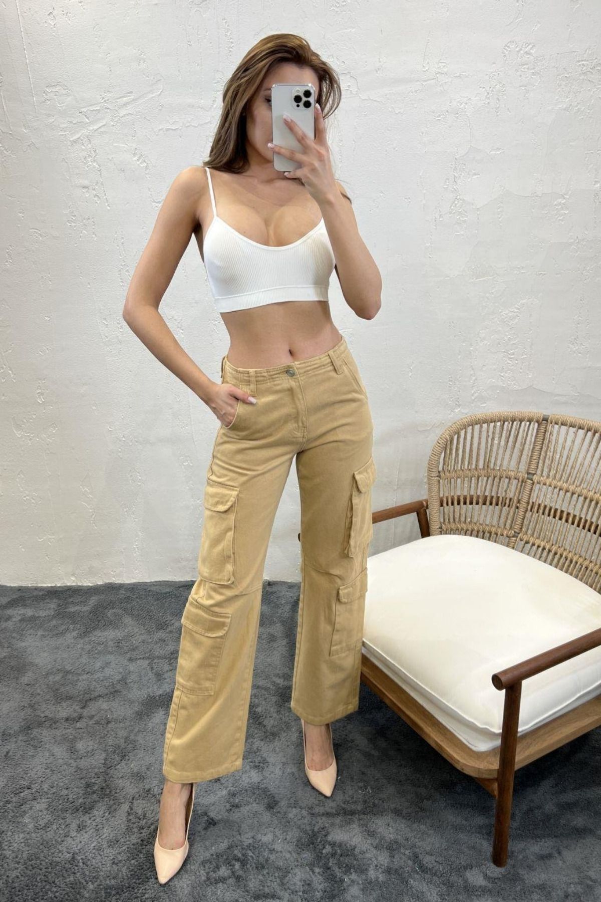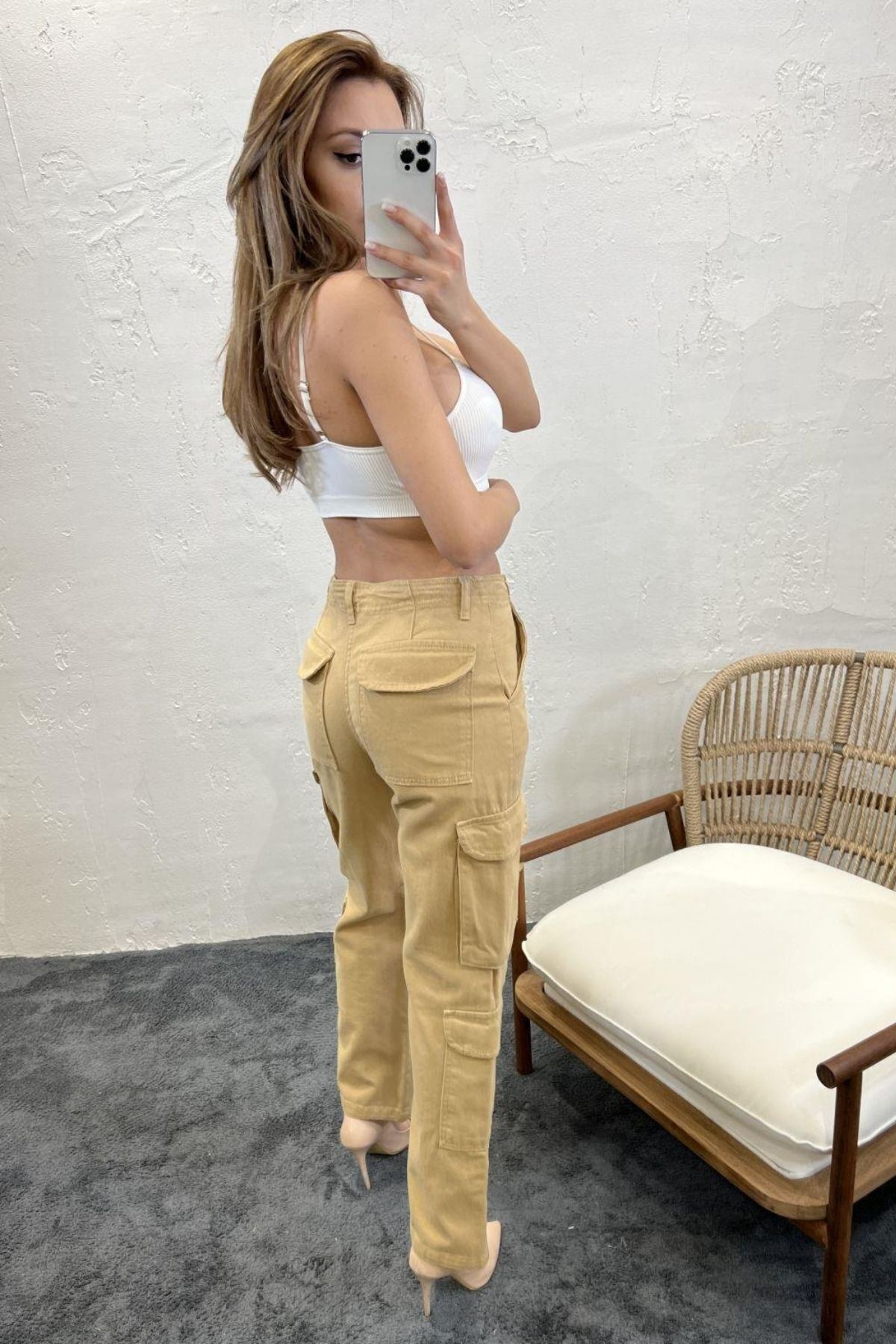 Balenbi 1084 Camel Kargo Cep Gabardin Kadın Pantolon 31 - Camel