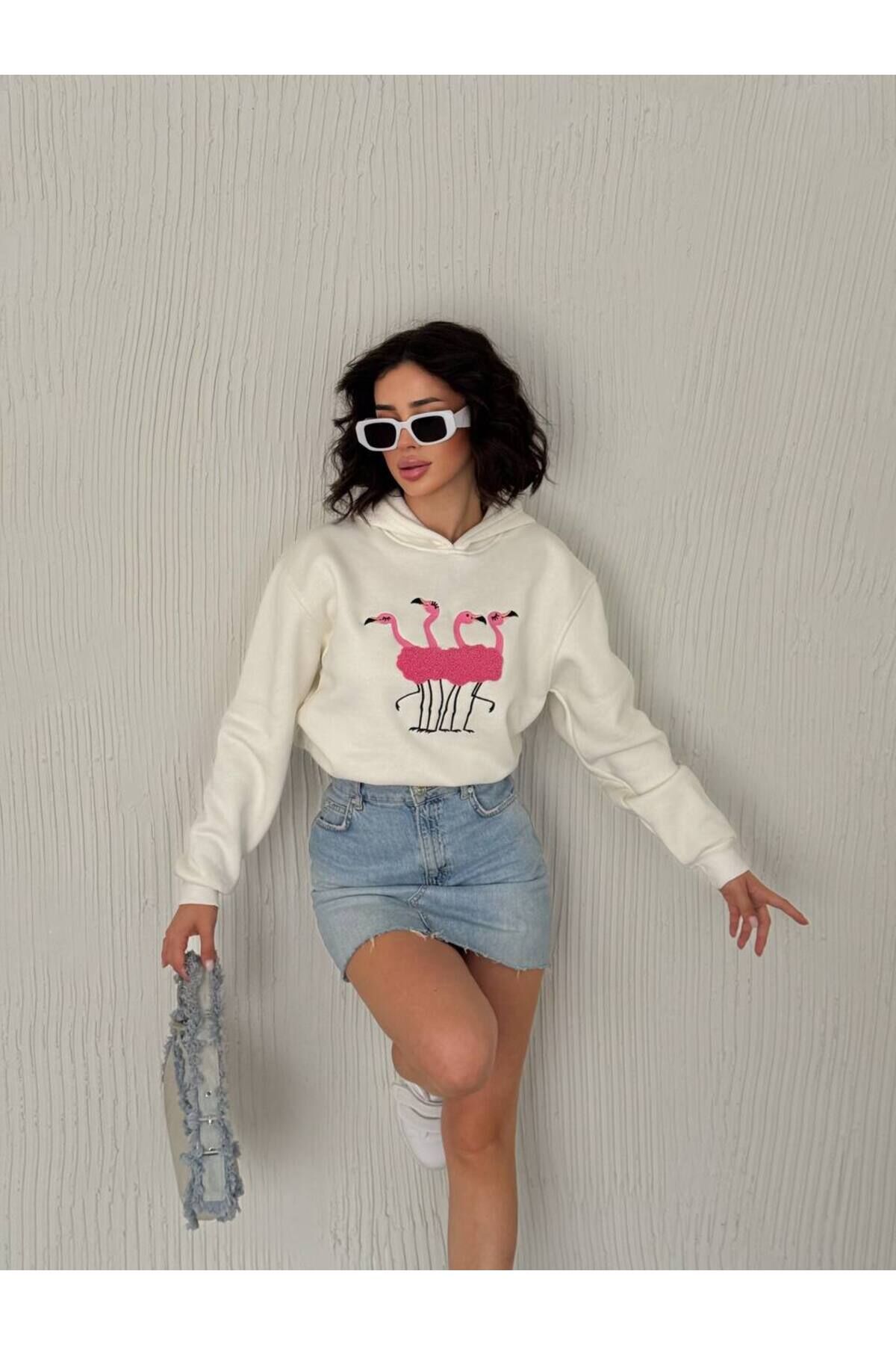 - Flamingo nakış detayları ile göz alıcı bir stil oluşturur.
