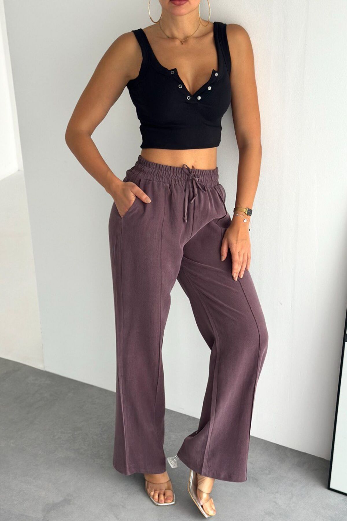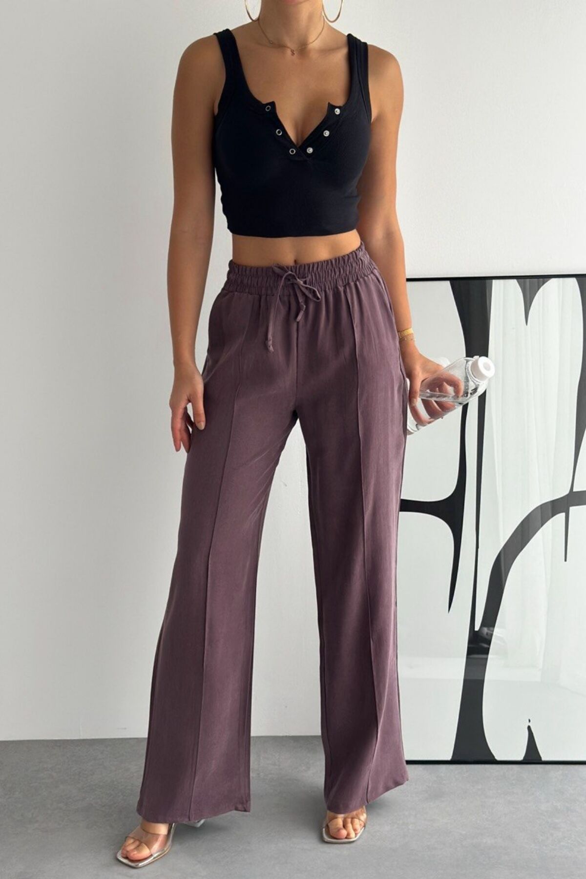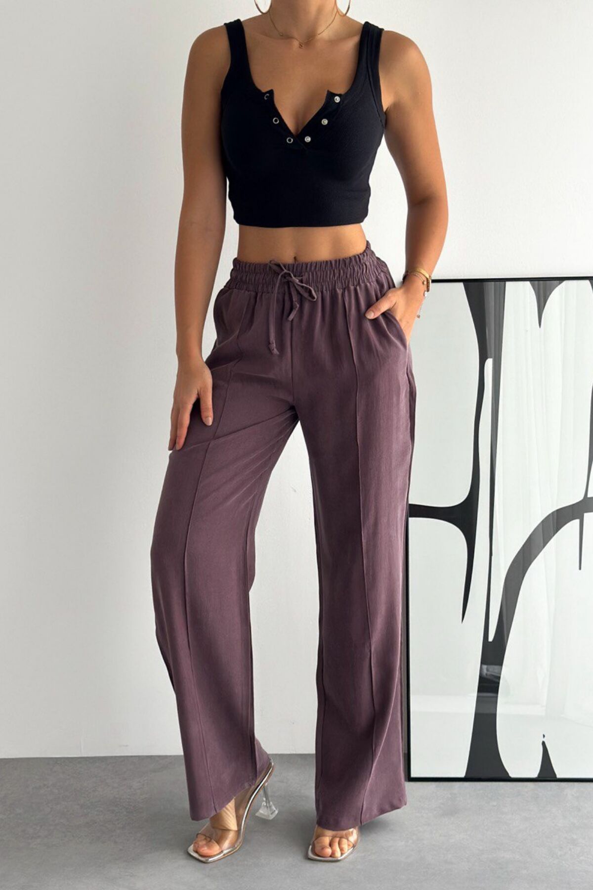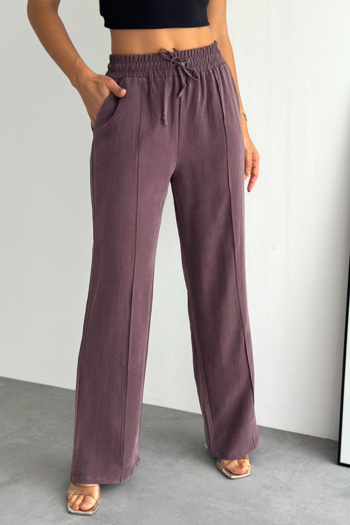 Balenbi Bağcıklı Beli Lastikli Çımalı Palazzo Gabardin Kadın Pantolon 1205 - Form Serisi