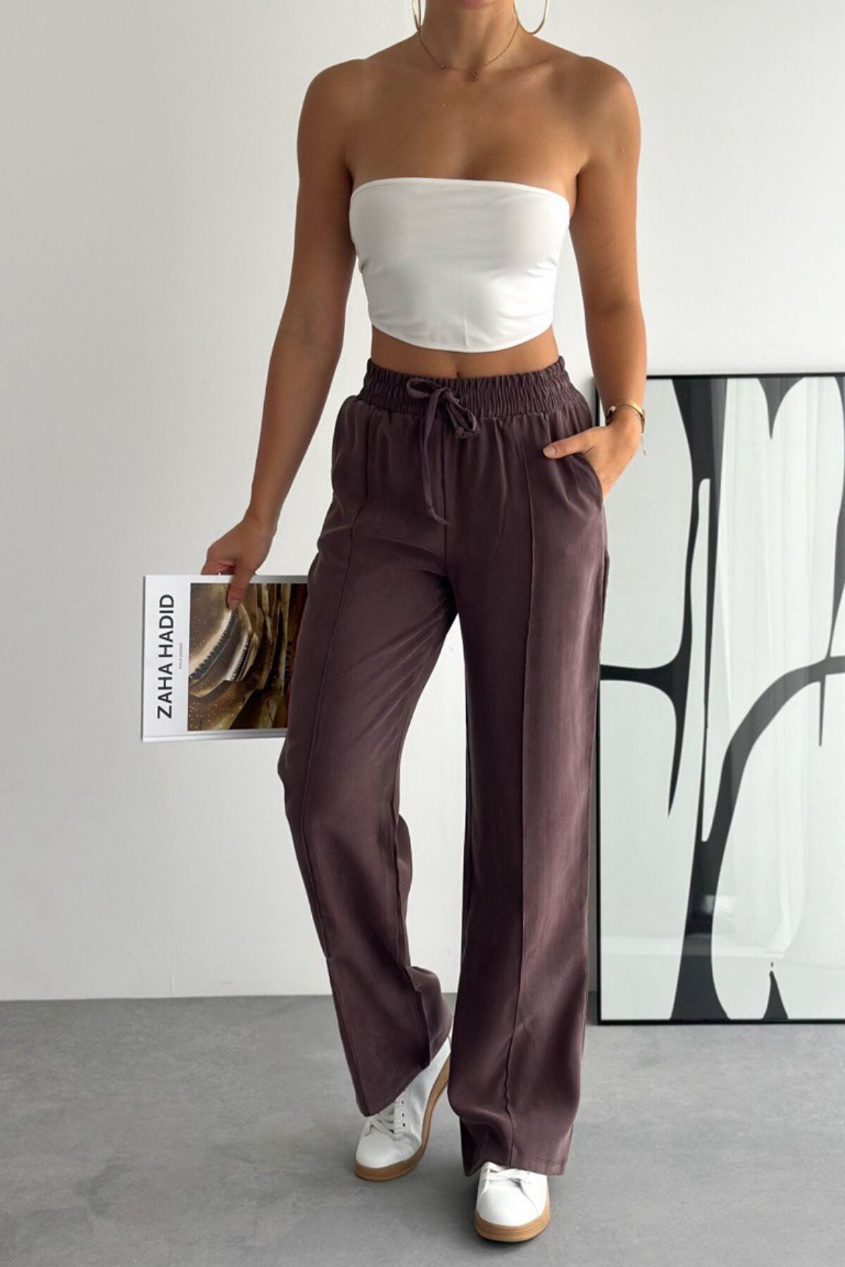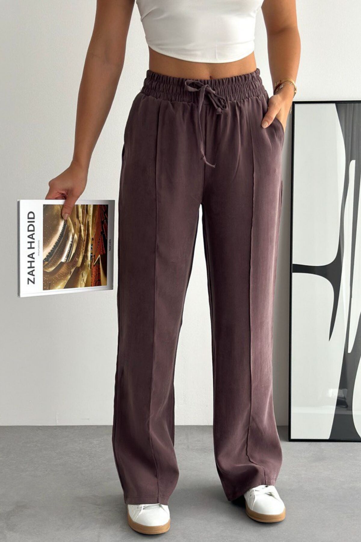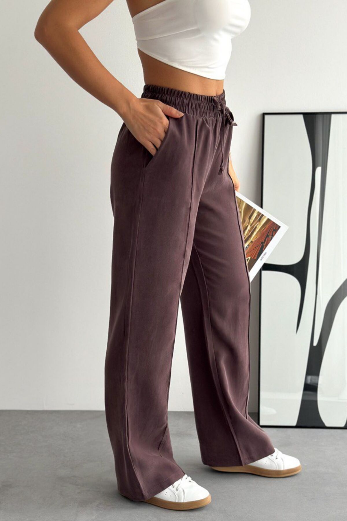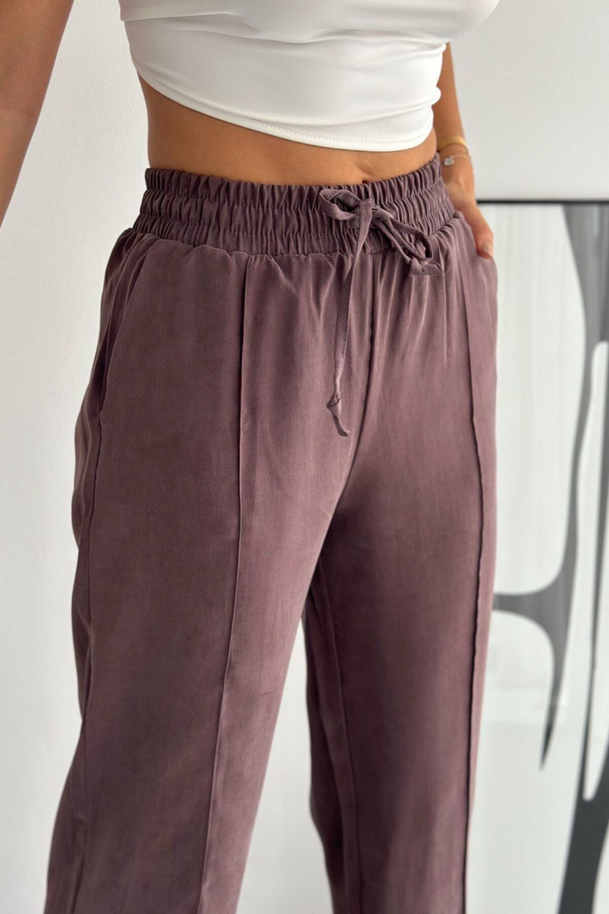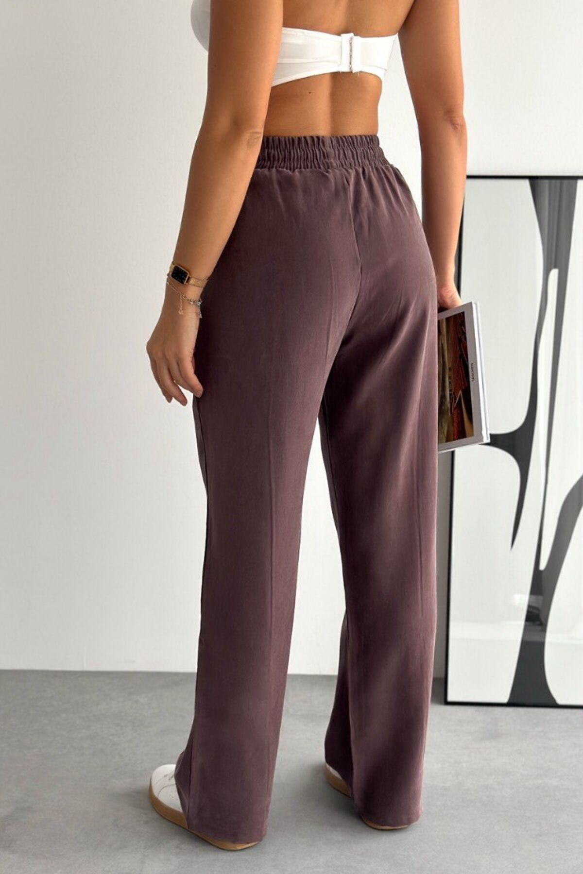 Balenbi Bağcıklı Beli Lastikli Çımalı Palazzo Gabardin Kadın Pantolon 1205 - Form Serisi 36 - Kahverengi