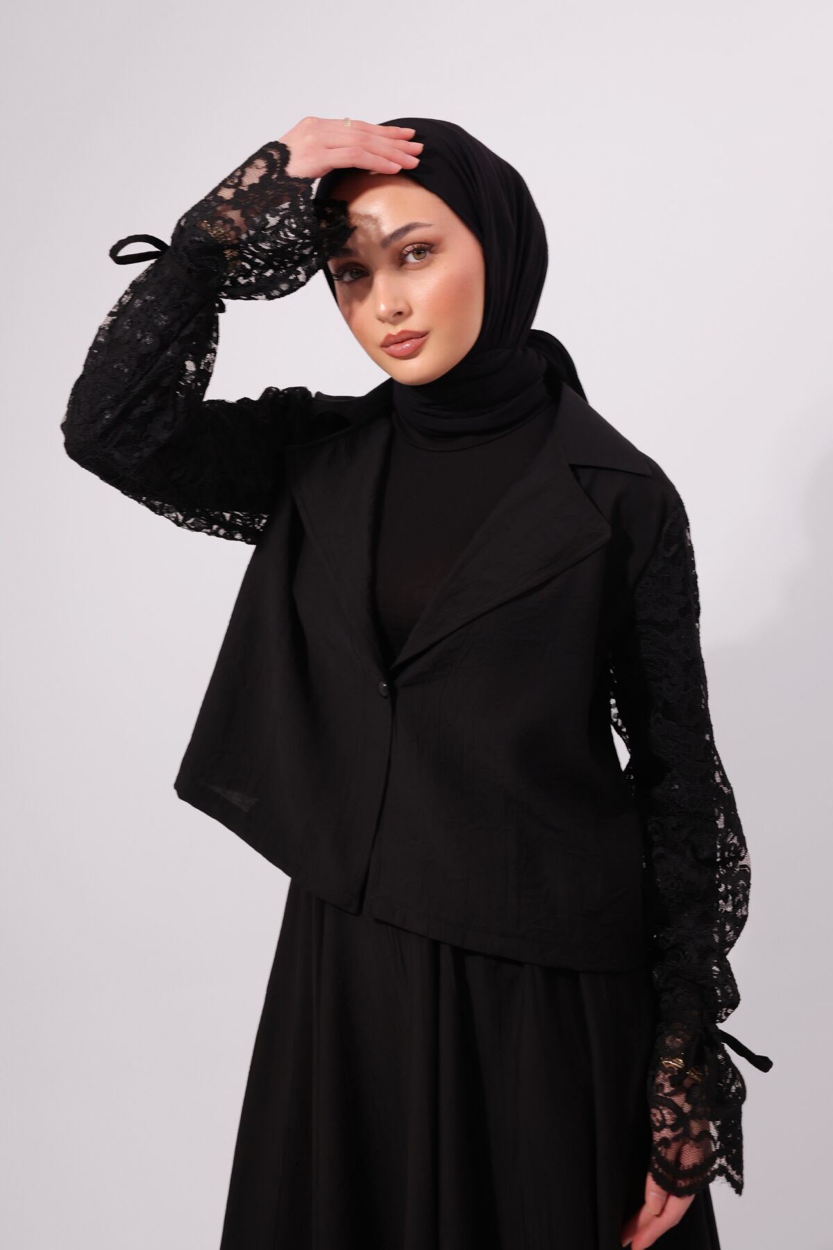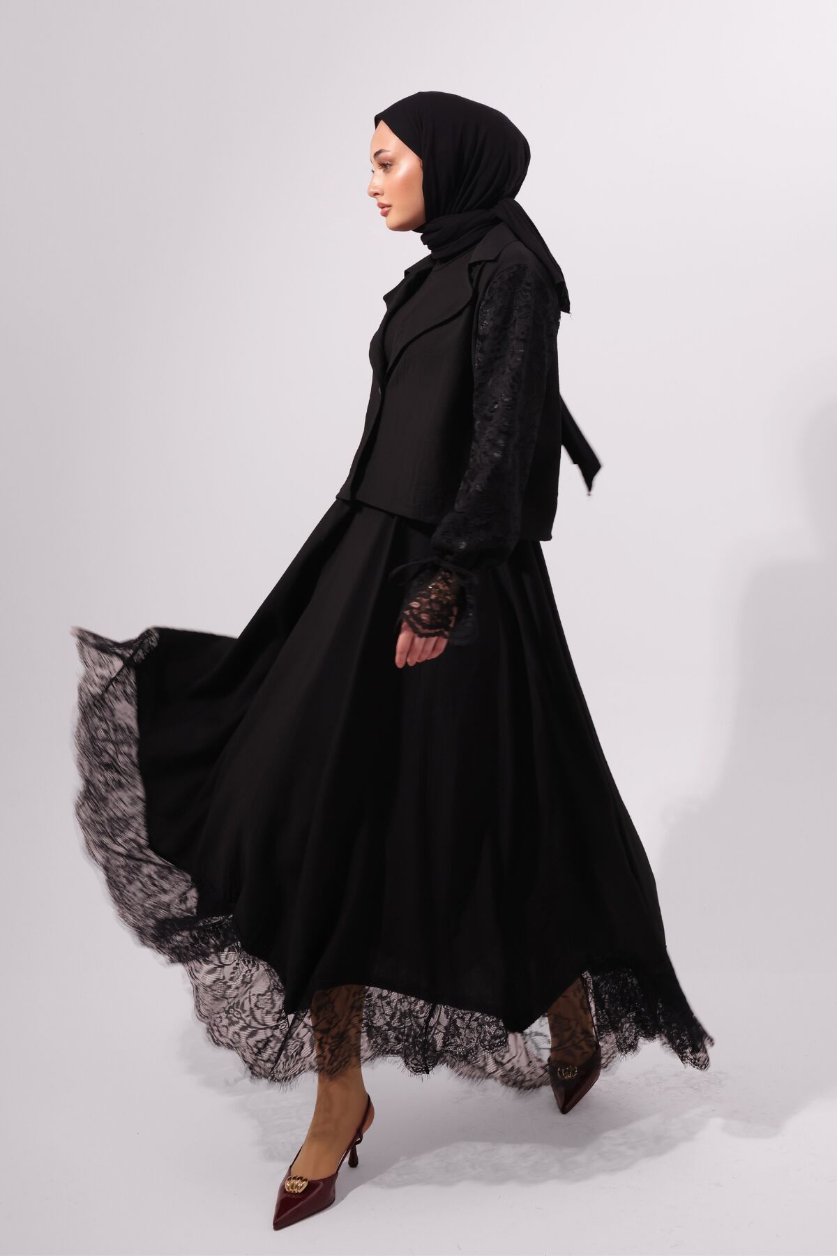 Balenbi Çilek Kumaş Dantel Detaylı Tesettür Kadın Etekli Takım 1173