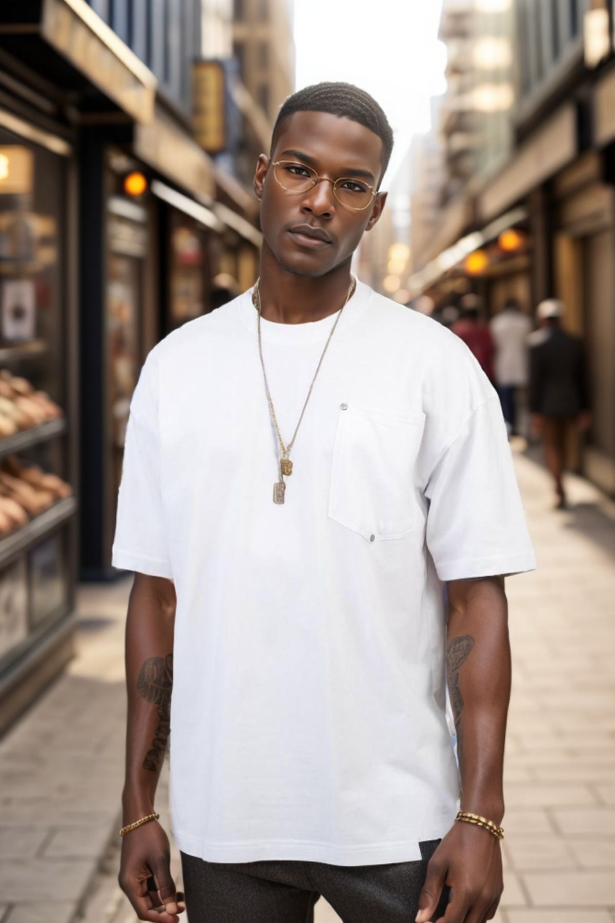 Balenbi Erkek Bisiklet Yaka Cepli Oversize Kalıp Penye Tişört 1007