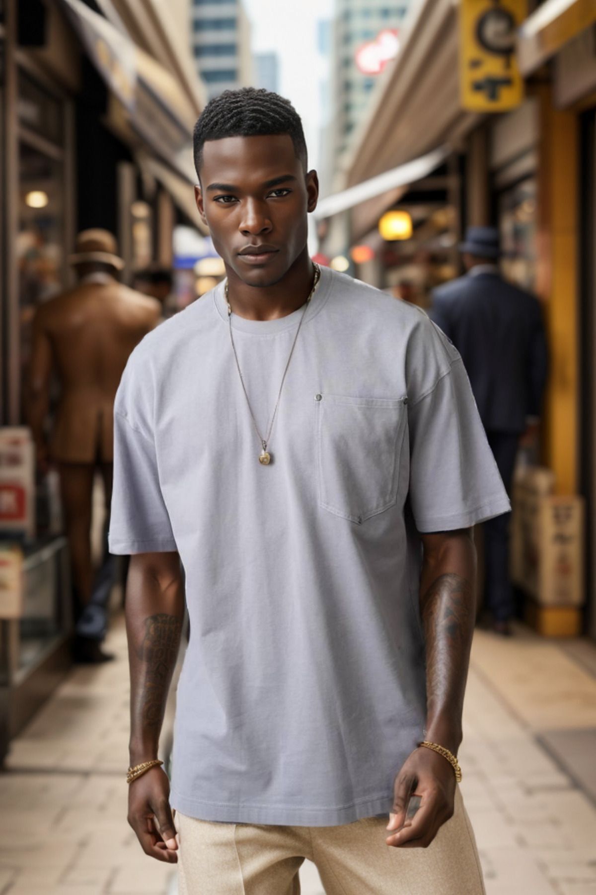 Balenbi Erkek Bisiklet Yaka Cepli Oversize Kalıp Penye Tişört 1007