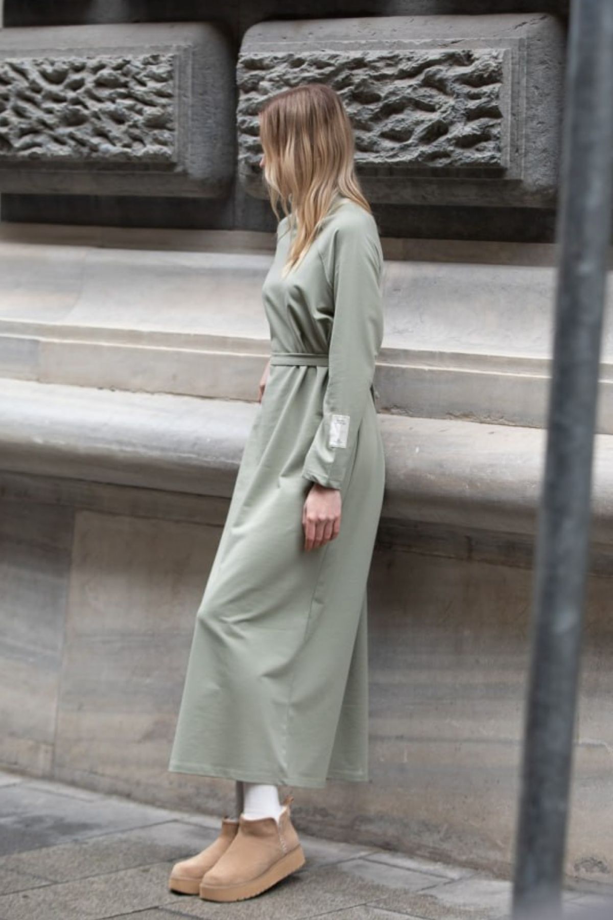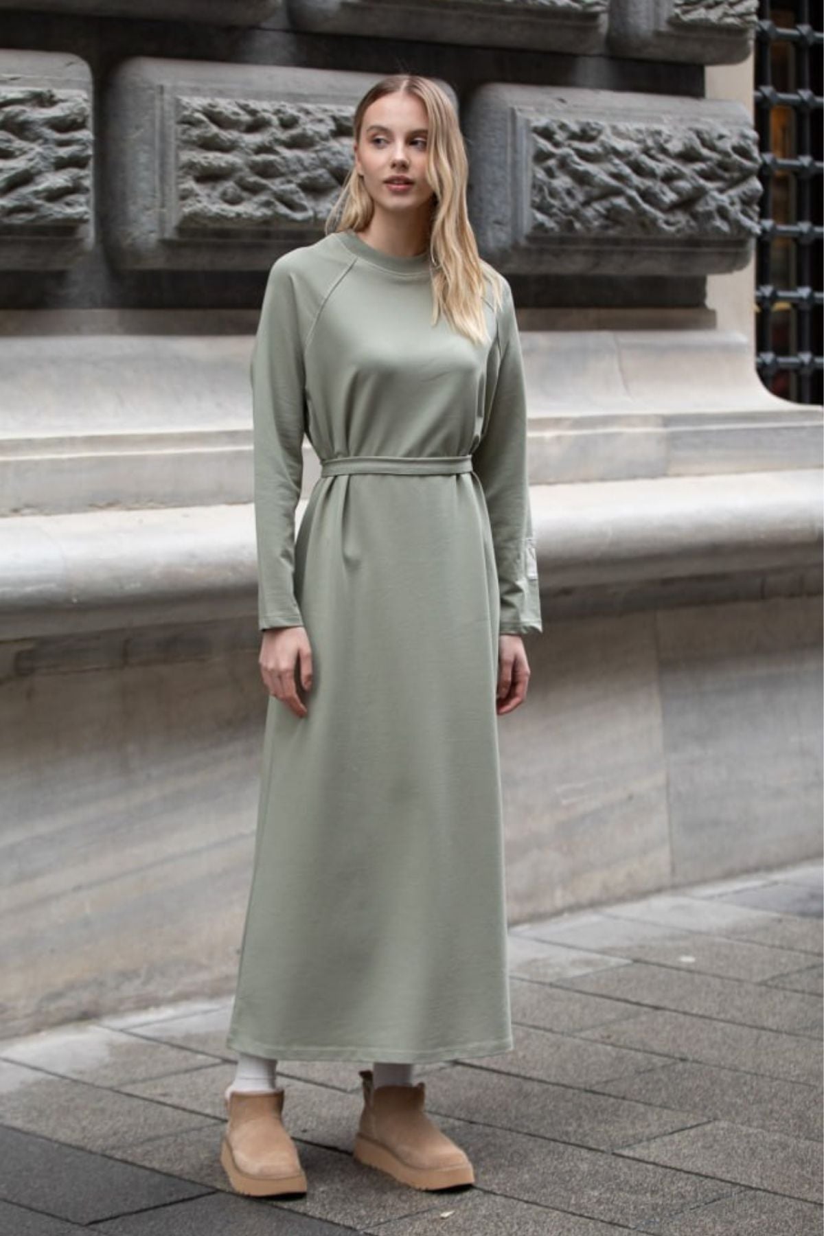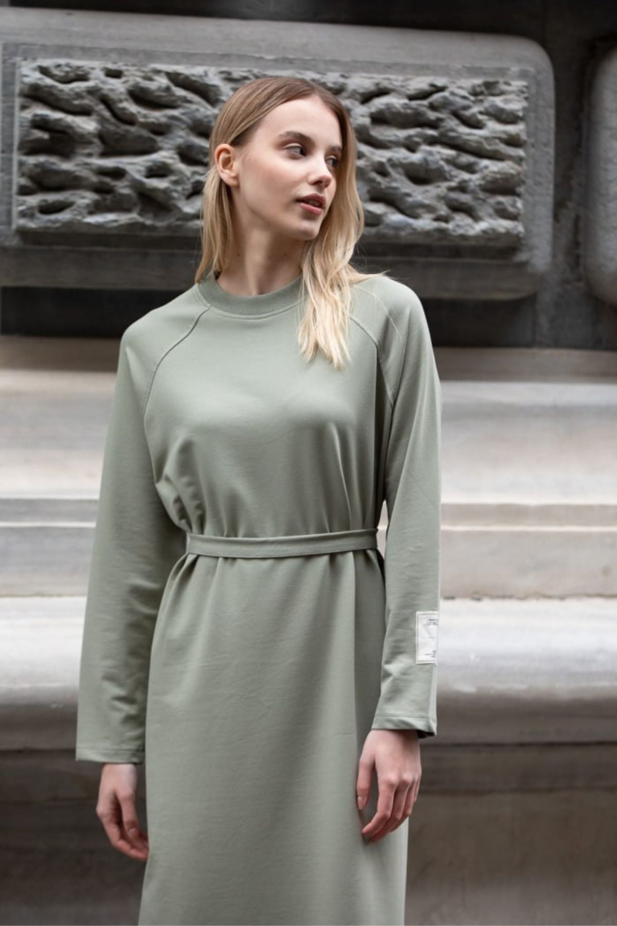 Balenbi Etiket Detaylı Basic Tesettür Kadın Penye Elbise 1168 – Form Serisi S/M - Çağla