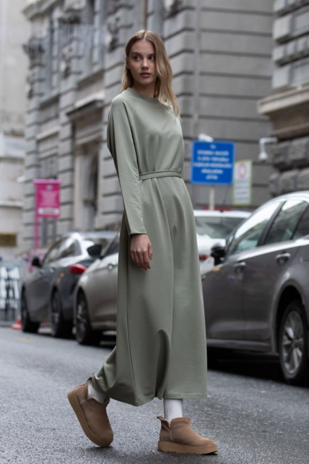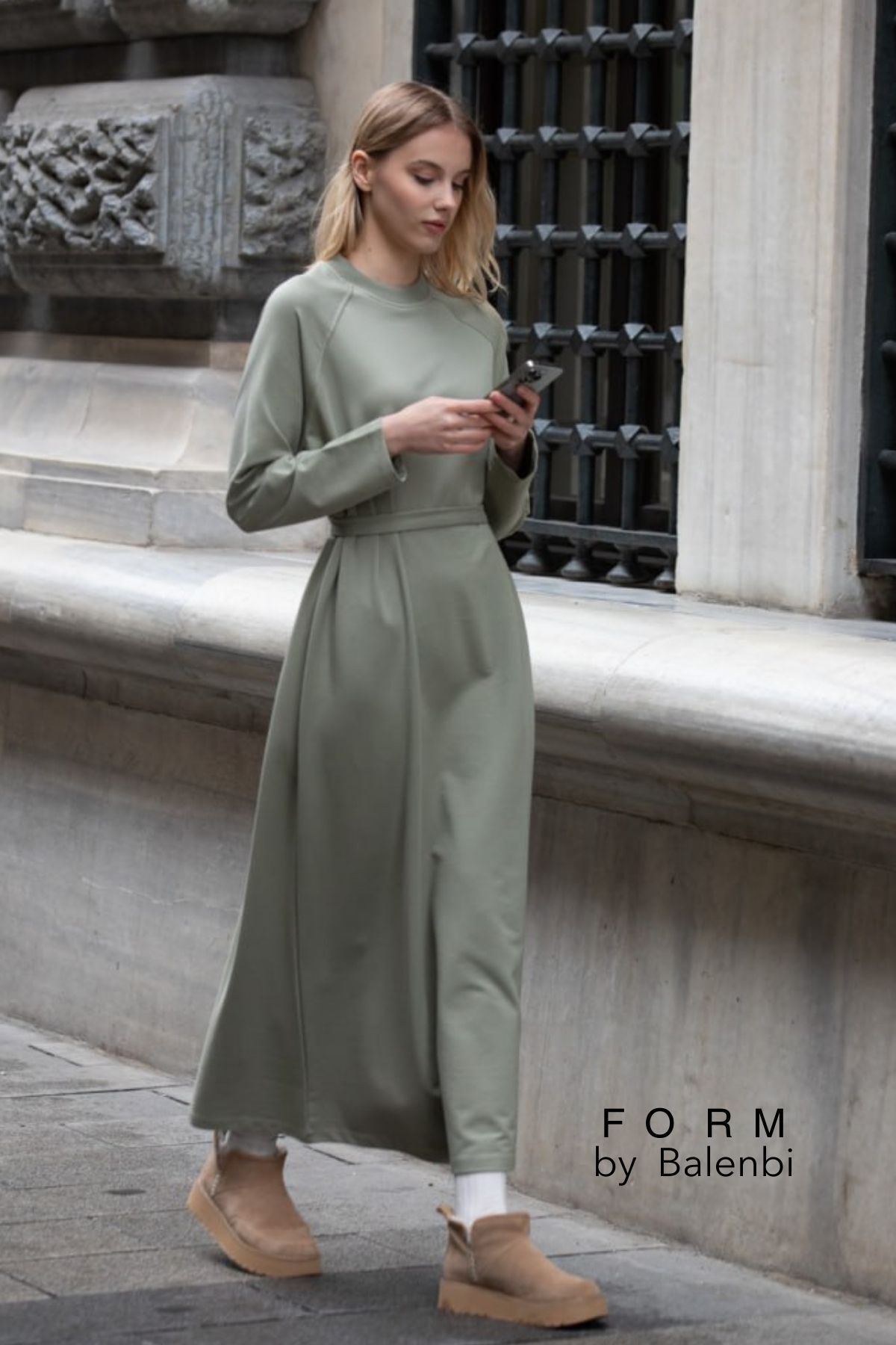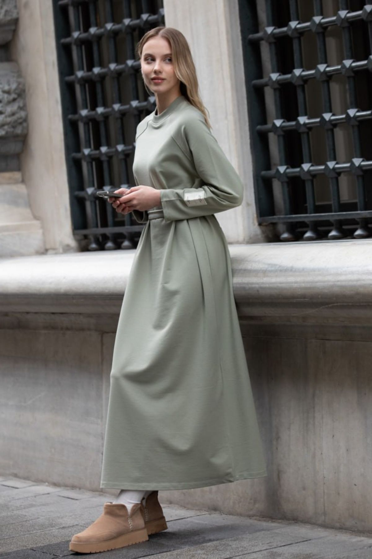 Balenbi Etiket Detaylı Basic Tesettür Kadın Penye Elbise 1168 – Form Serisi S/M - Çağla