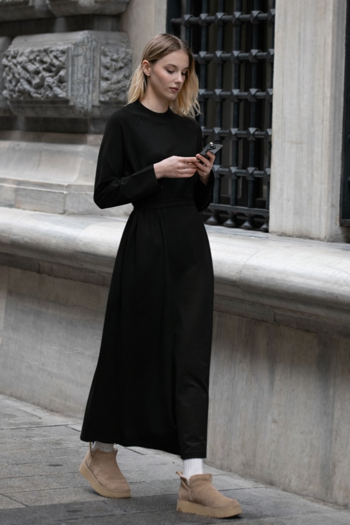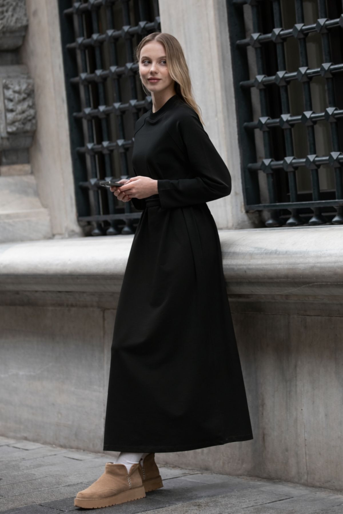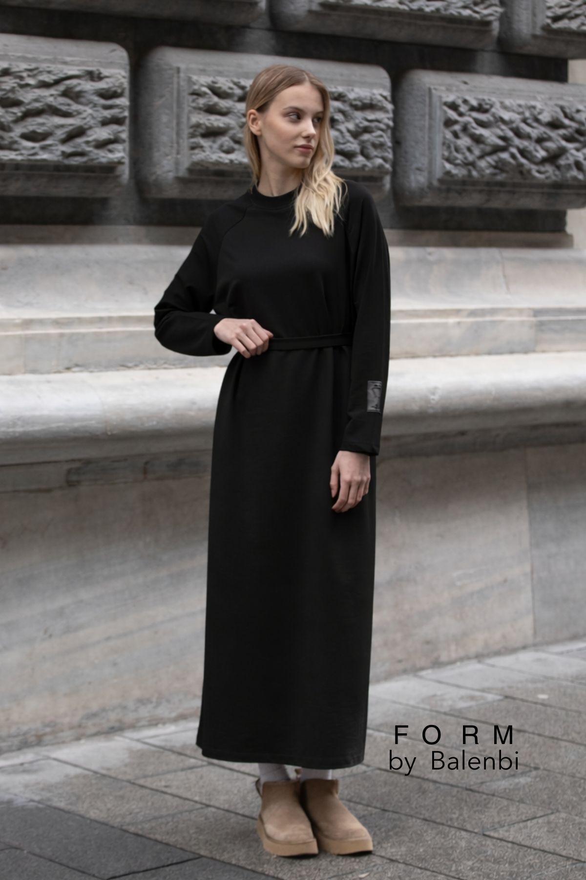 Balenbi Etiket Detaylı Basic Tesettür Kadın Penye Elbise 1168 – Form Serisi S/M - Siyah