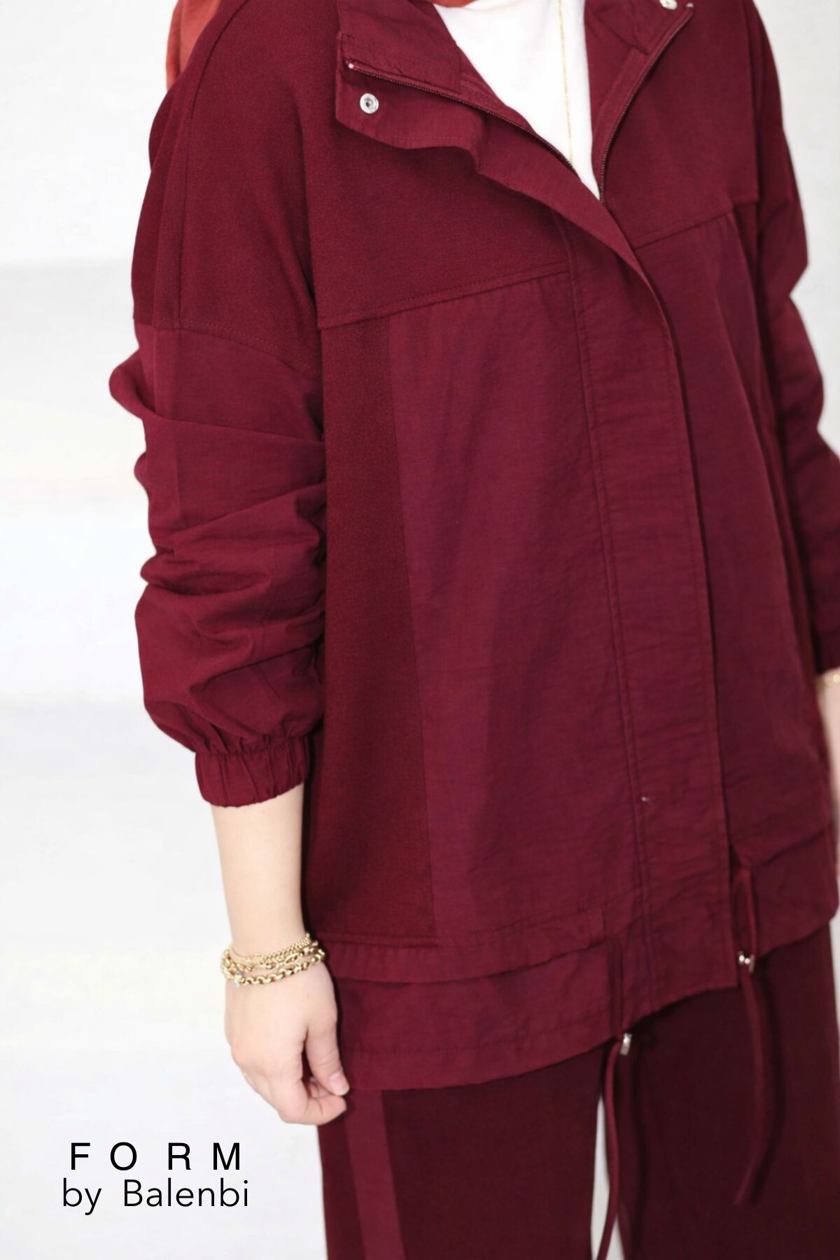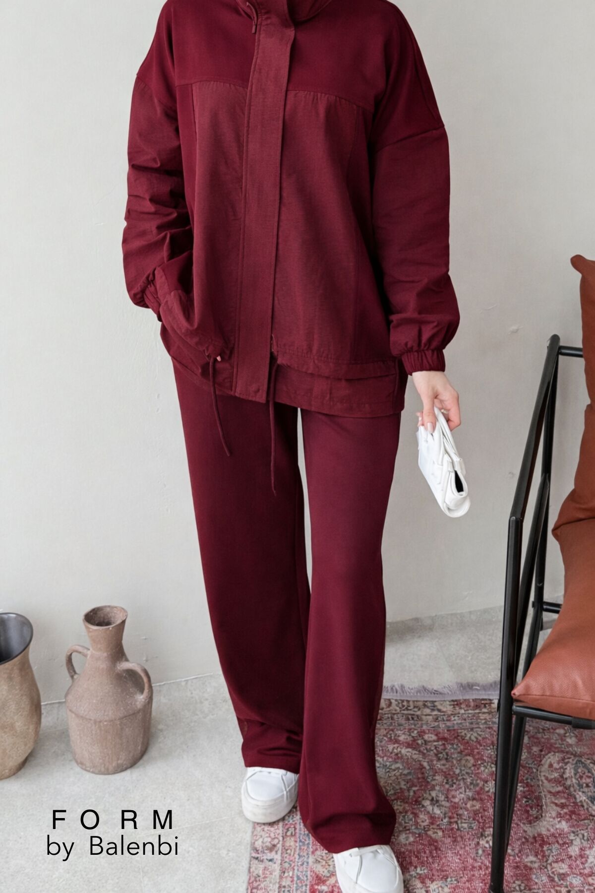 Balenbi Garni Detaylı Bağcıklı Tesettür Kadın Oversize Takım 1172 – Form Serisi S/M - Bordo