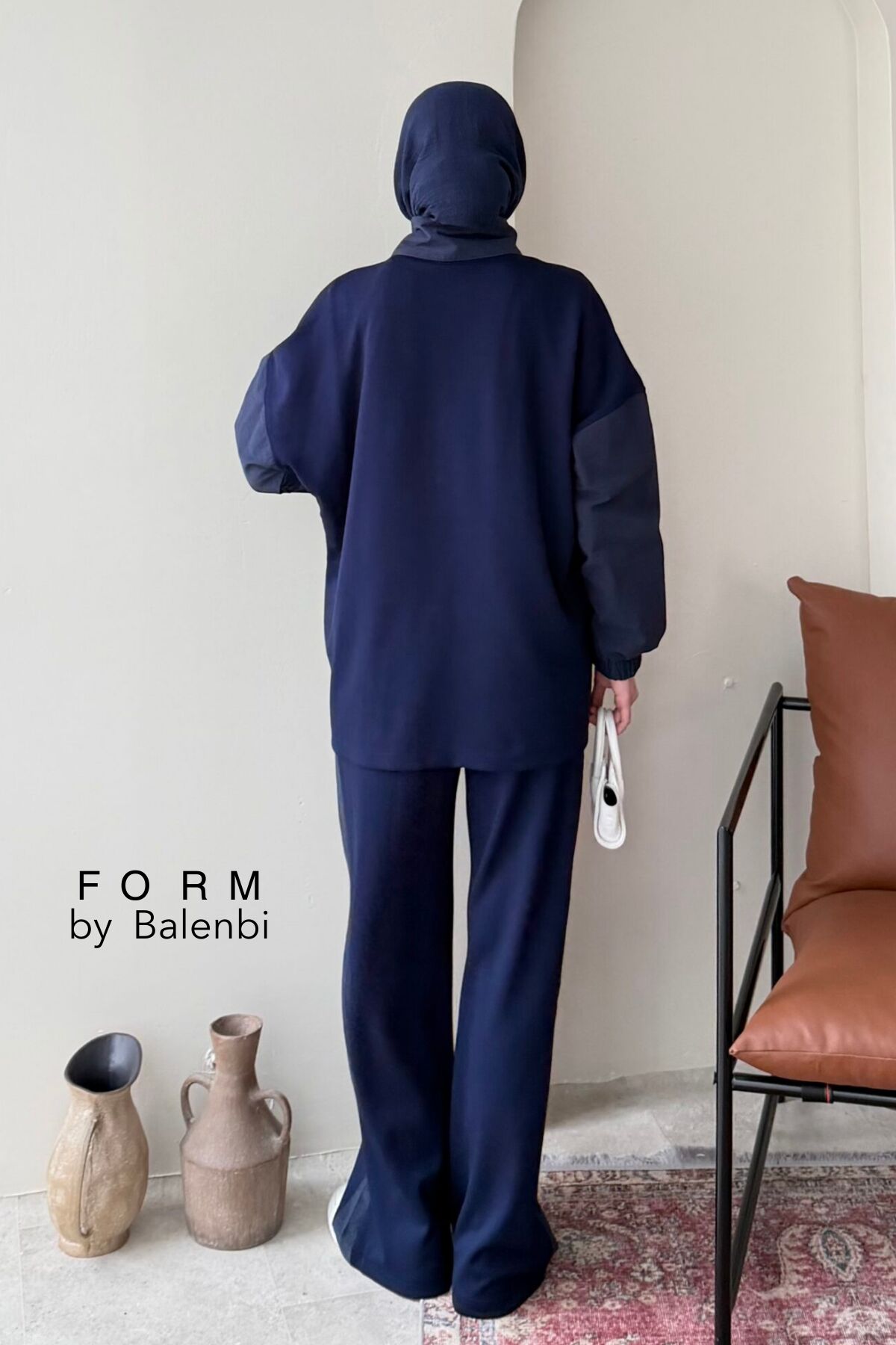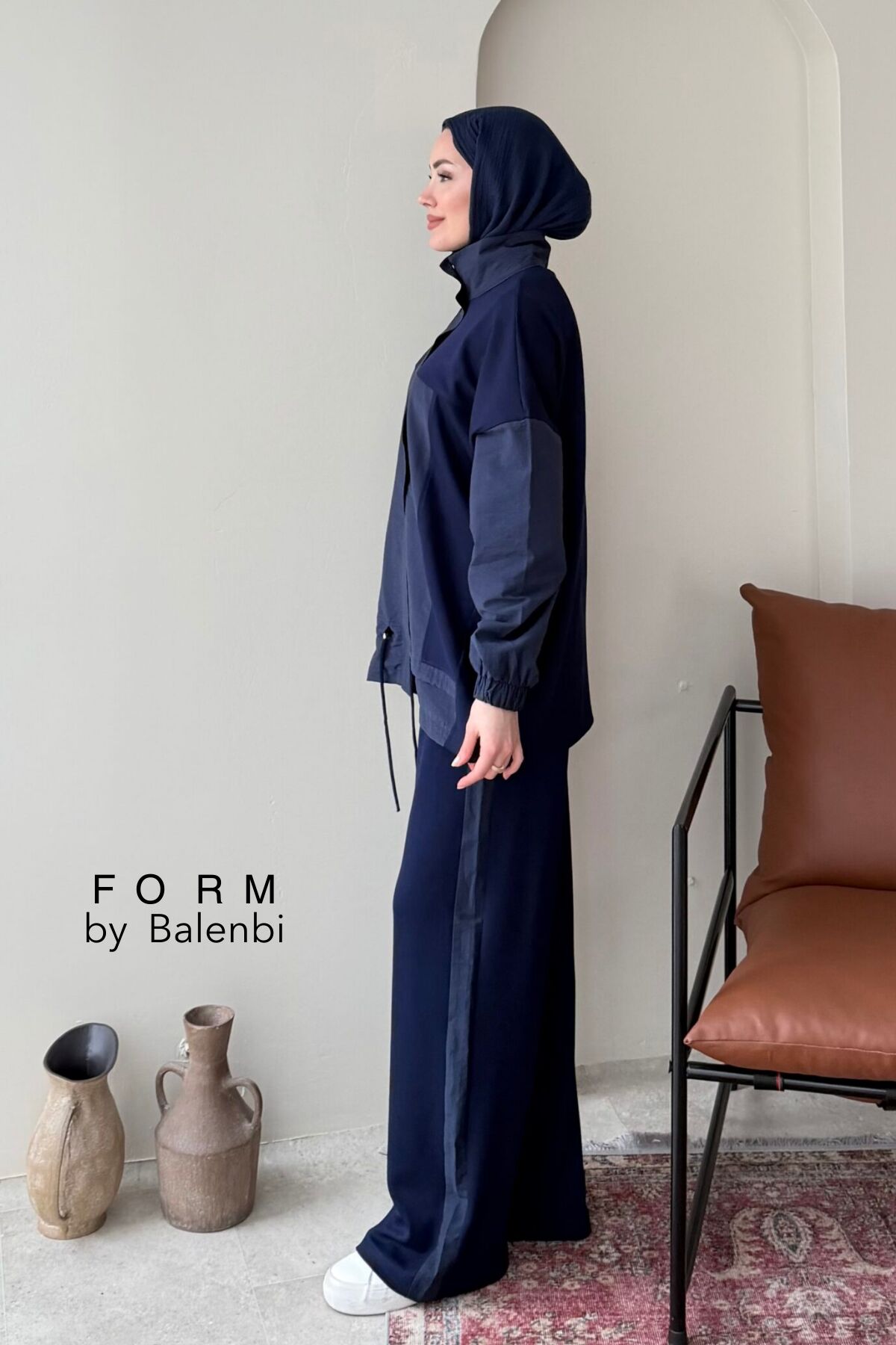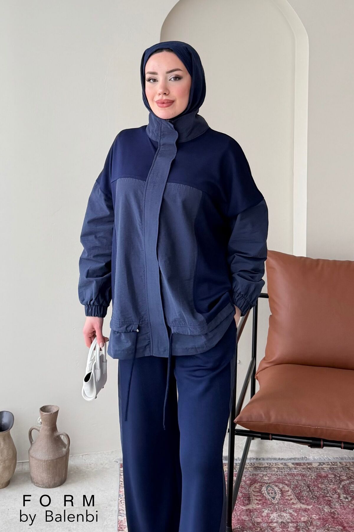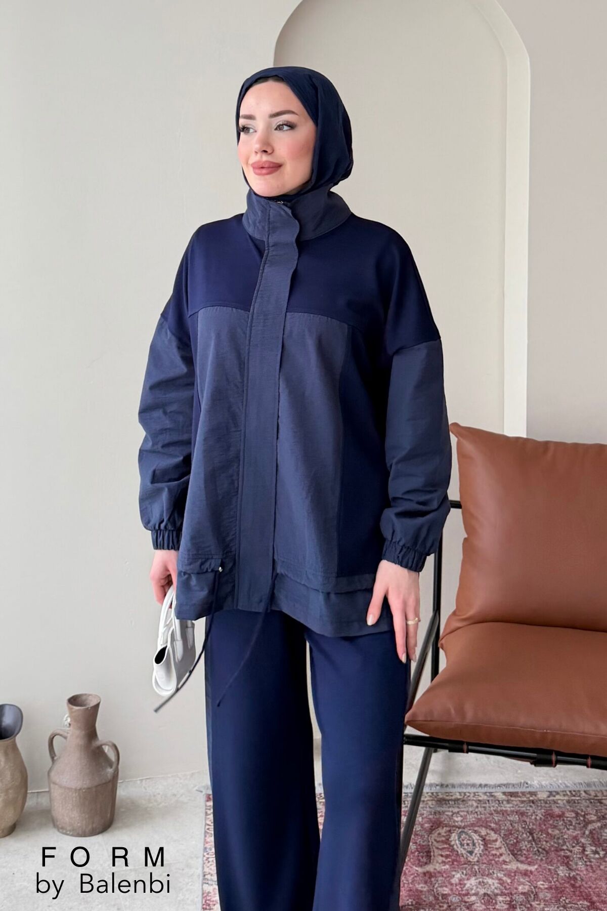 Balenbi Garni Detaylı Bağcıklı Tesettür Kadın Oversize Takım 1172 – Form Serisi S/M - Lacivert