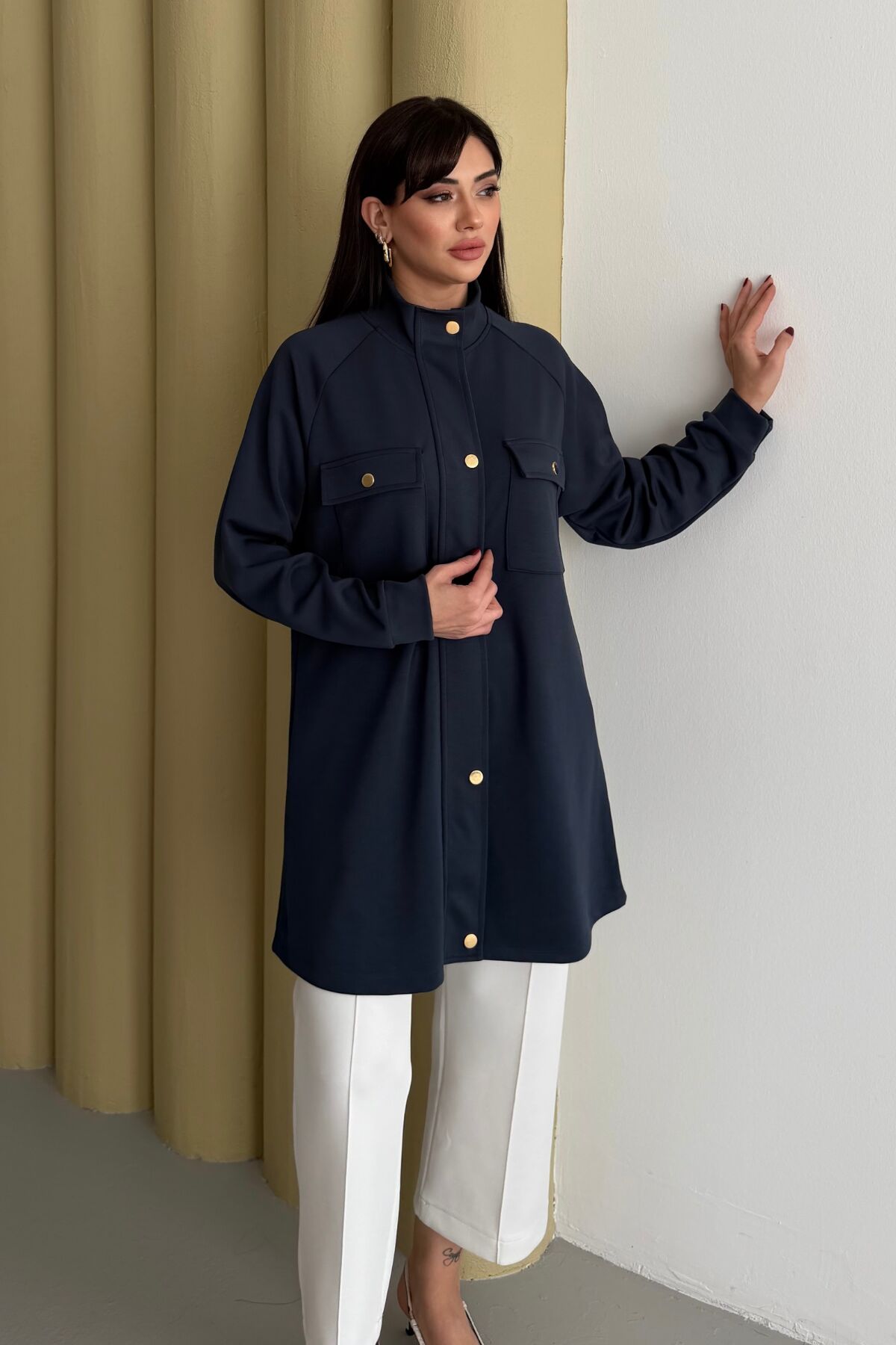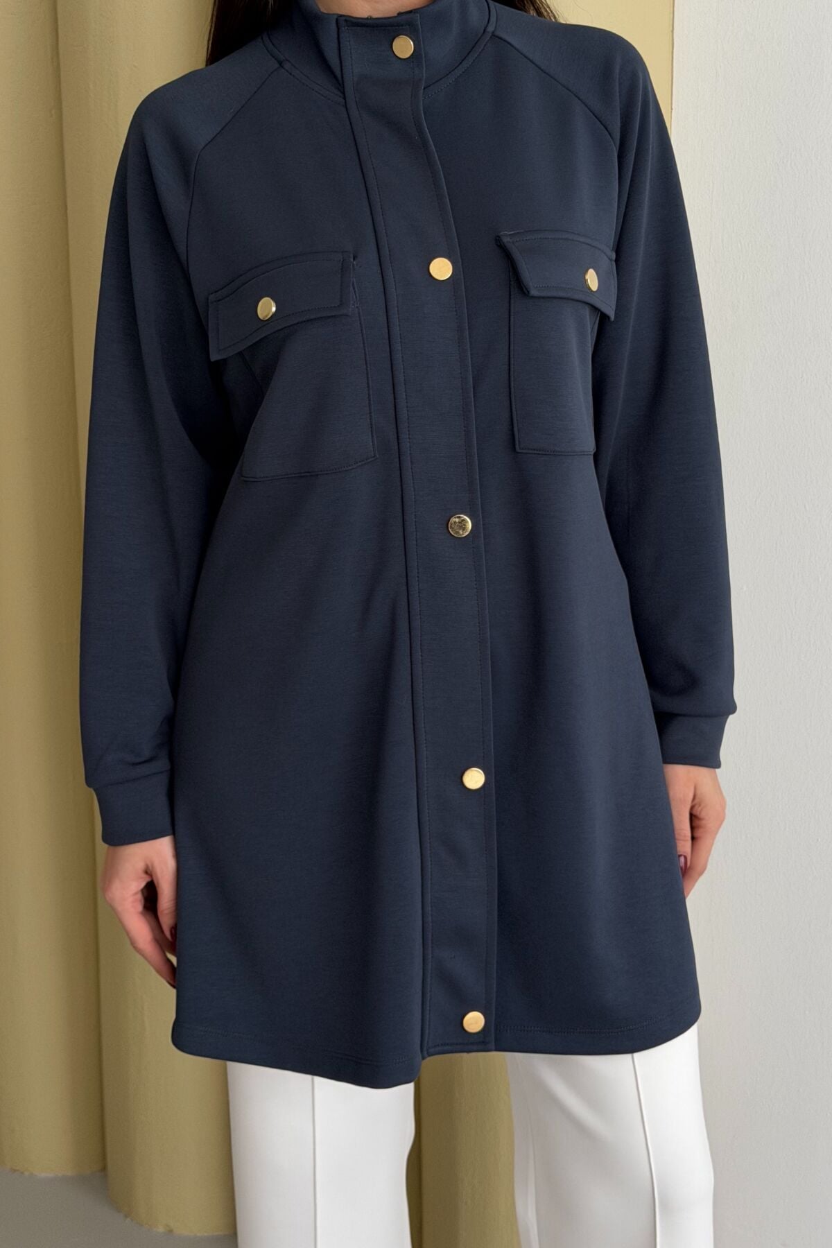 Balenbi Hakim Yaka Çıtçıtlı Cep Detaylı Modal Tesettür Tunik 1191 - Form Serisi