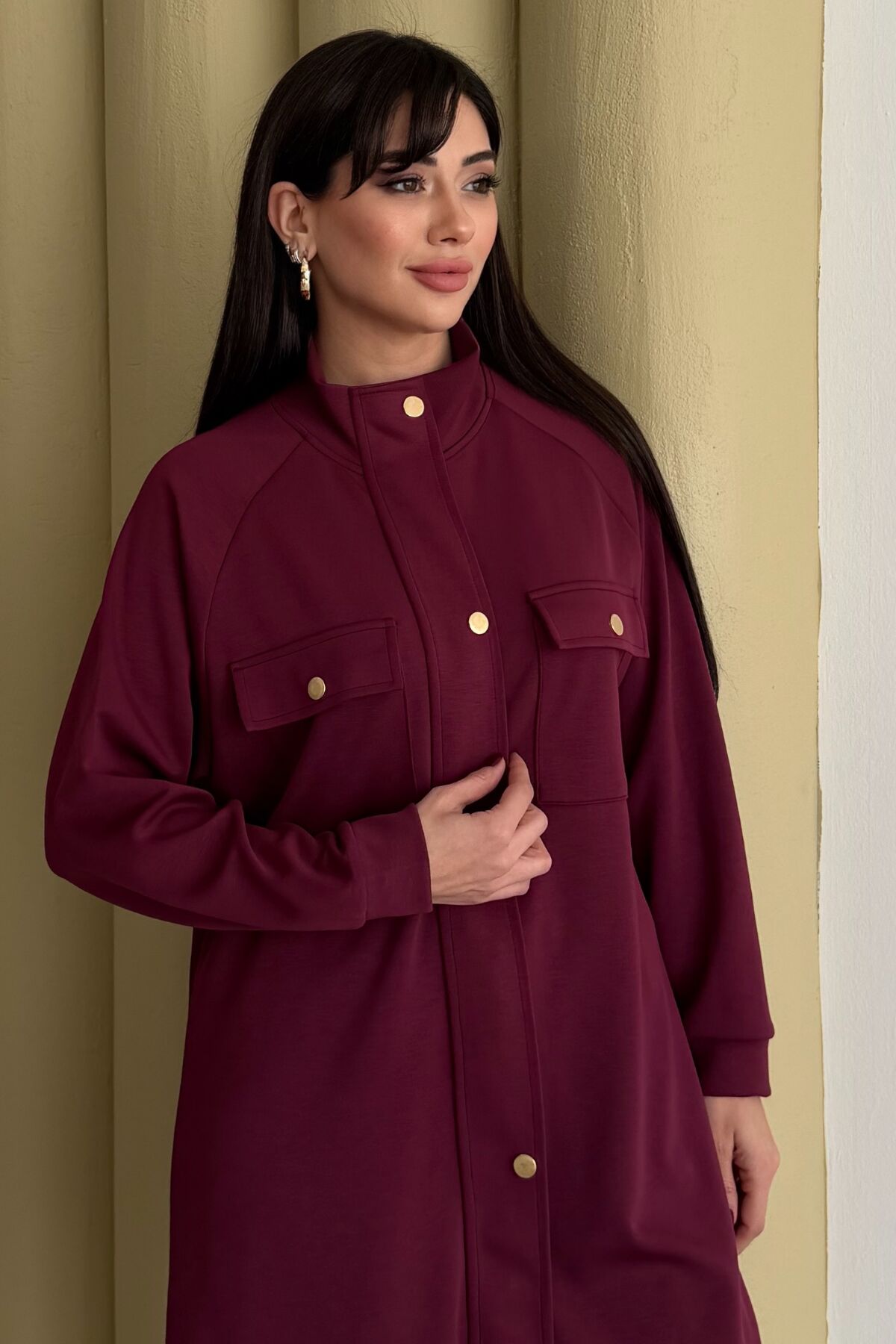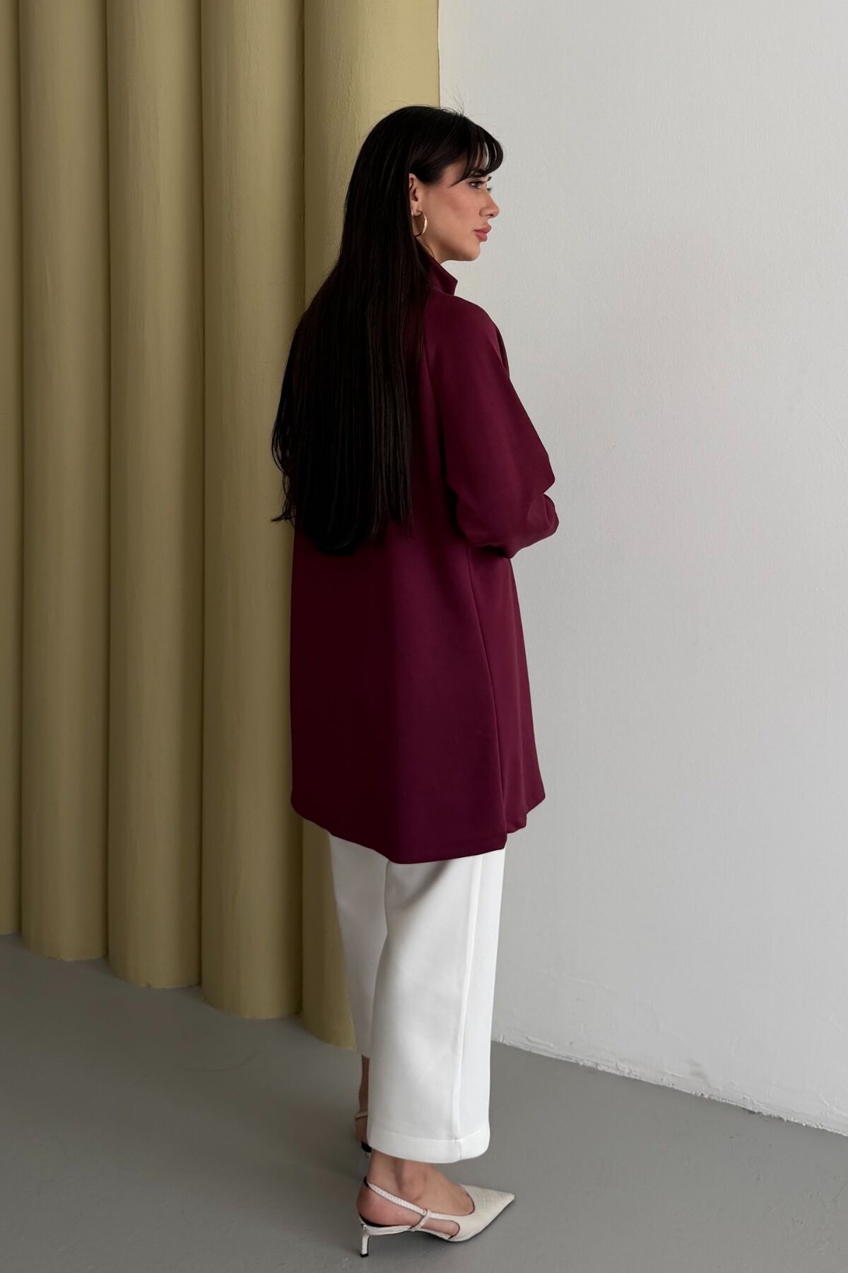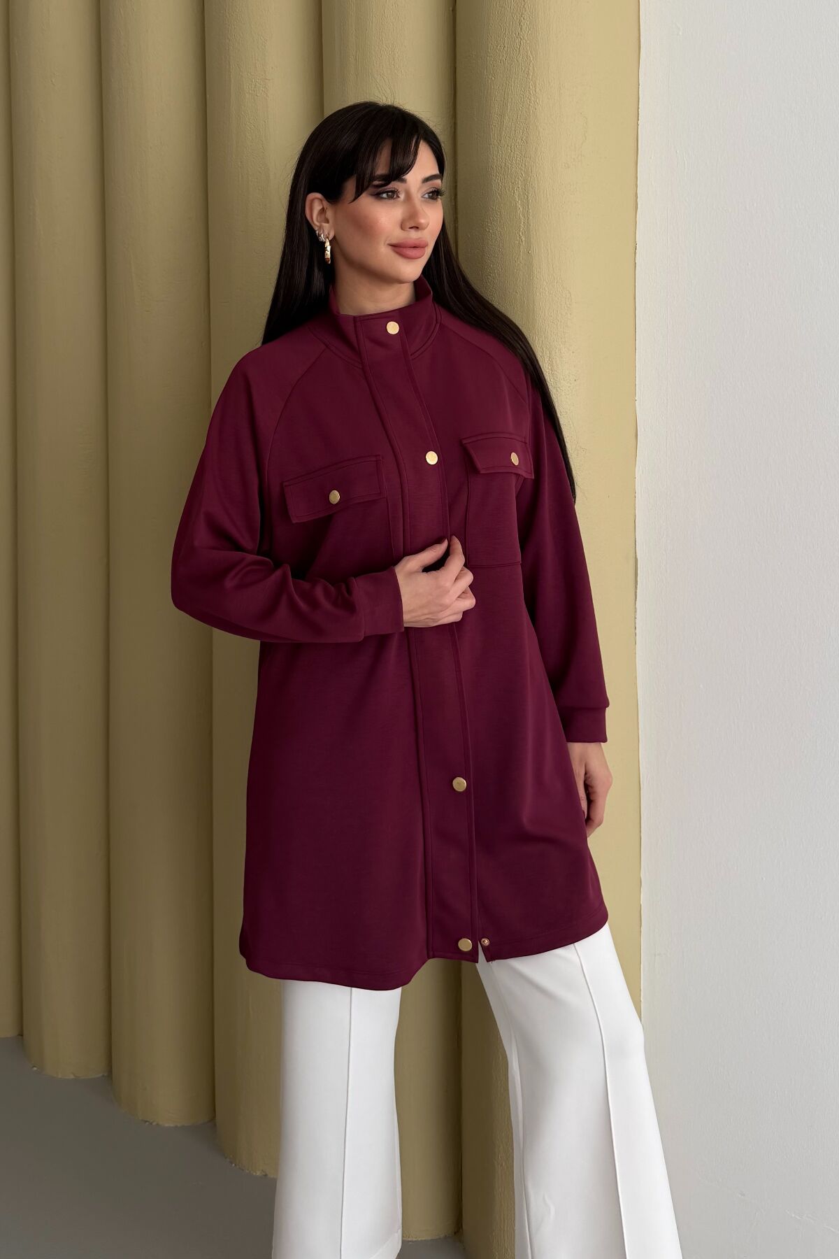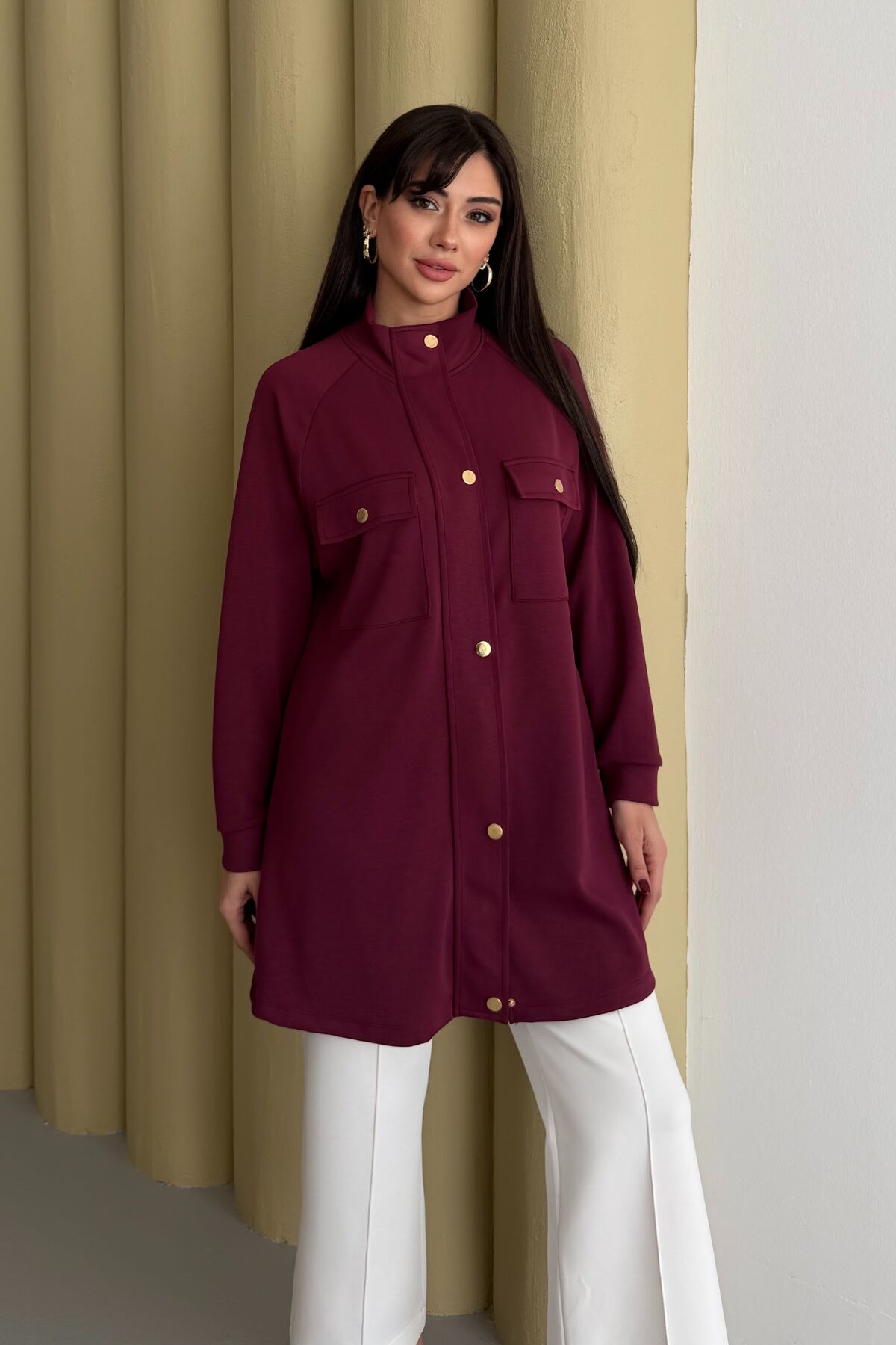 Balenbi Hakim Yaka Çıtçıtlı Cep Detaylı Modal Tesettür Tunik 1191 - Form Serisi XL - Bordo