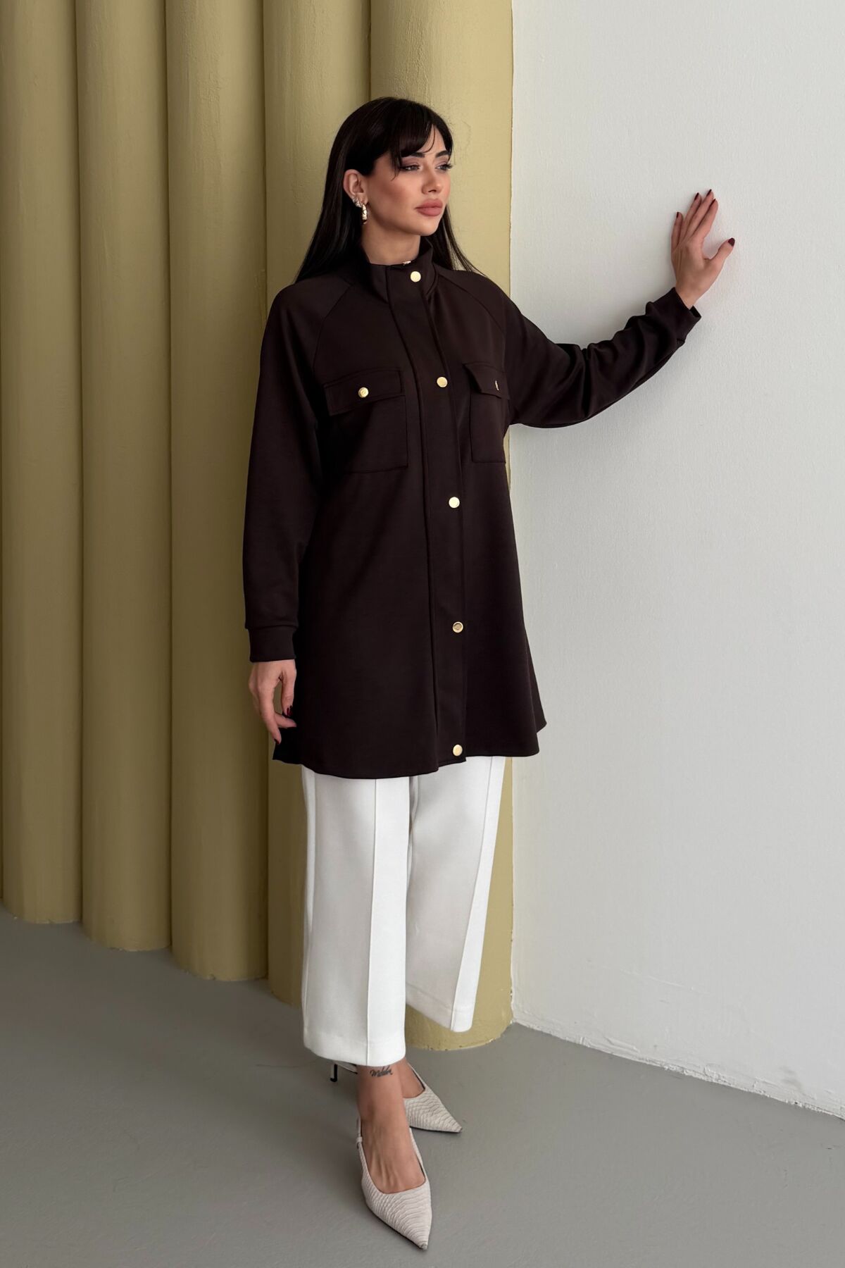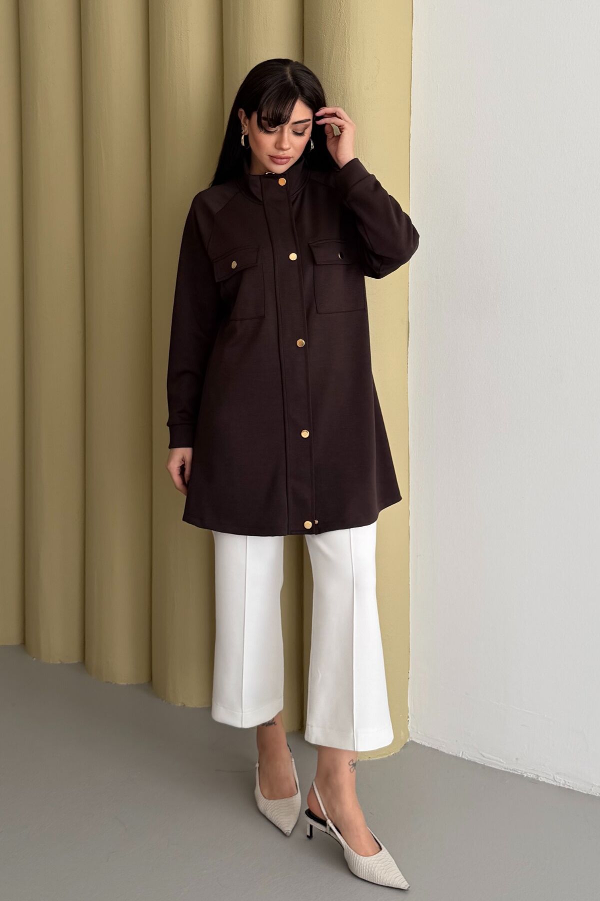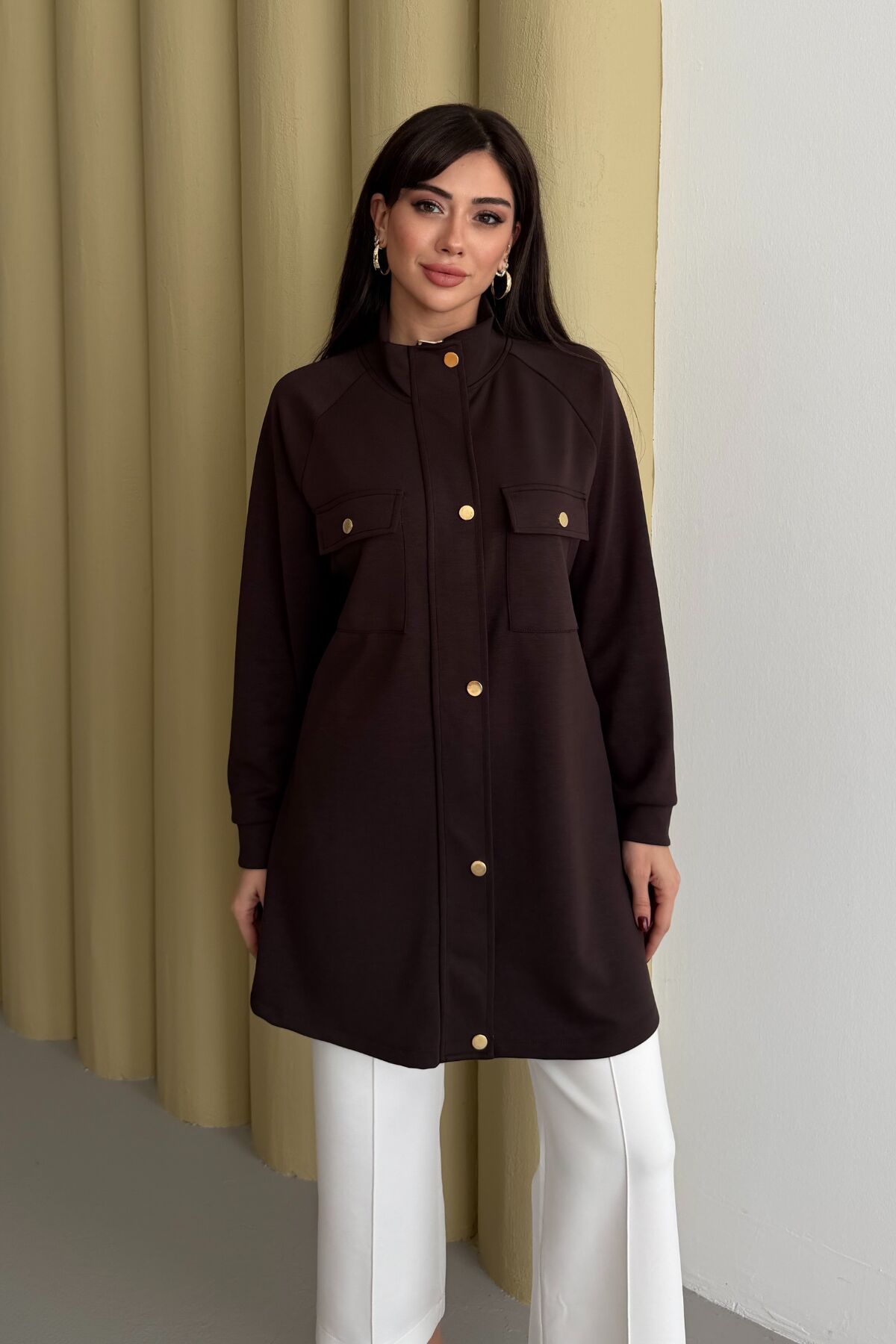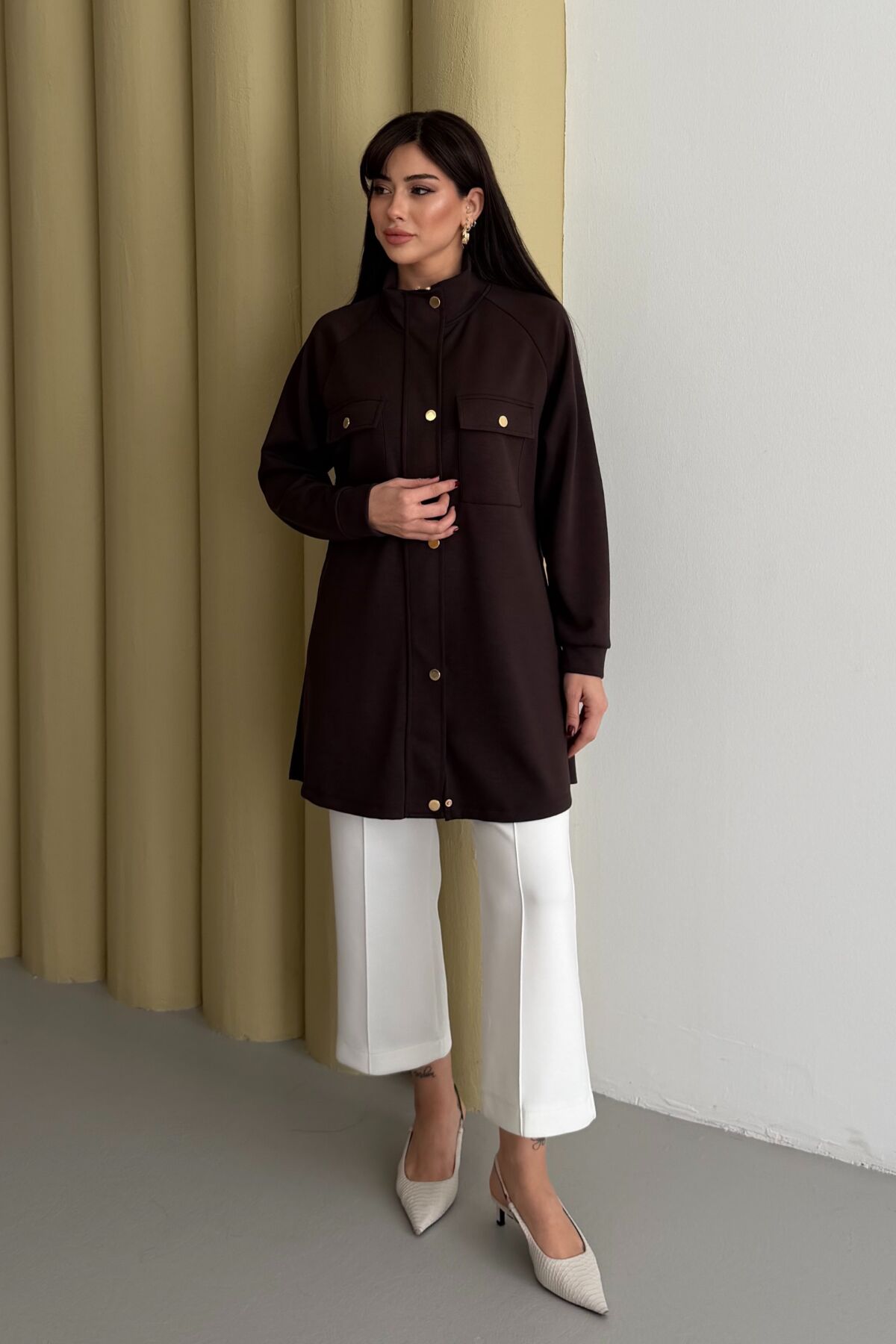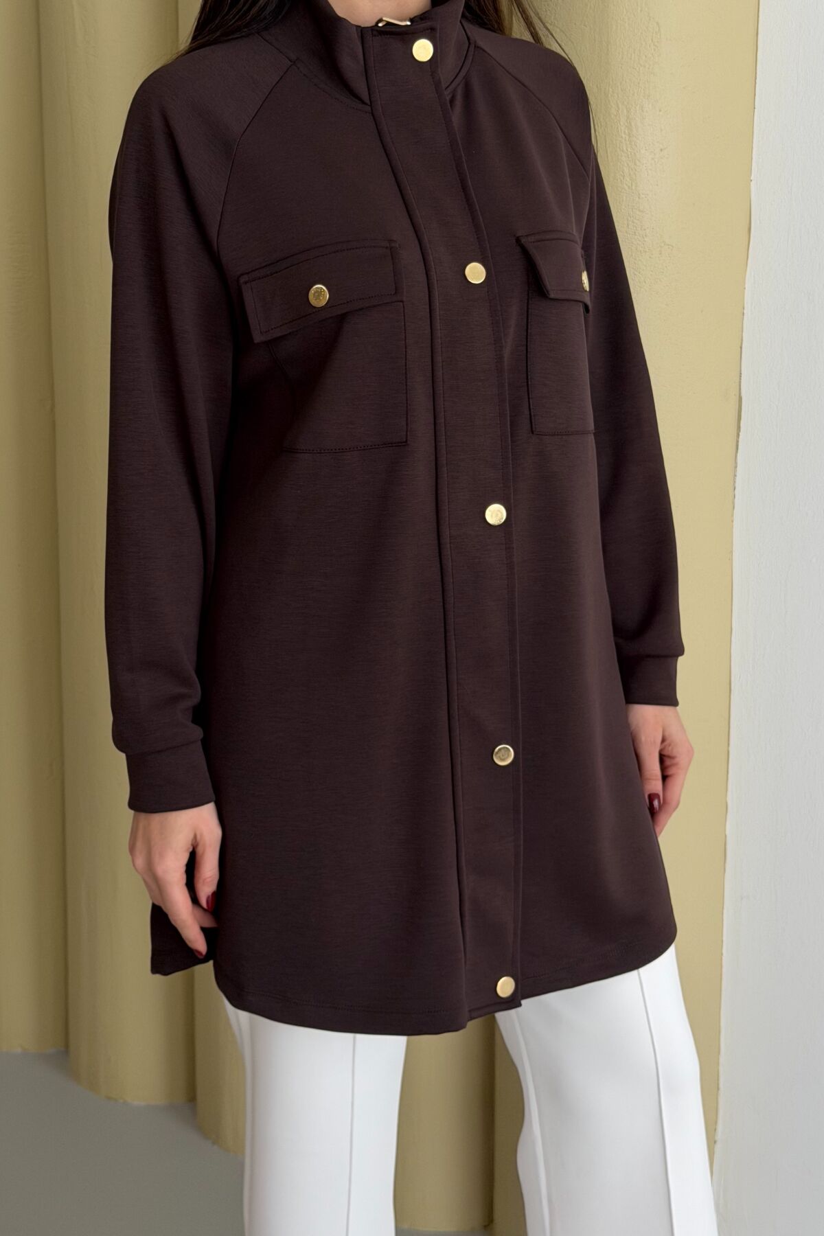 Balenbi Hakim Yaka Çıtçıtlı Cep Detaylı Modal Tesettür Tunik 1191 - Form Serisi S - Kahverengi
