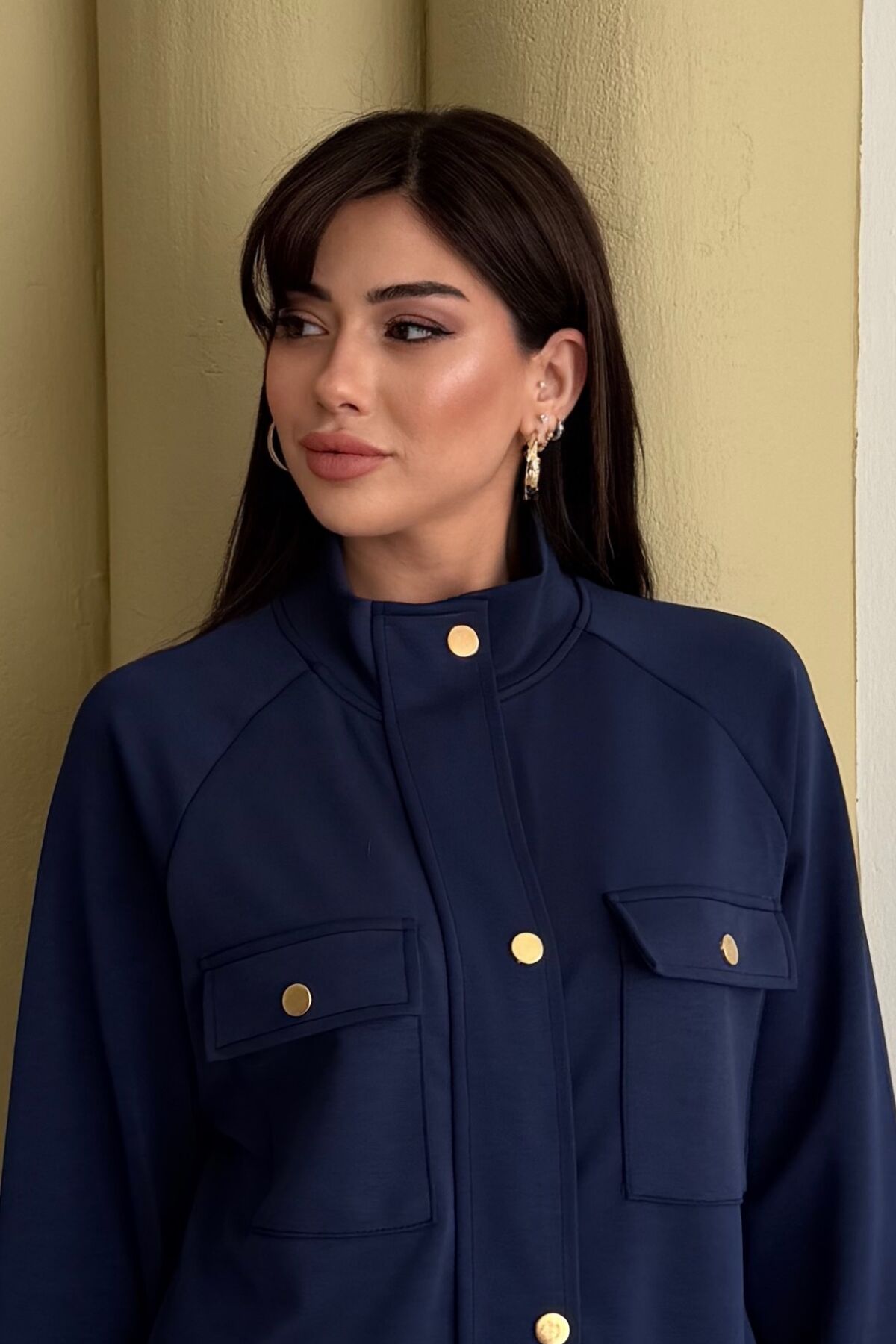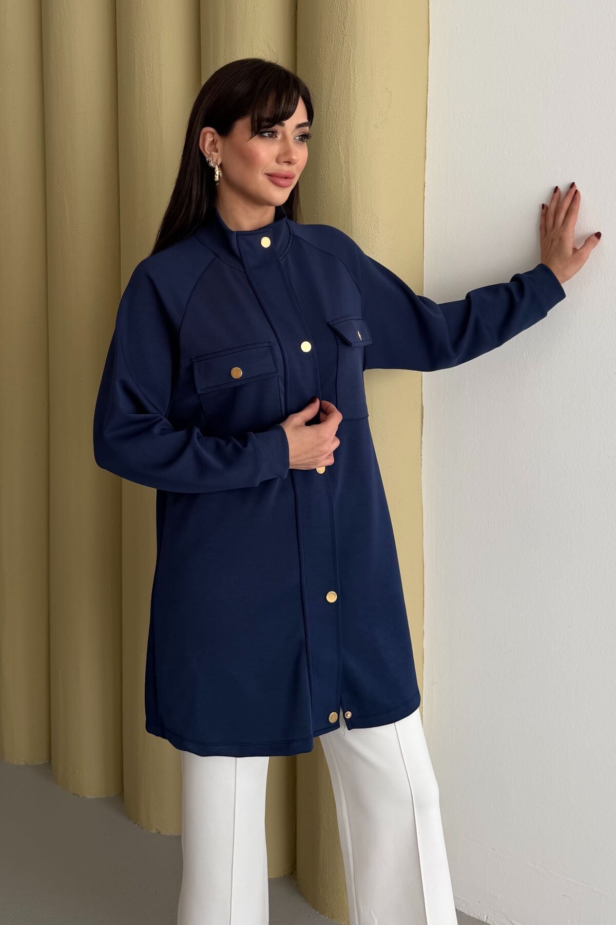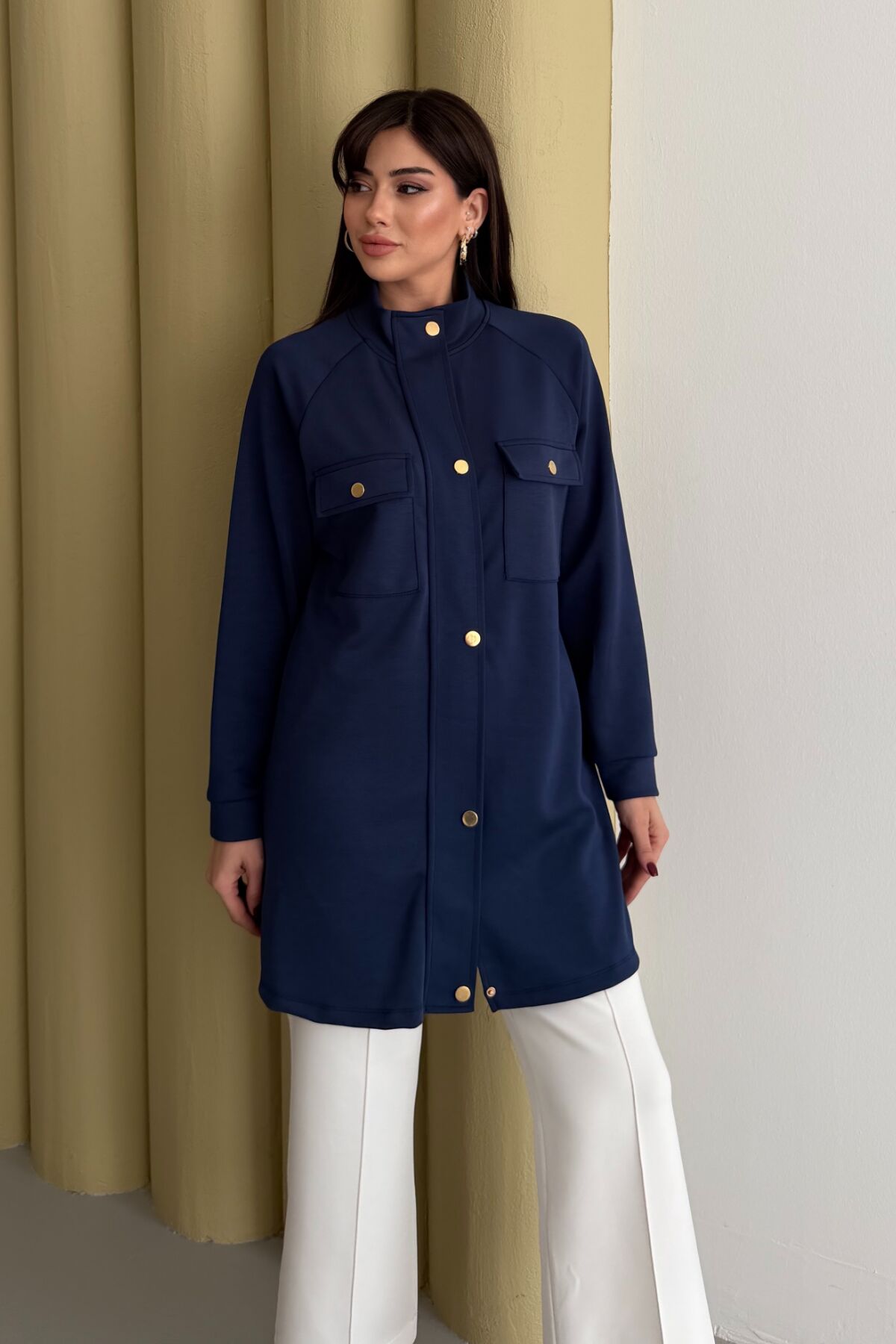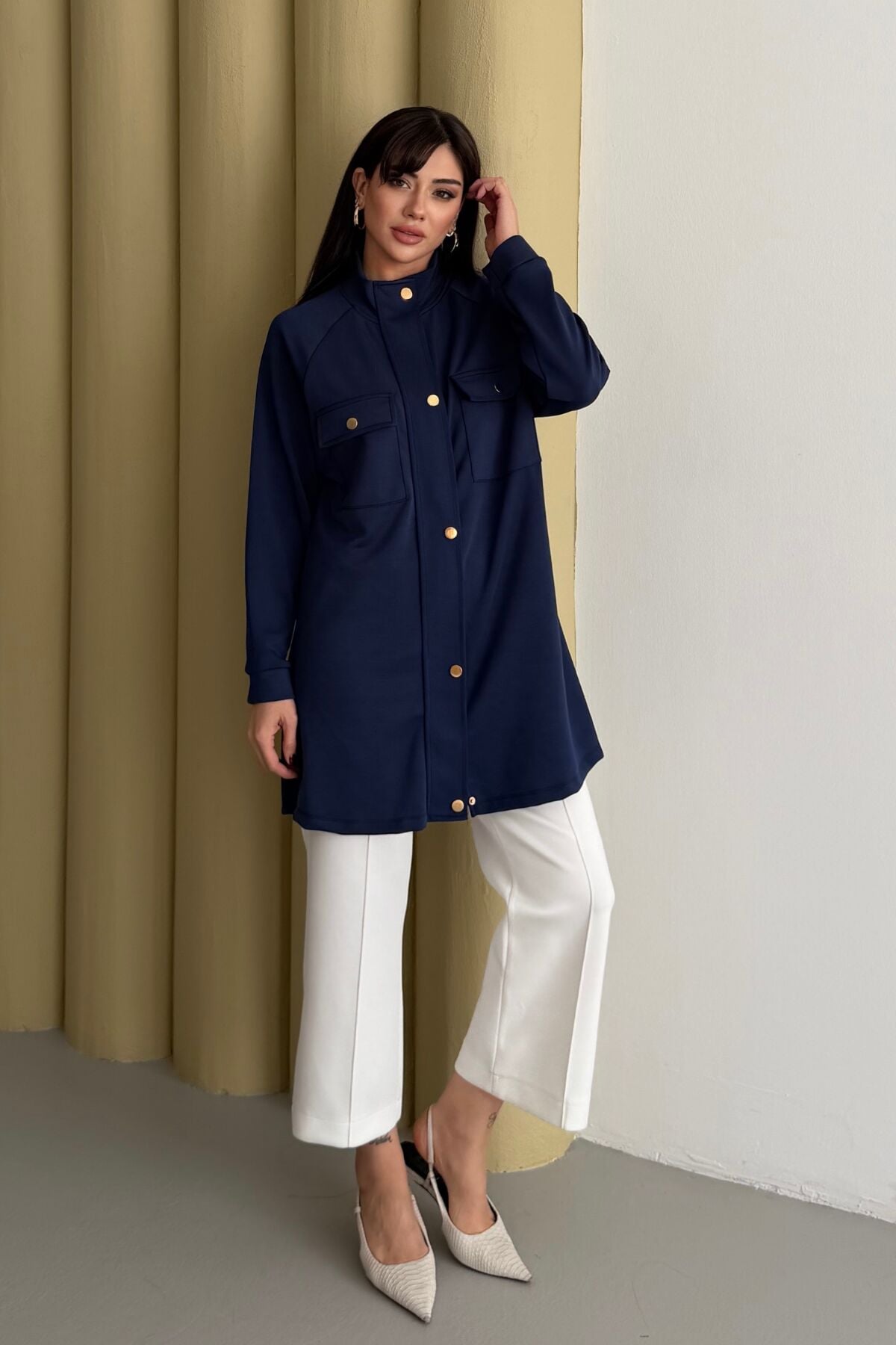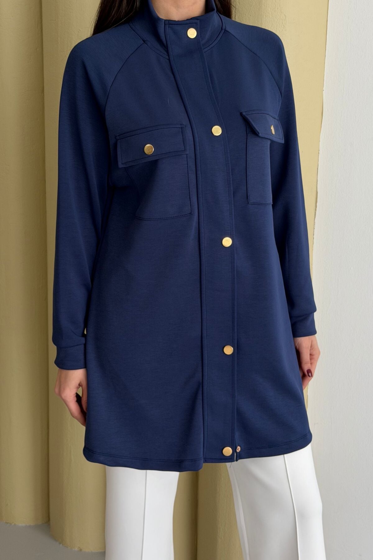 Balenbi Hakim Yaka Çıtçıtlı Cep Detaylı Modal Tesettür Tunik 1191 - Form Serisi XL - Lacivert