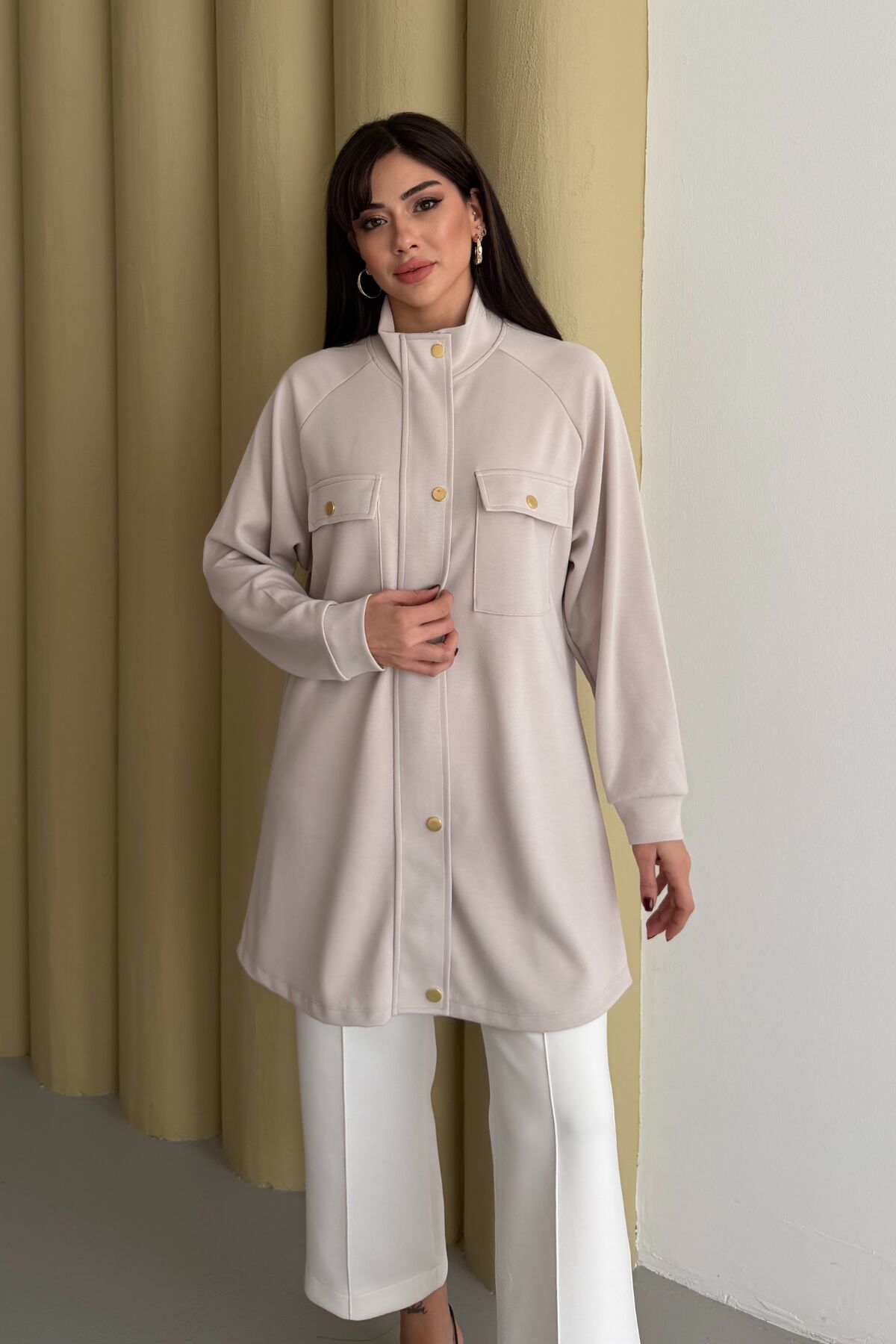 Balenbi Hakim Yaka Çıtçıtlı Cep Detaylı Modal Tesettür Tunik 1191 - Form Serisi S - Taş
