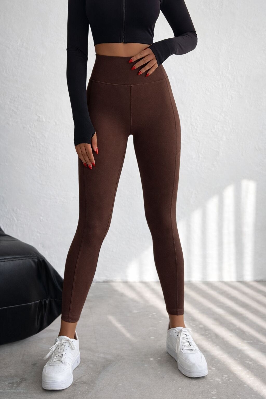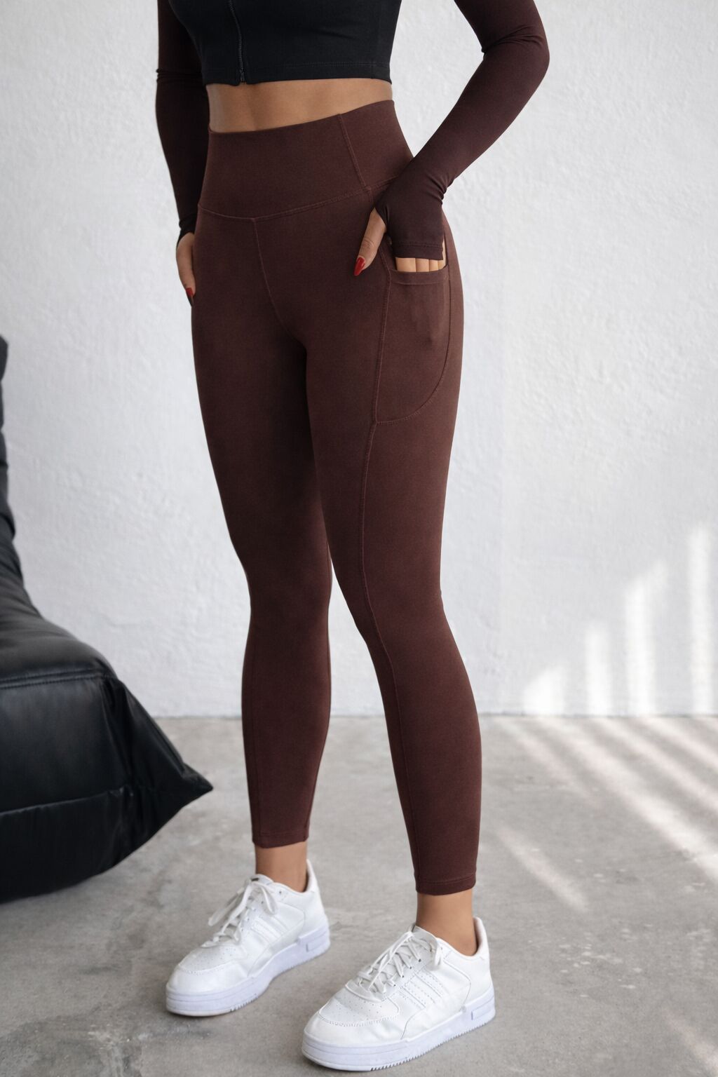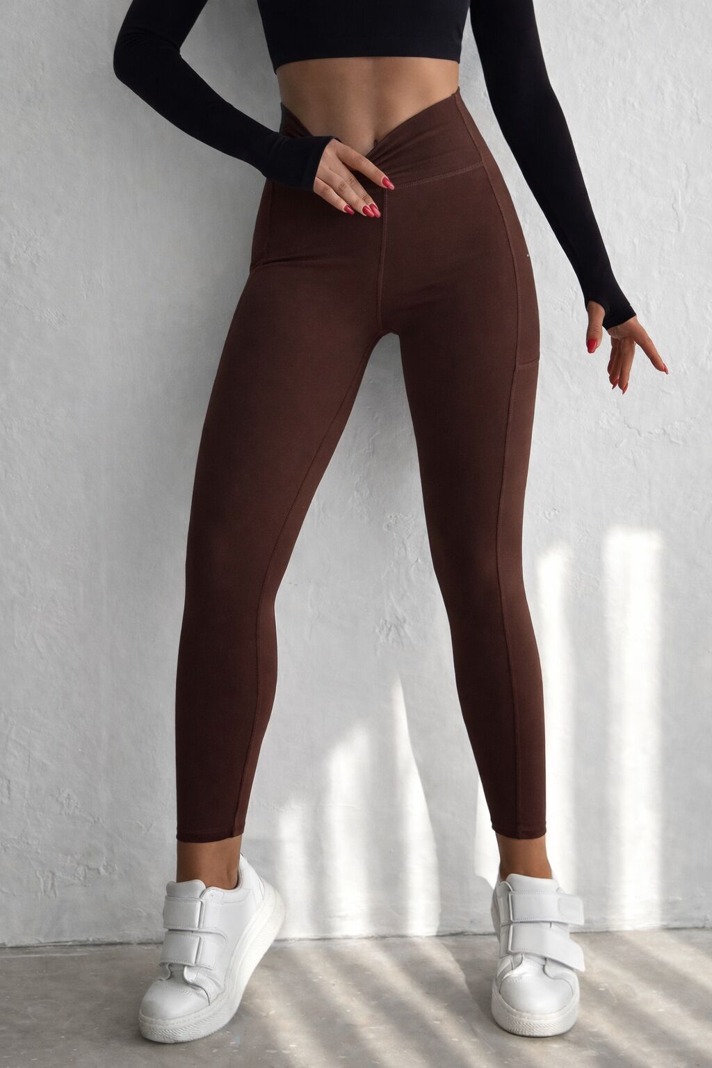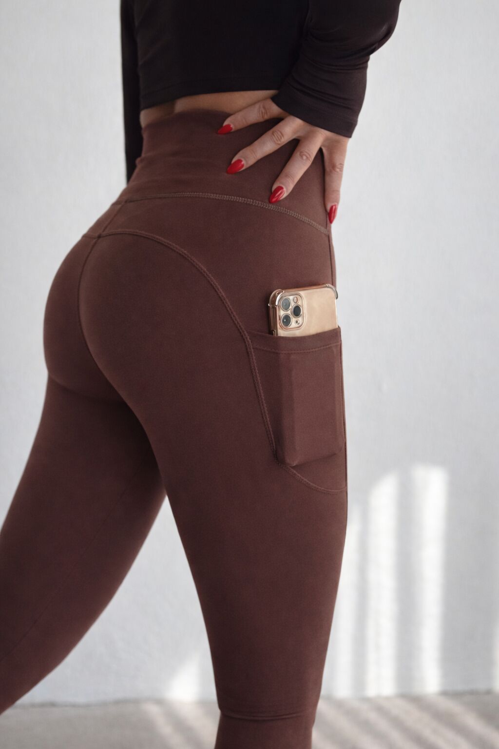 Balenbi Haute Kadın Yüksek Bel Toparlayıcı Çift Cepli Leggings Fitness Tayt 1092 L - Kahverengi