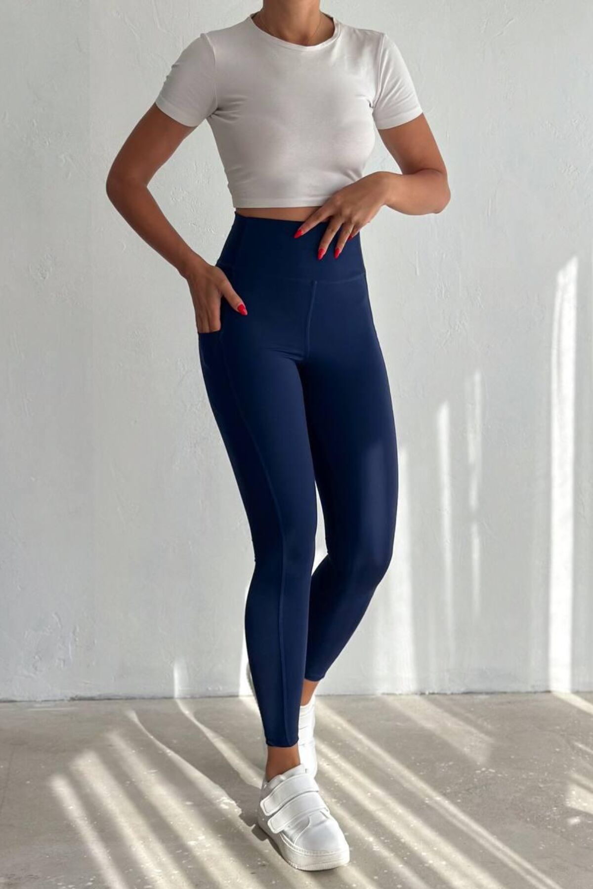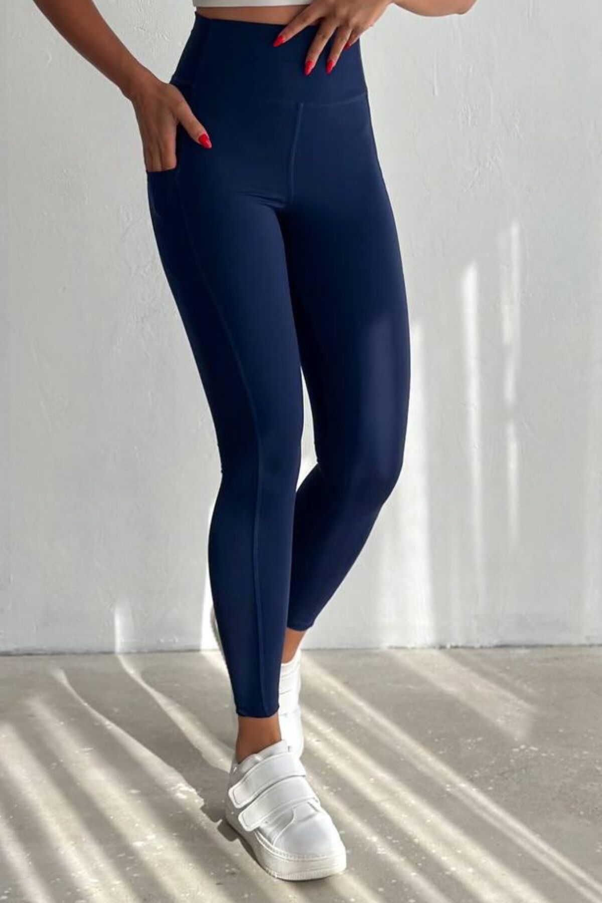 Balenbi Haute Kadın Yüksek Bel Toparlayıcı Çift Cepli Leggings Fitness Tayt 1092 XL - Lacivert