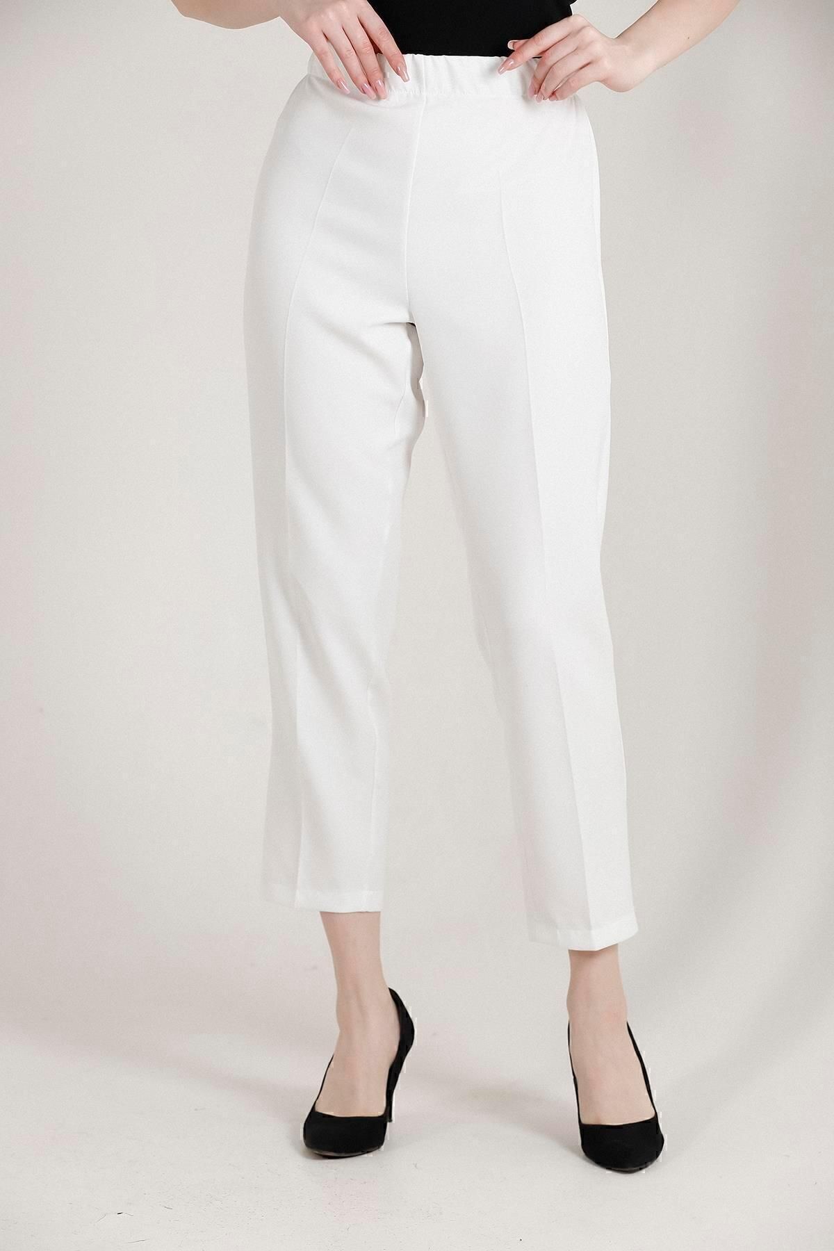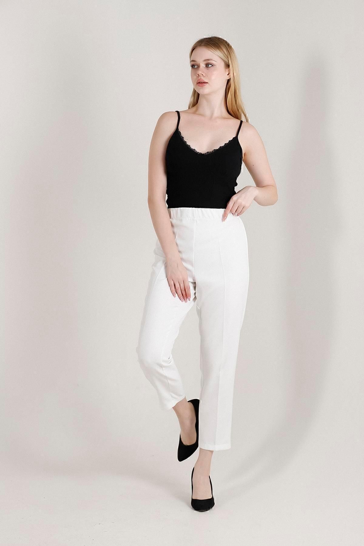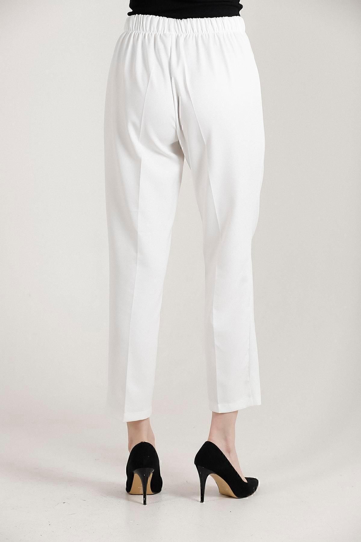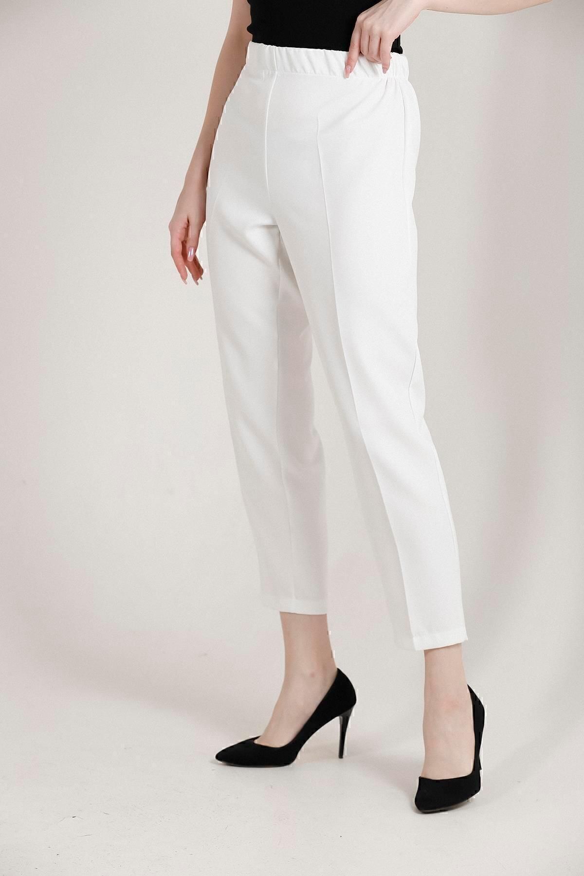 Balenbi Havuç Paça Yüksek Bel Likralı Dokuma Kadın Pantolon 1005 46 - Beyaz