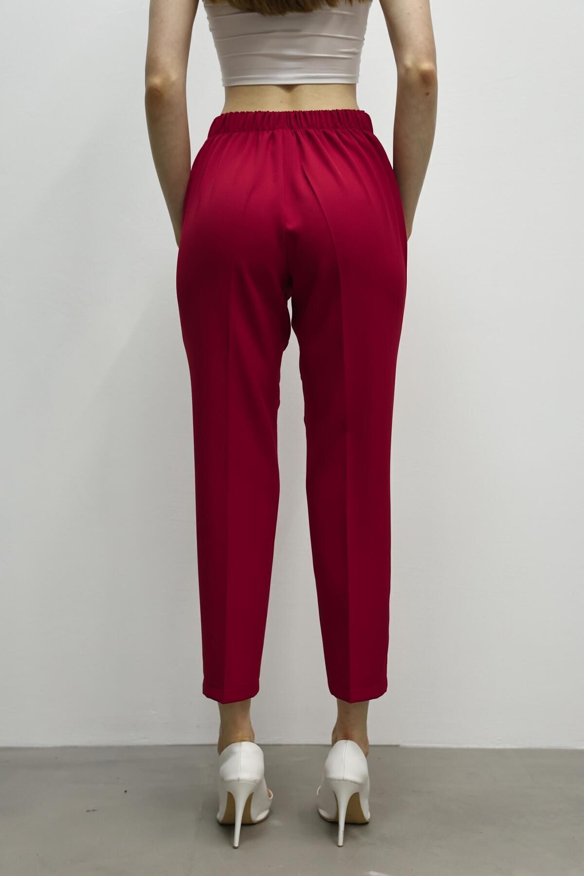 Balenbi Havuç Paça Yüksek Bel Likralı Dokuma Kadın Pantolon 1005 36 - Bordo