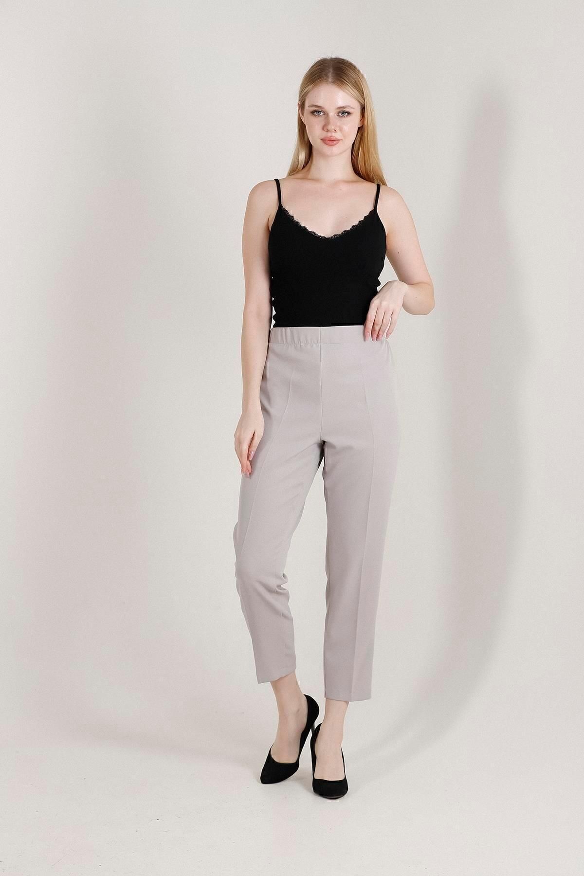 Balenbi Havuç Paça Yüksek Bel Likralı Dokuma Kadın Pantolon 1005 44 - Gri