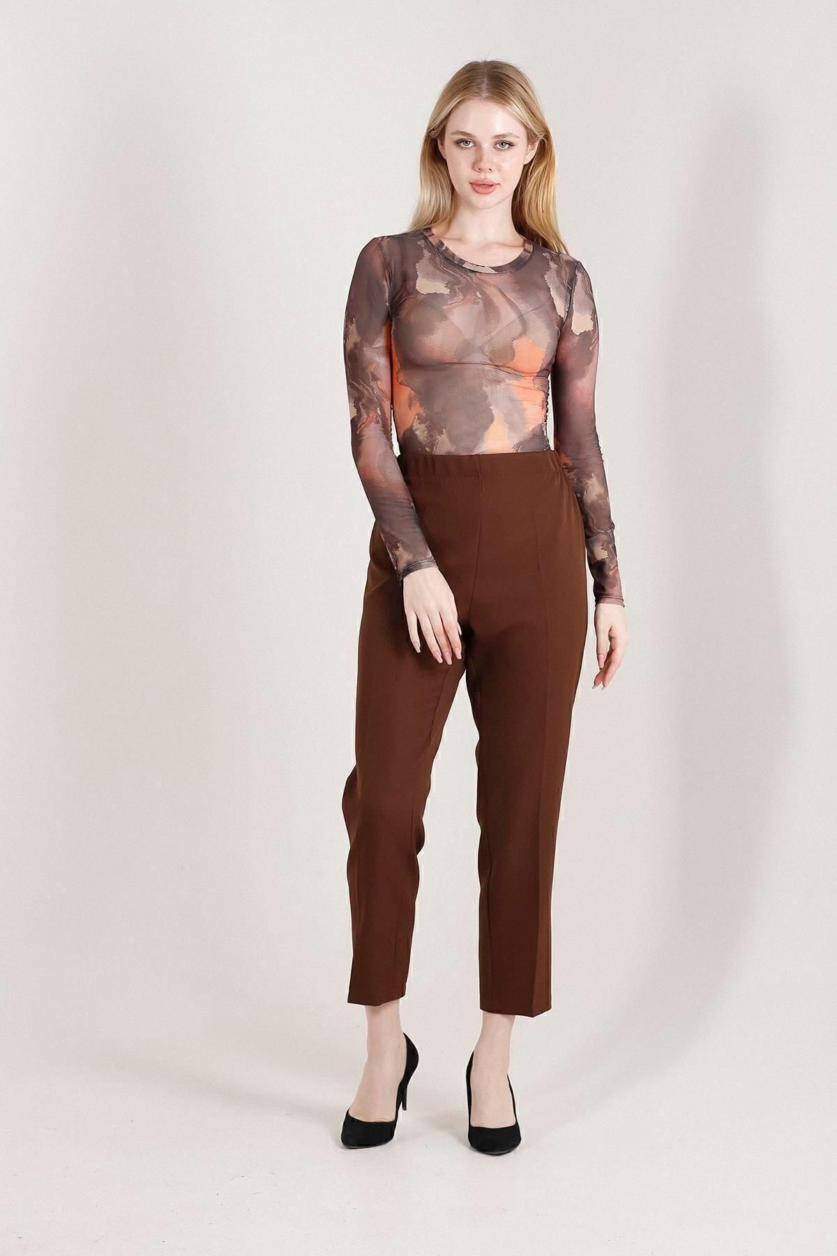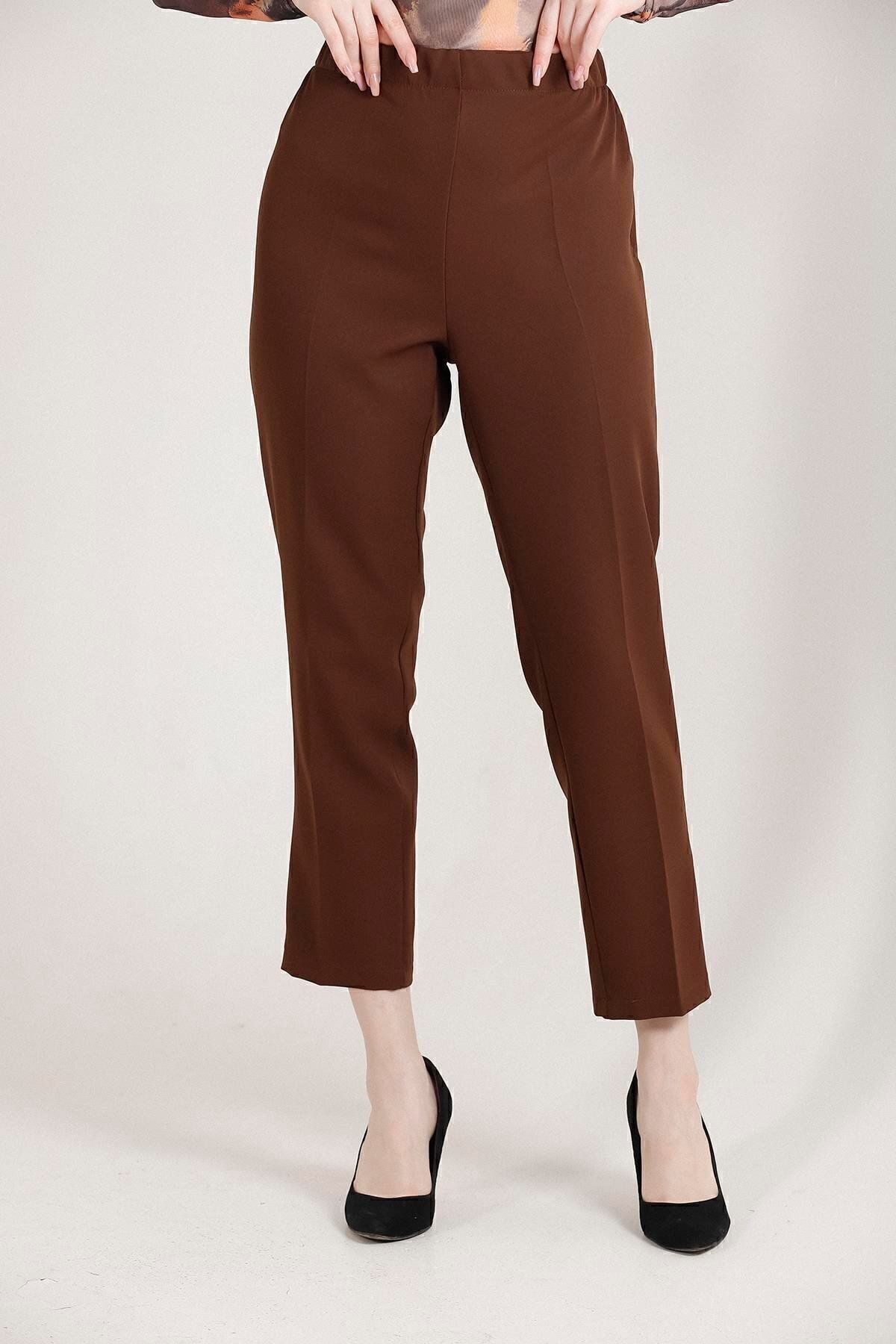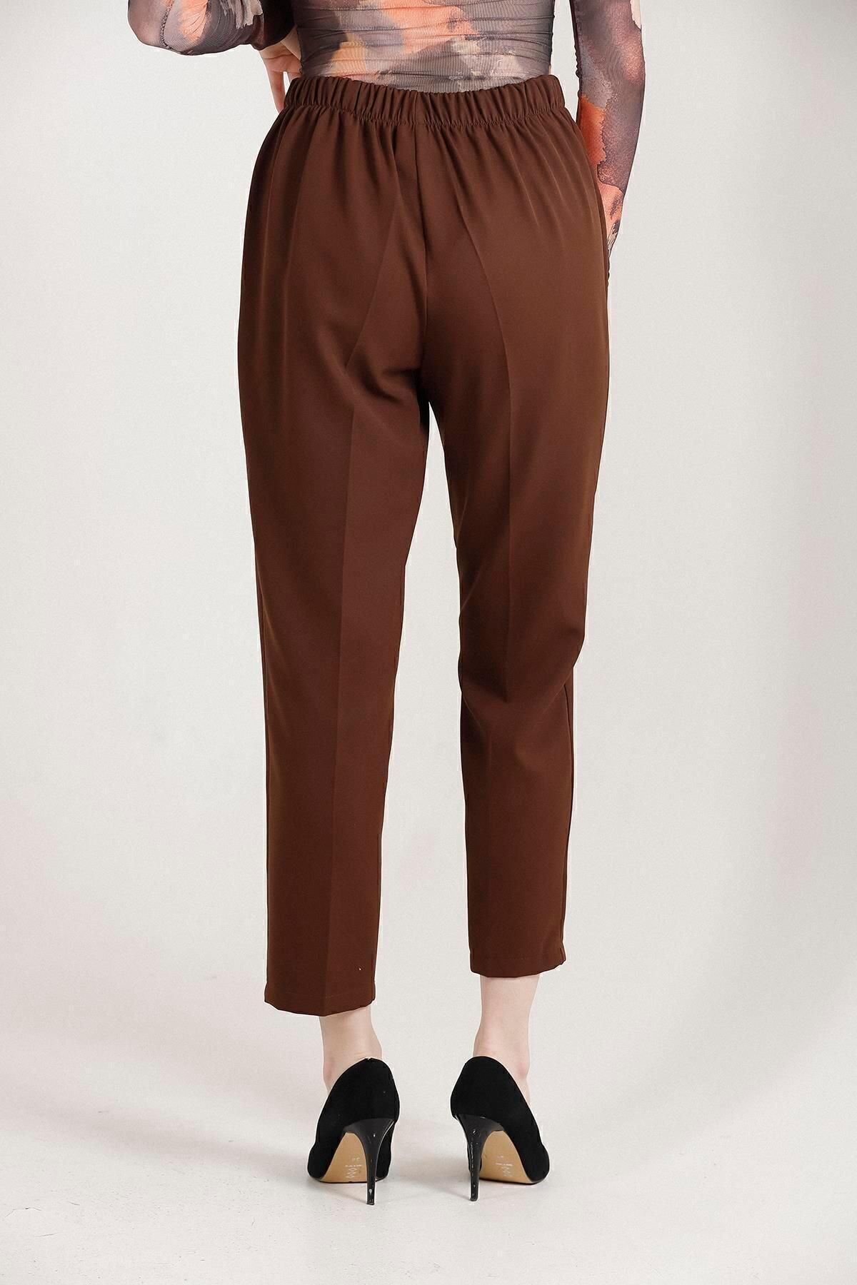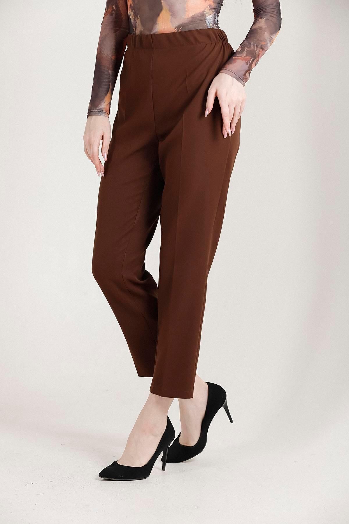 Balenbi Havuç Paça Yüksek Bel Likralı Dokuma Kadın Pantolon 1005 36 - Kahve