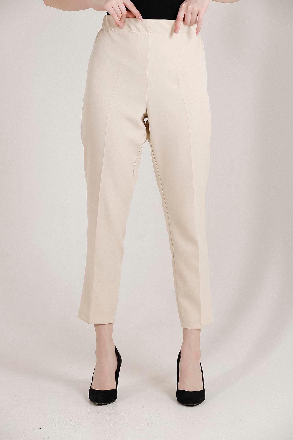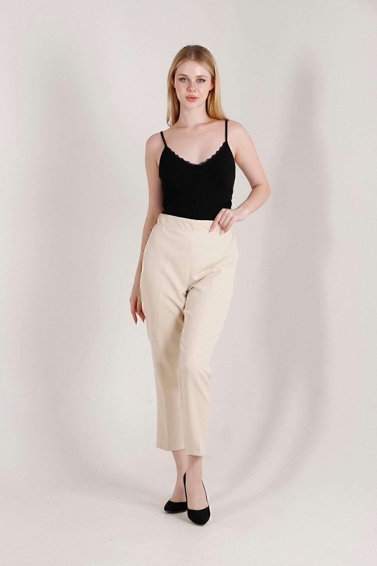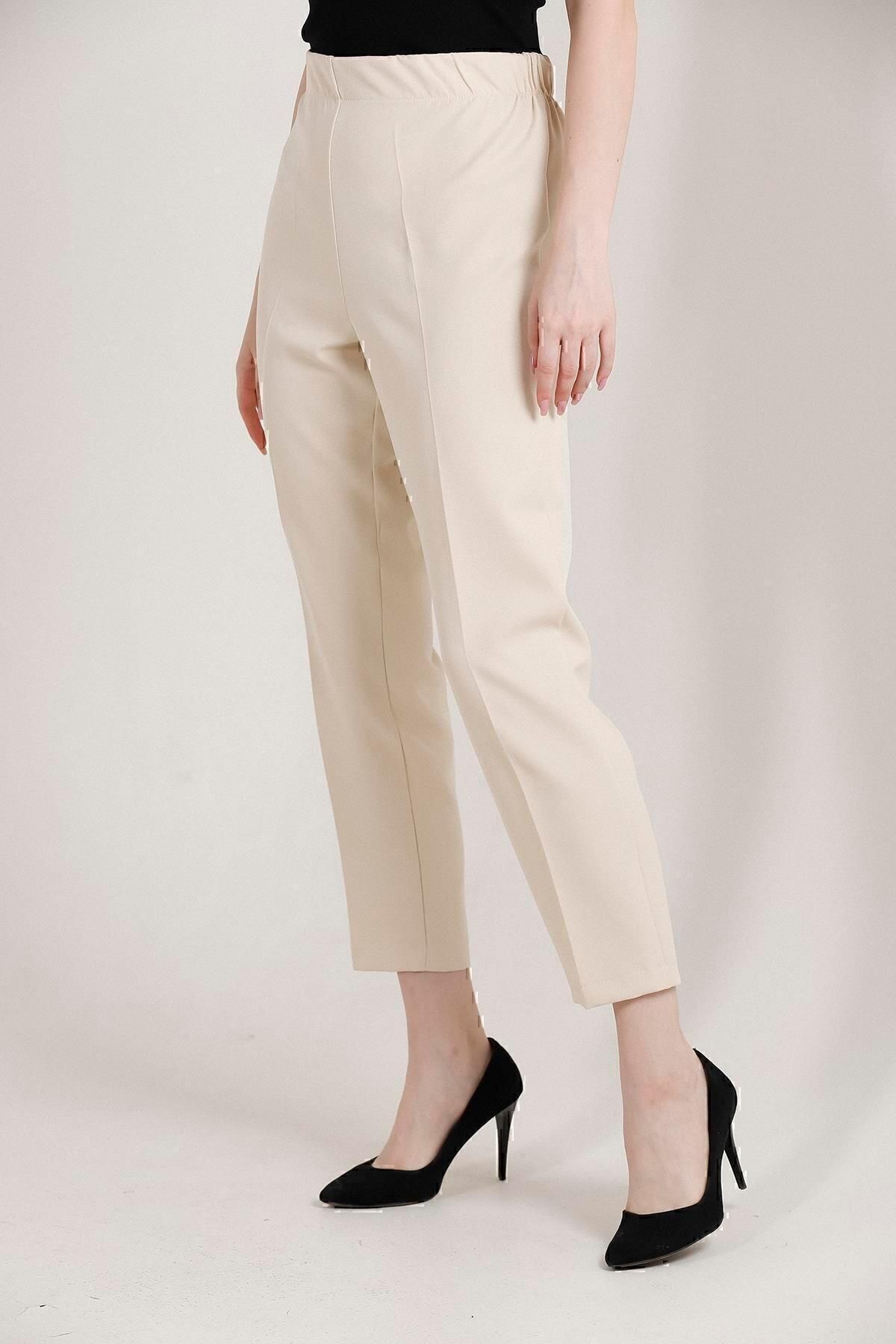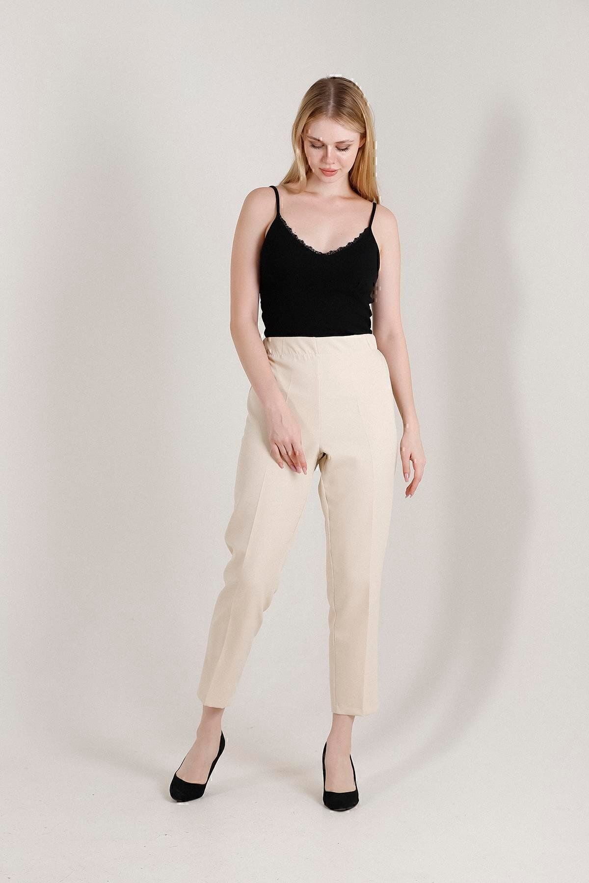 Balenbi Havuç Paça Yüksek Bel Likralı Dokuma Kadın Pantolon 1005 46 - Krem
