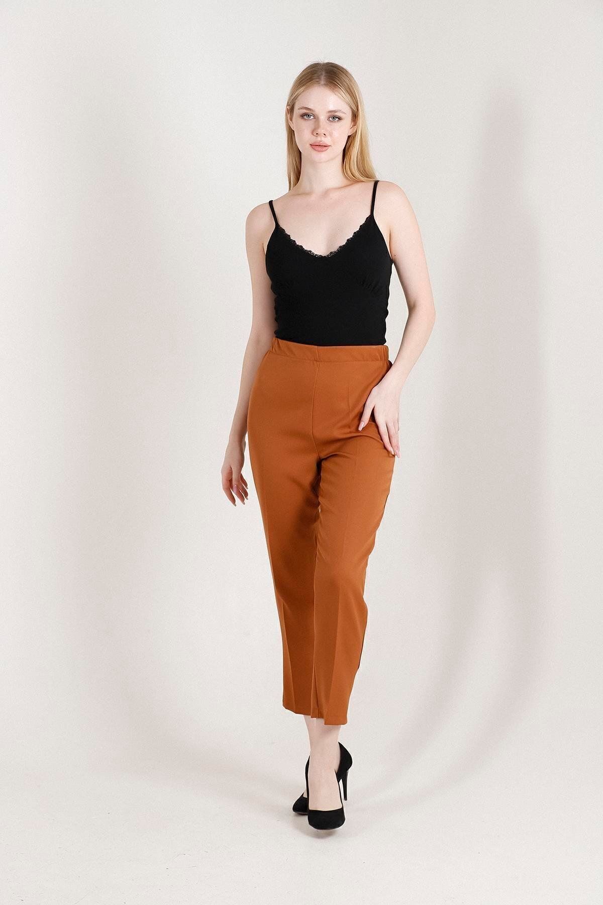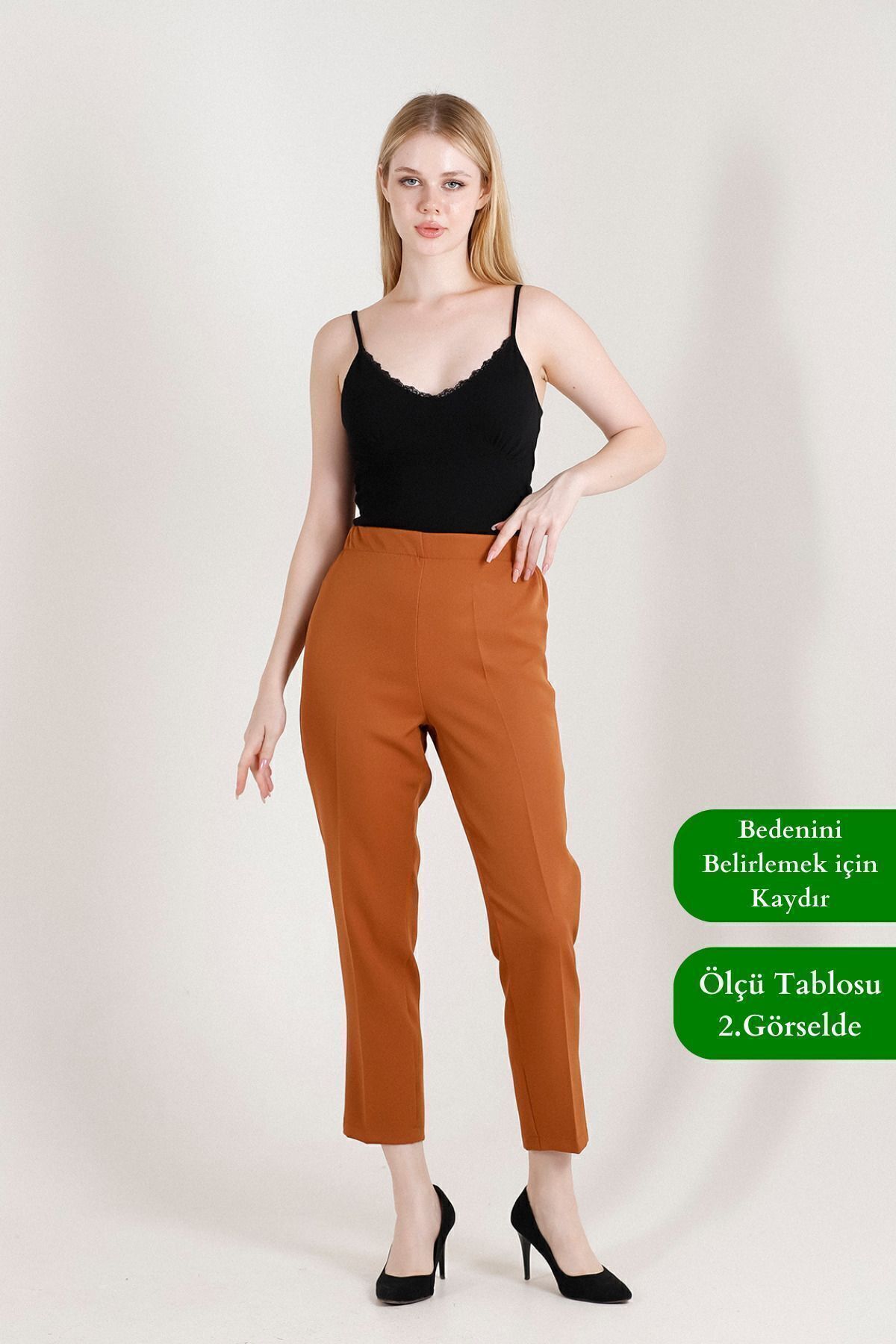 Balenbi Havuç Paça Yüksek Bel Likralı Dokuma Kadın Pantolon 1005 36 - Taba