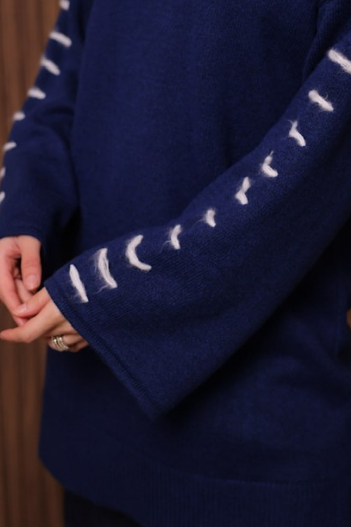 Balenbi İlmek Detaylı Oversize Yumoş Tesettür Triko Tunik 7028 Standart - Lacivert