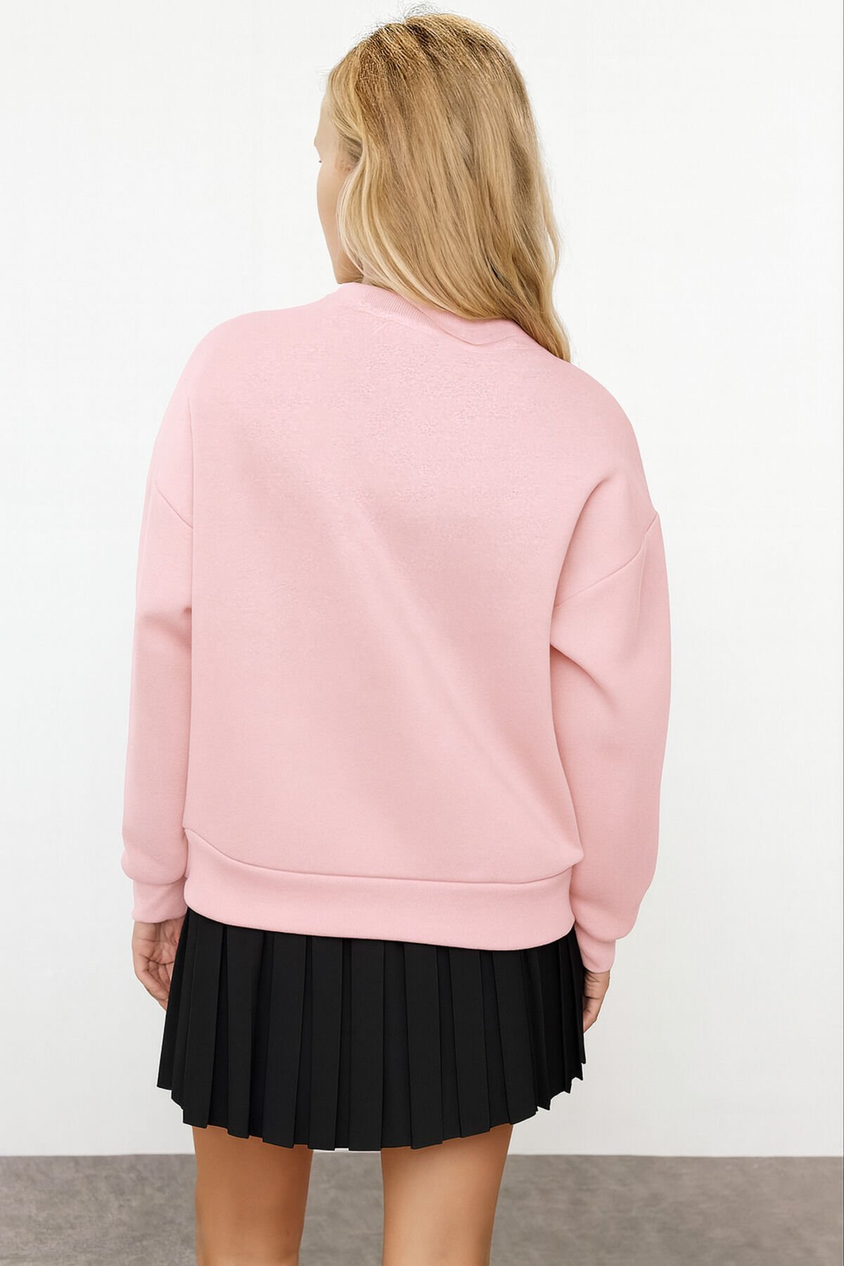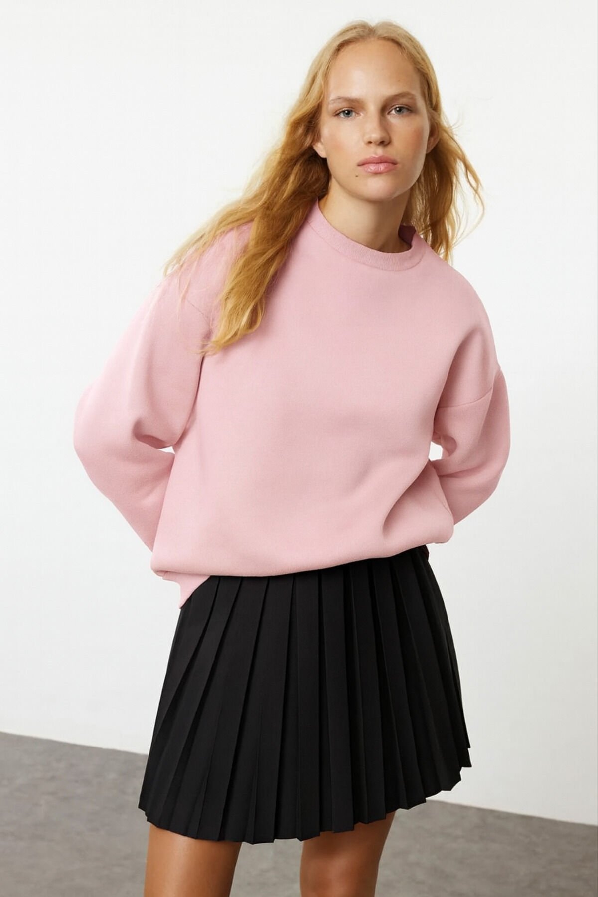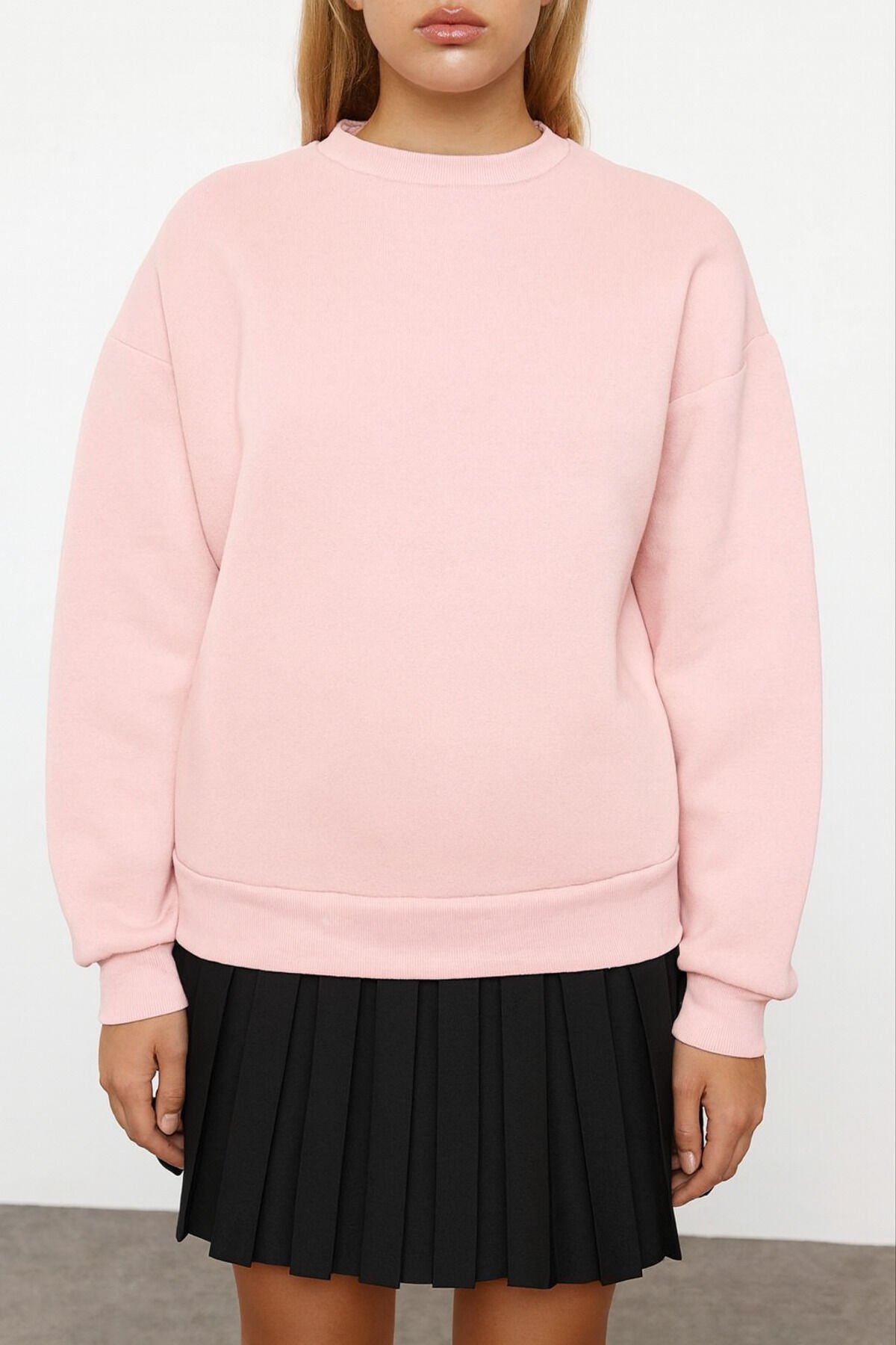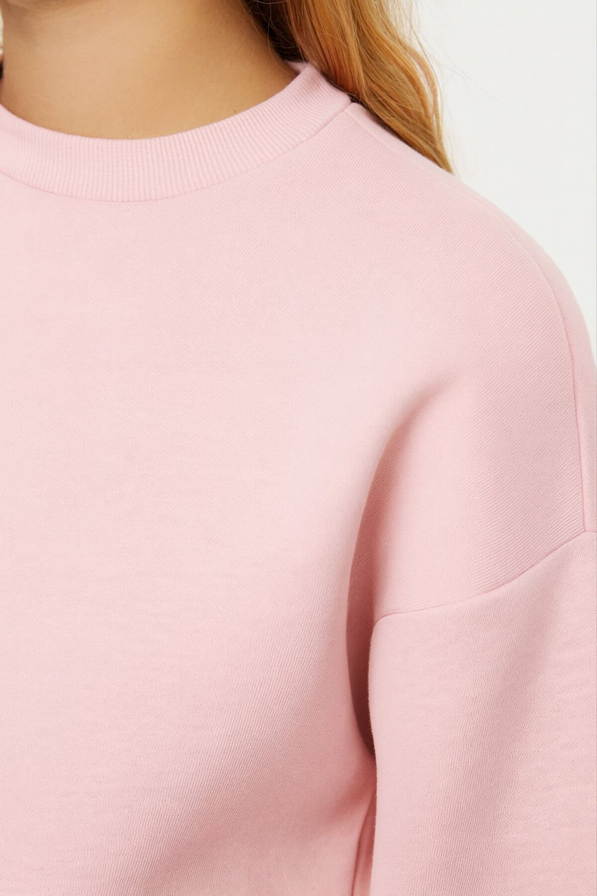 Balenbi Kadın 3 İplik İçi Polarlı Bisiklet Yaka Oversize Sweatshirt 1154 M - Pembe