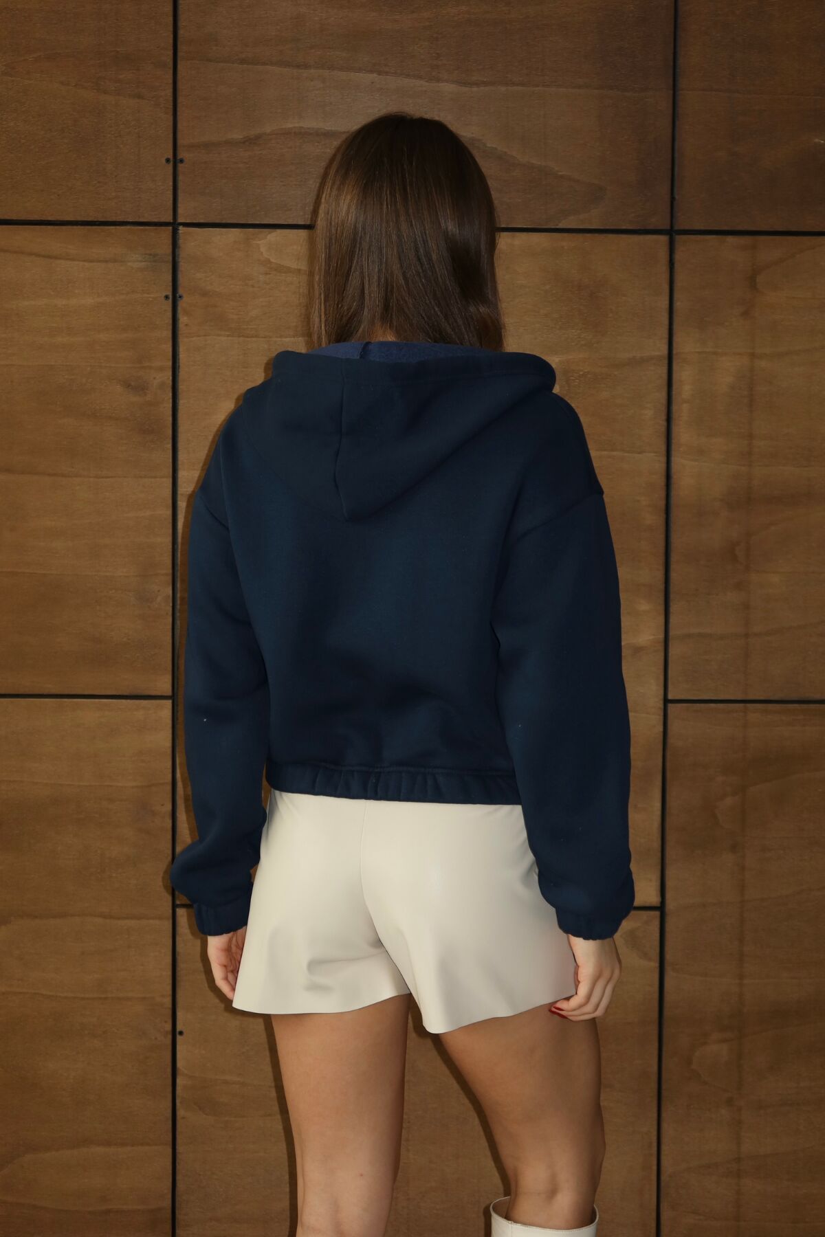Balenbi Kadın 3 İplik İçi Polarlı Kapüşonlu Fermuarlı Kısa Hırka 1111 S - Lacivert