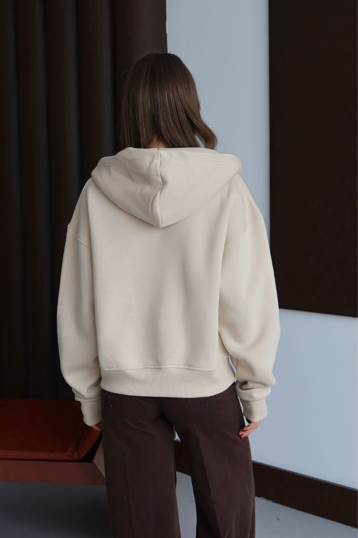 Balenbi Kadın 3 İplik İçi Polarlı Kapüşonlu Oversize Sweat Hırka 1110 L - Bej
