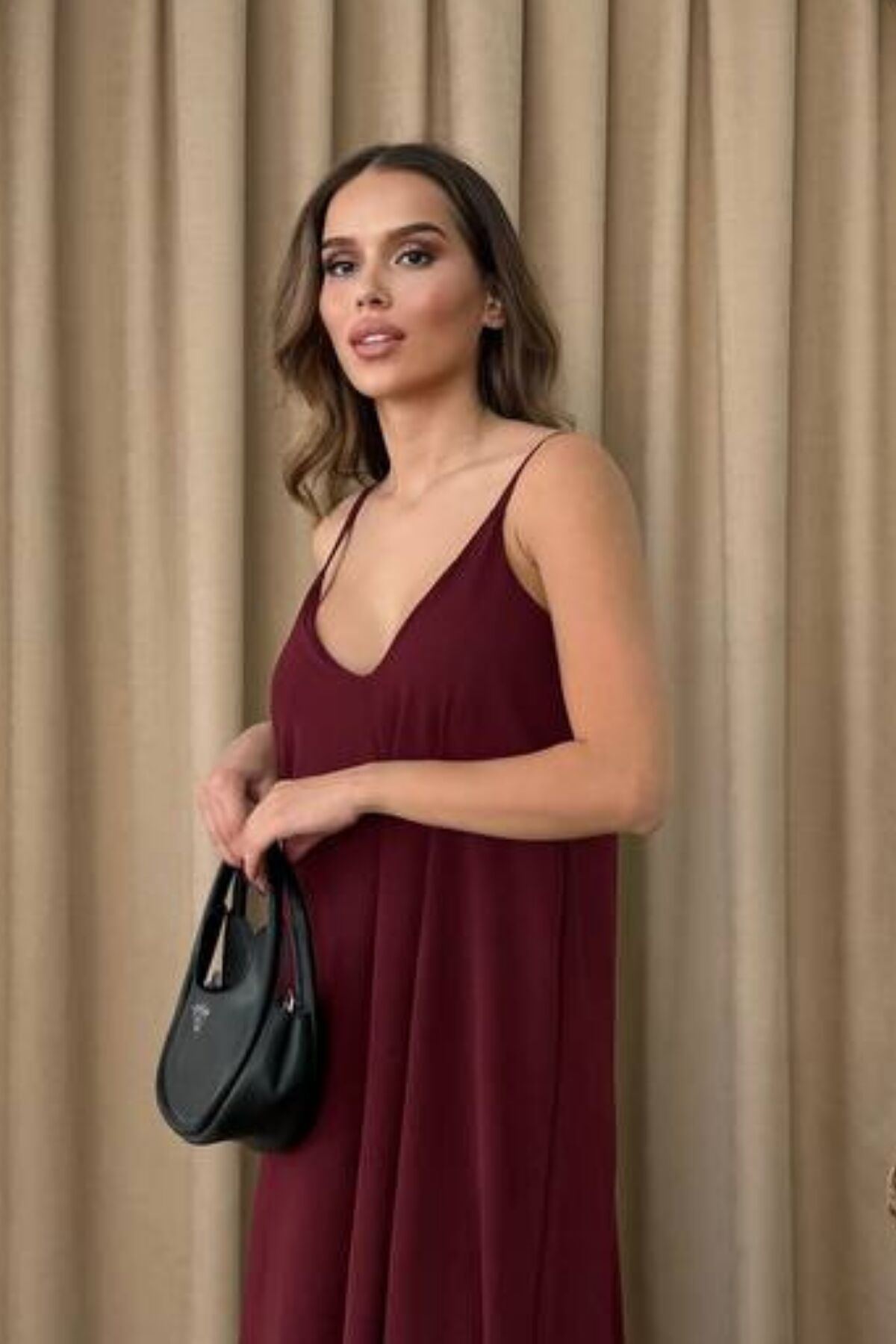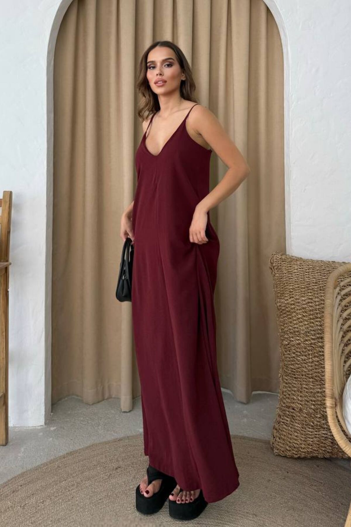 Balenbi Kadın Aerobin Kumaş Ayarlanabilir Askılı Uzun Elbise 1099 M - Bordo