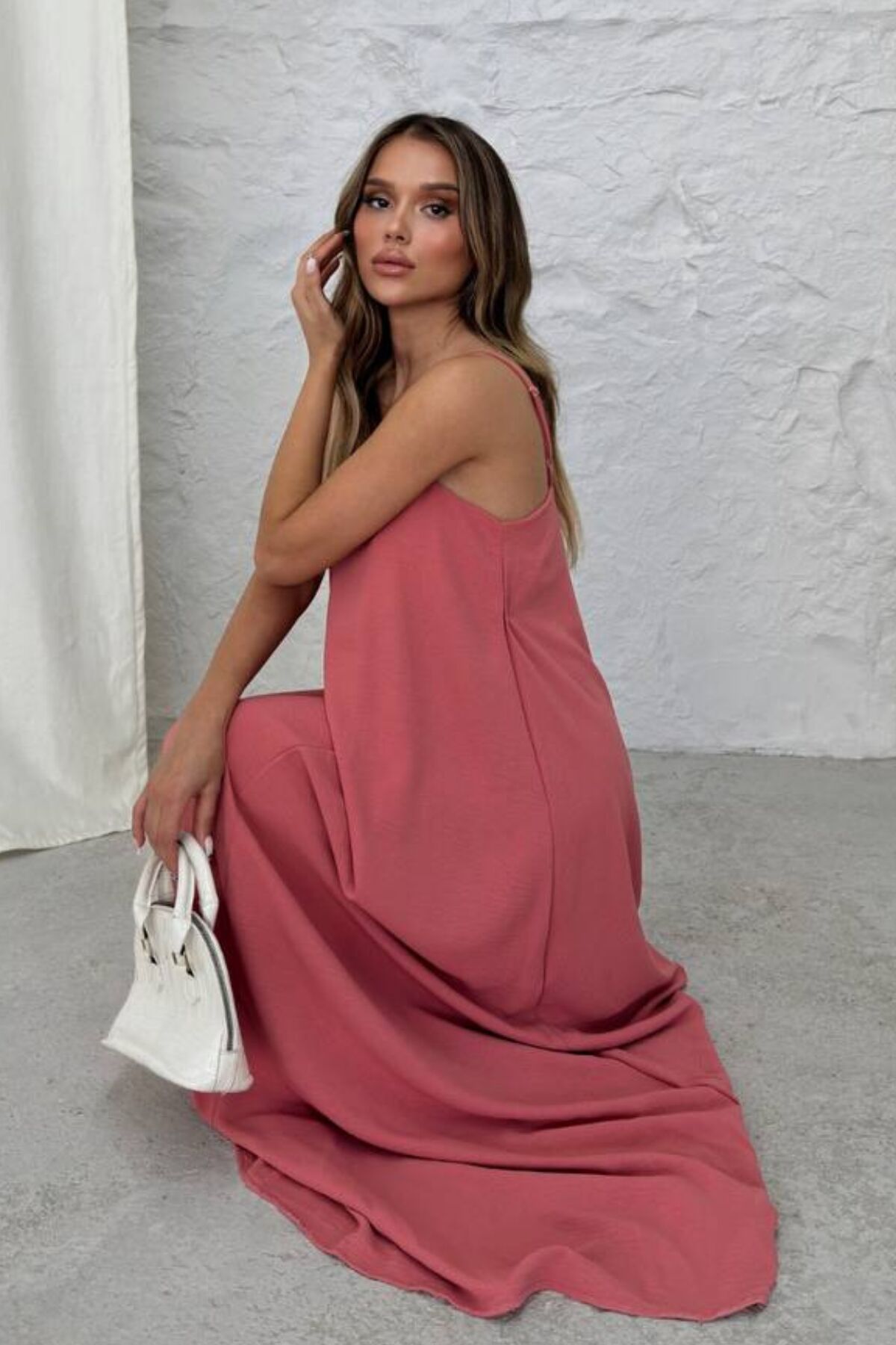 Balenbi Kadın Aerobin Kumaş Ayarlanabilir Askılı Uzun Elbise 1099 S - Mercan