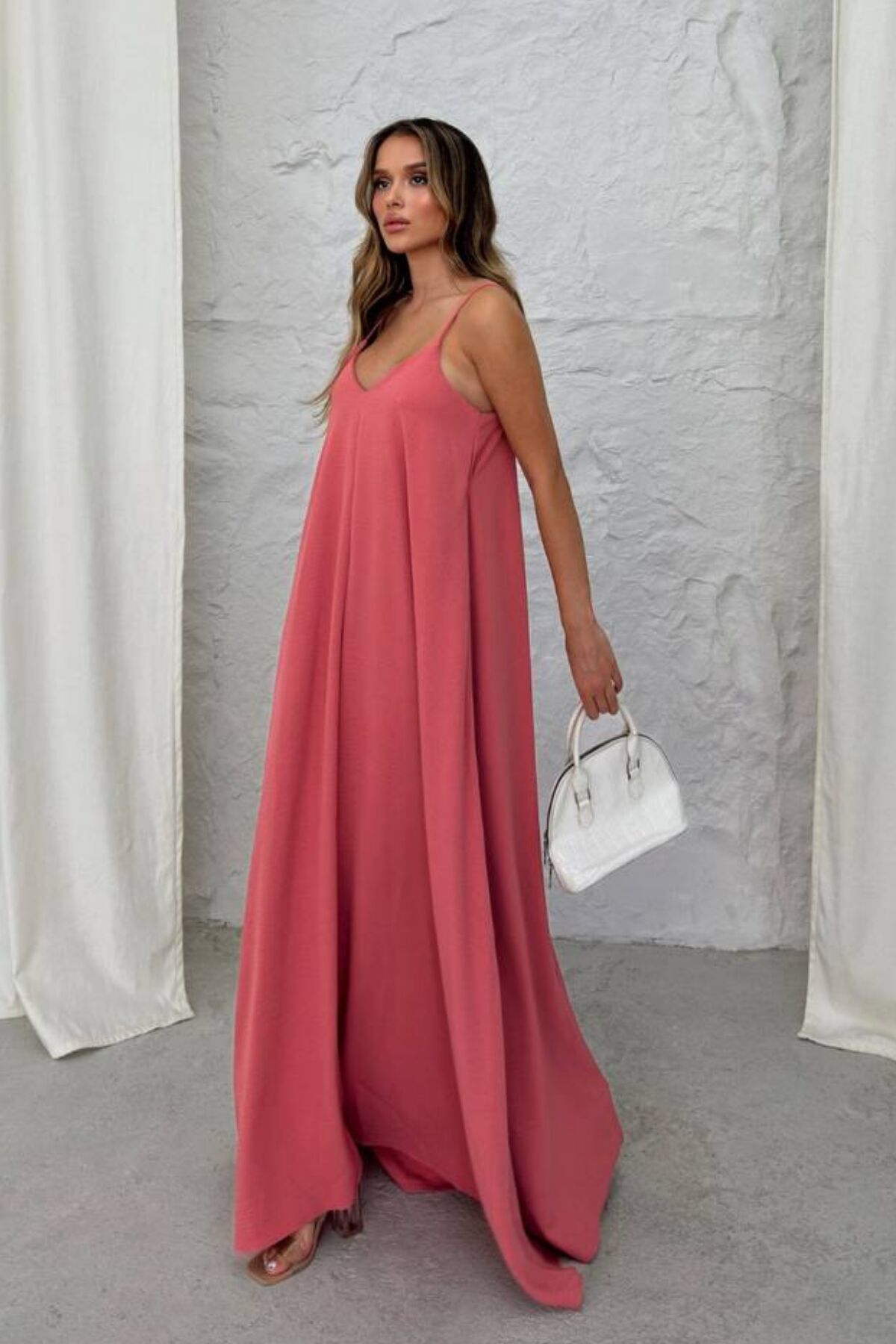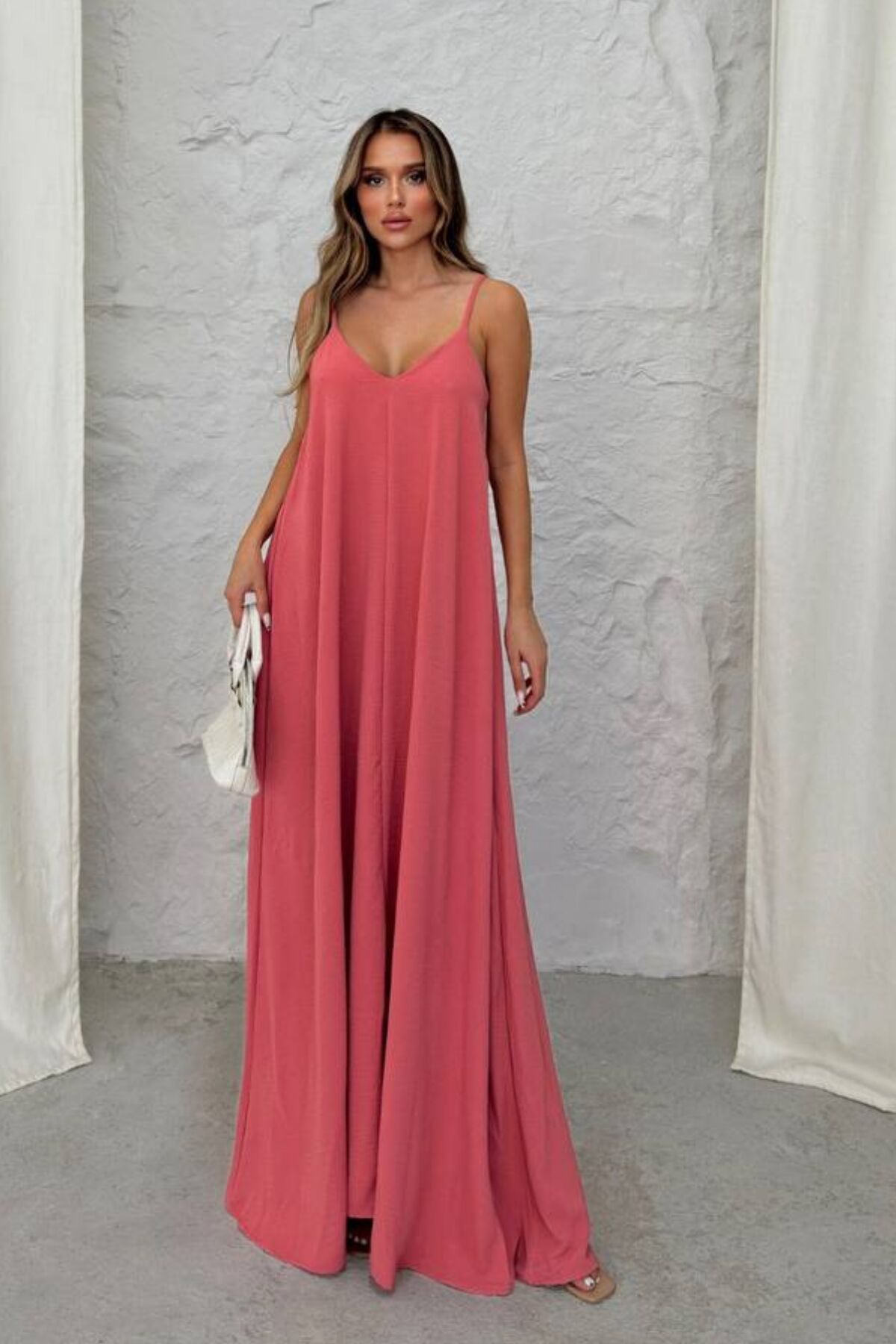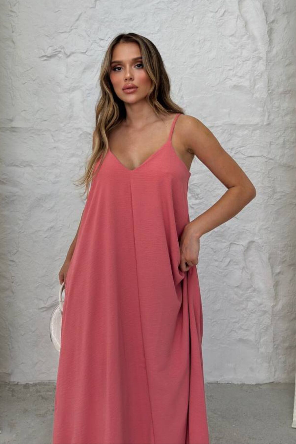 Balenbi Kadın Aerobin Kumaş Ayarlanabilir Askılı Uzun Elbise 1099 XL - Mercan