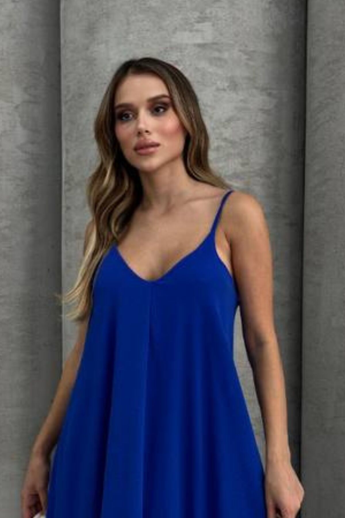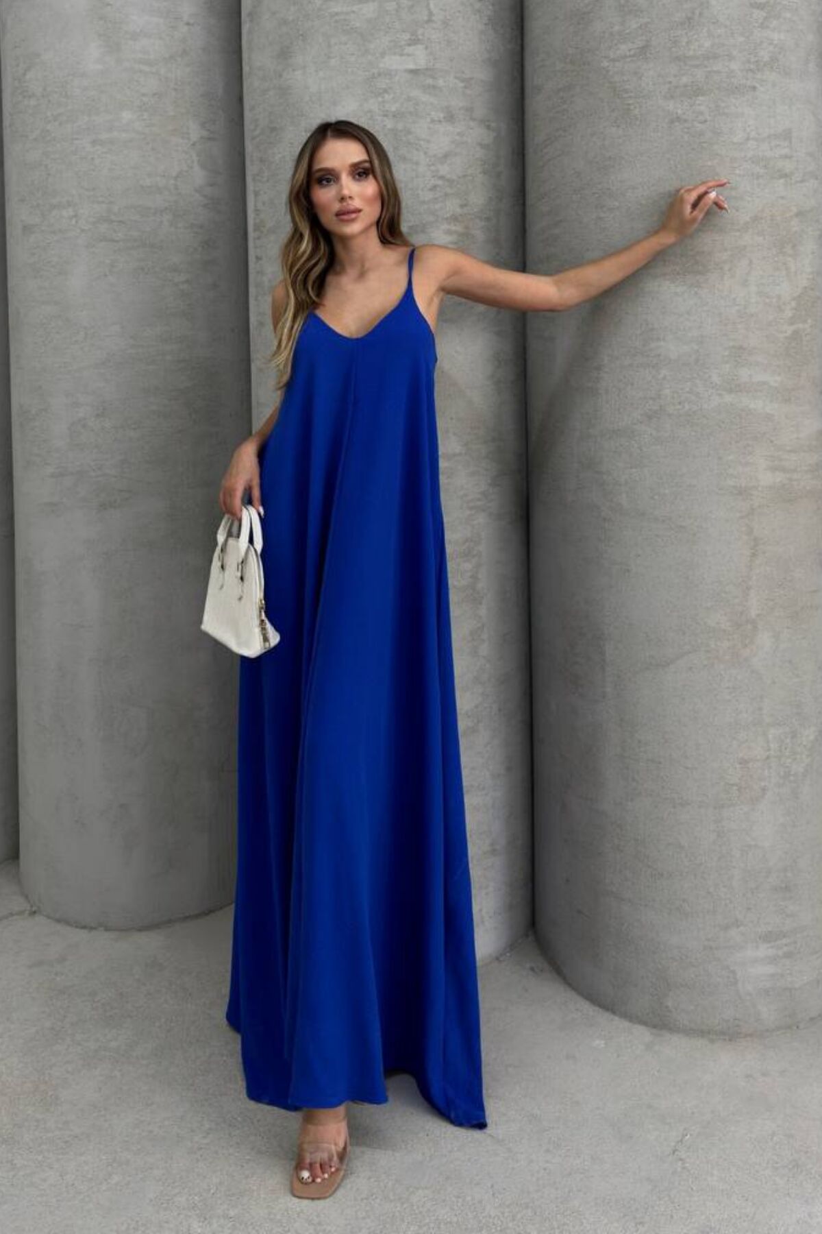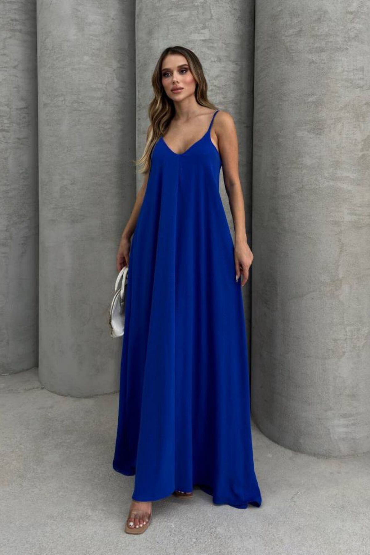 Balenbi Kadın Aerobin Kumaş Ayarlanabilir Askılı Uzun Elbise 1099 S - Saks