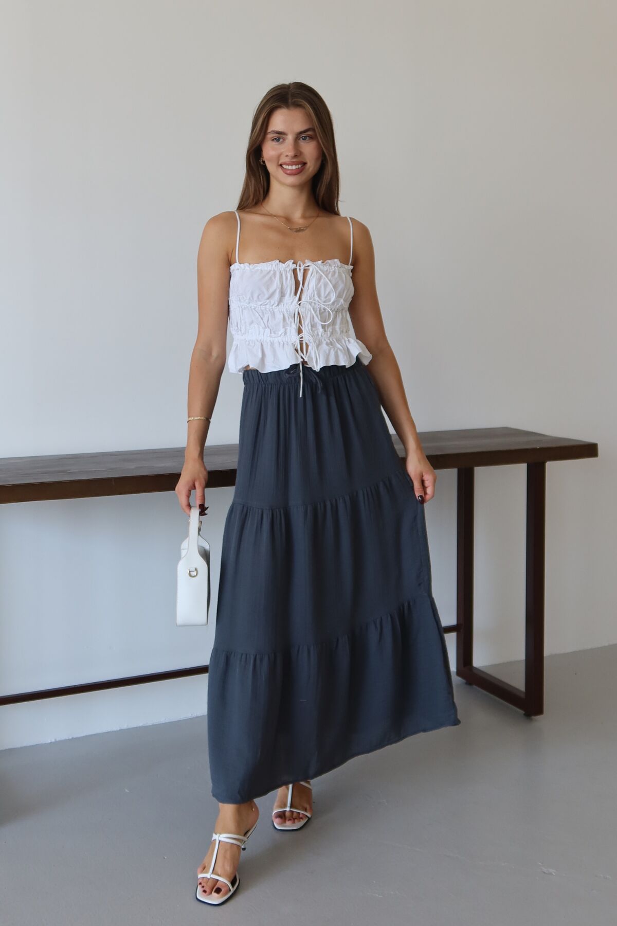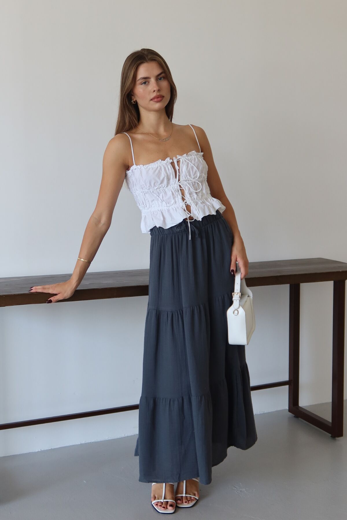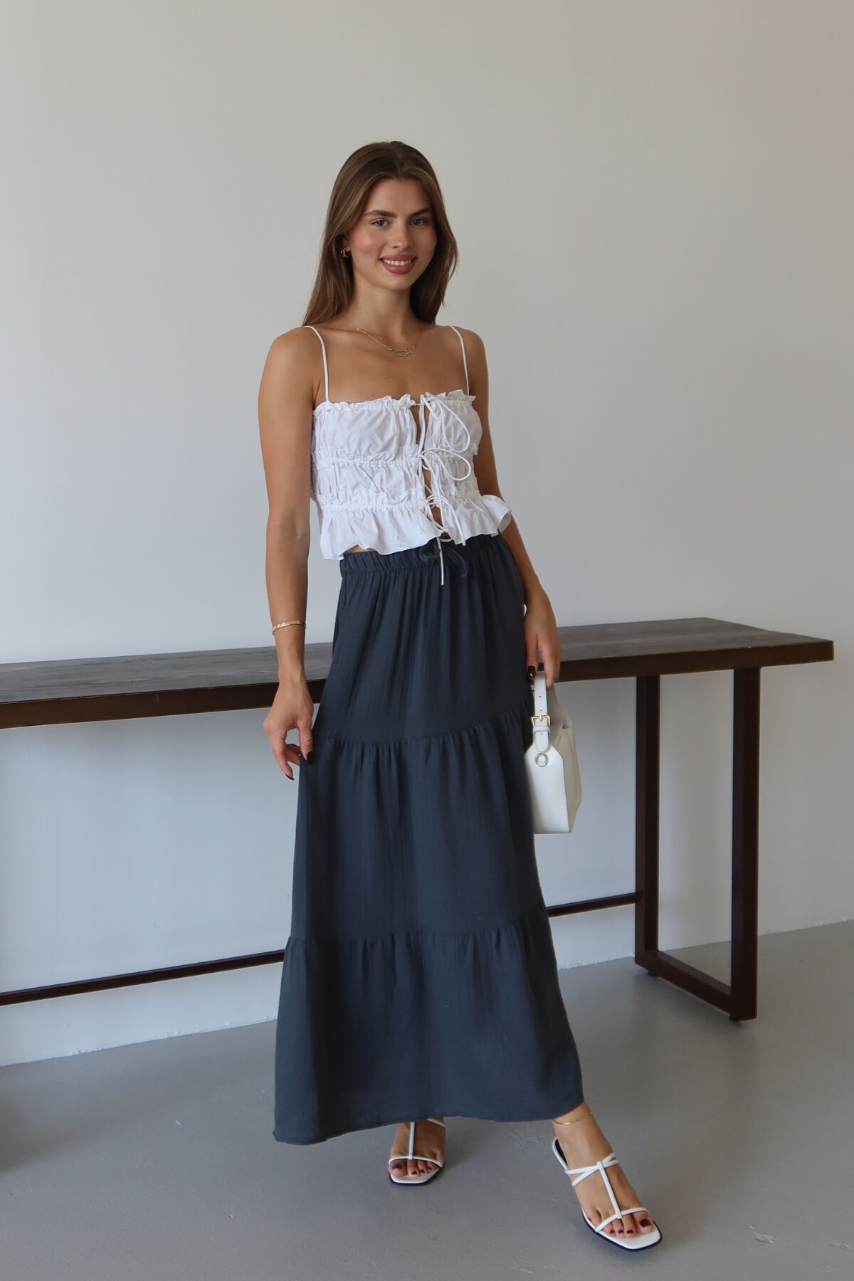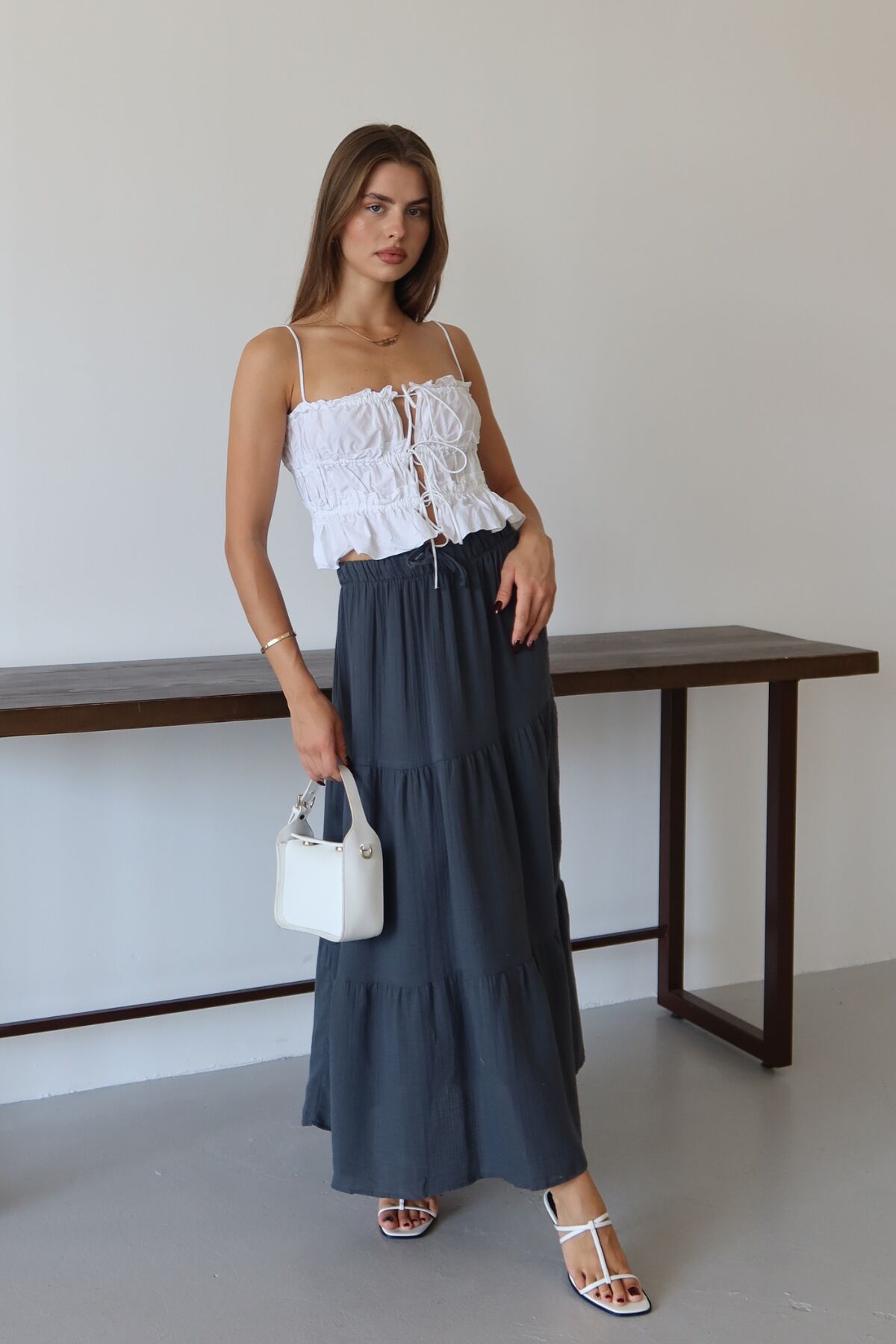 Balenbi Kadın Basic Beli Bağcıklı Müslin Etek 1104 - Rahatlıkla bağlanabilen kemer detayı sayesinde kişisel zevke göre ayarlanabilir bel yüksekliği.; - Yaz ayları için ideal, hafif ve nefes alabilen dokusuyla konforlu bir kullanım sunan ince yapı.; - Günlük kullanıma uygun, düz deseniyle kolayca kombinlenebilen sade tasarım.; - Bağlama detayı ile pratik giyim imkanı sağlayan esnek ve rahat kalıp.; - %100 pamuk materyali sayesinde cildinizle dost, yumuşak dokunuş hissi veren yapı.; - Kolay bakım avantajı; 30 derecede makinede yıkama ve düşük ısıda ütüleme gibi basit kurallara uyarak uzun süre ilk günkü formunu korur.; - Sürdürülebilirlik bilinci taşımayan bu ürün, çevreye duyarlı tercihler yapmak isteyenler için alternatif olabilir.; - Cepsiz tasarımıyla minimalist bir görünüm sergileyerek şıklığı sadelikle buluşturur.; - Günlük aktivitelerde rahatlıkla tercih edebileceğiniz casual tarza sahip etek modeli.; - Her yaş grubuna hitap eden geniş kullanıcı kitlesi için uygunluk gösterir.; - Uzun boy kesimi ile bacakları olduğundan daha uzun gösterirken, yüksek bel detayı modern bir siluet oluşturur.; - Astarsız yapısıyla hafiflik kazandırırken, bel kısmındaki lastik detay rahat hareket etme özgürlüğü sağlar.;