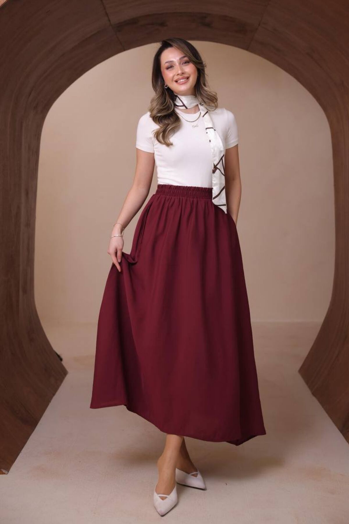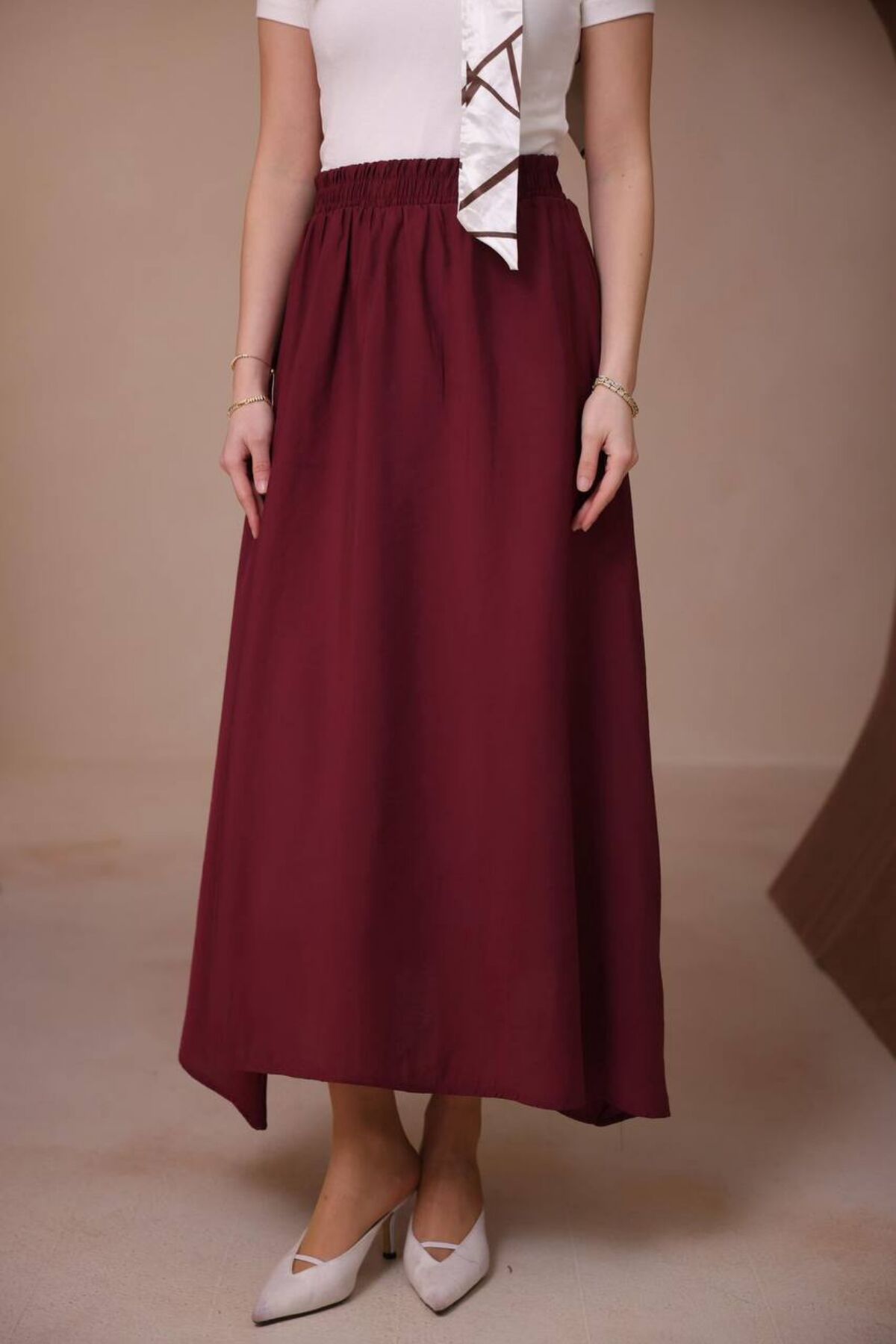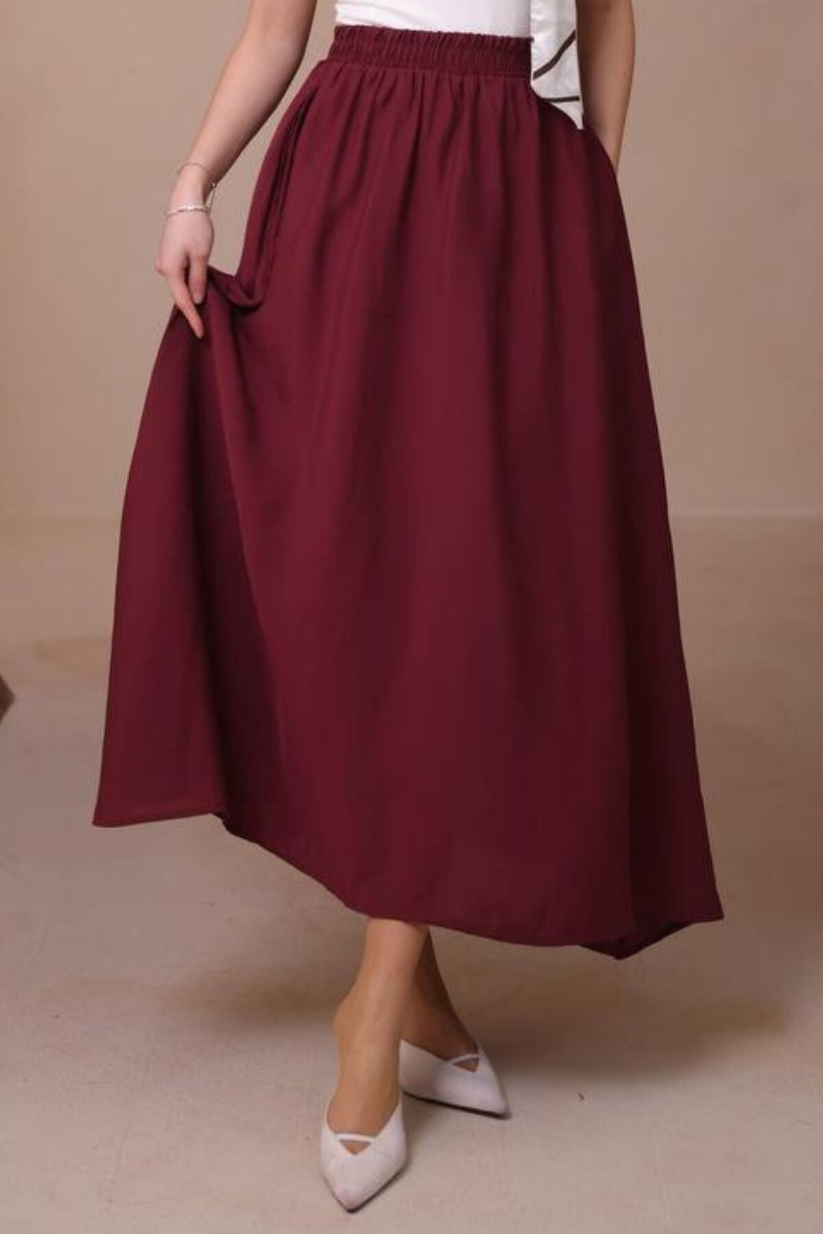 Balenbi Kadın Basic Beli Lastikli Modal Dokuma Etek 1204 Standart - Bordo