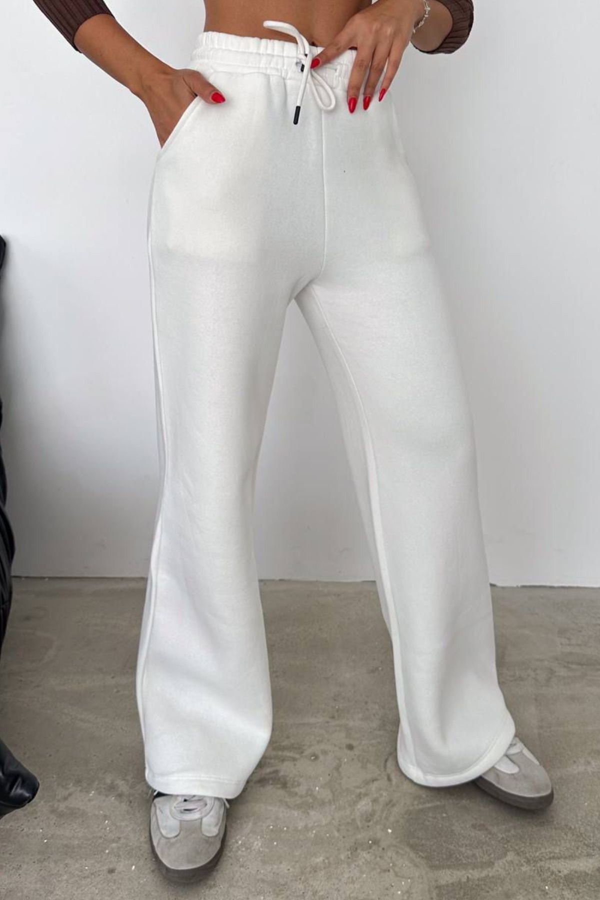 Balenbi Kadın Bol Paça Yüksek Bel Polarlı Kışlık Eşofman Altı 1086