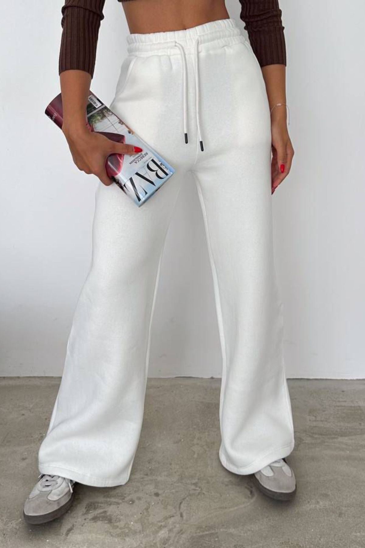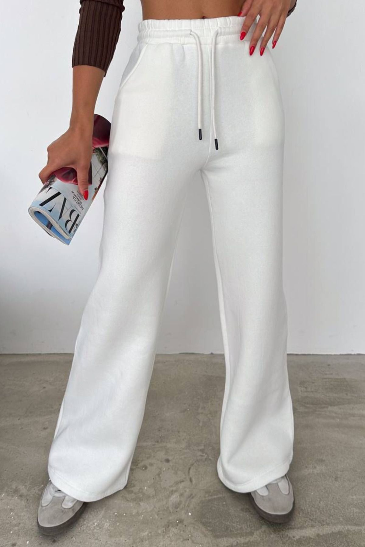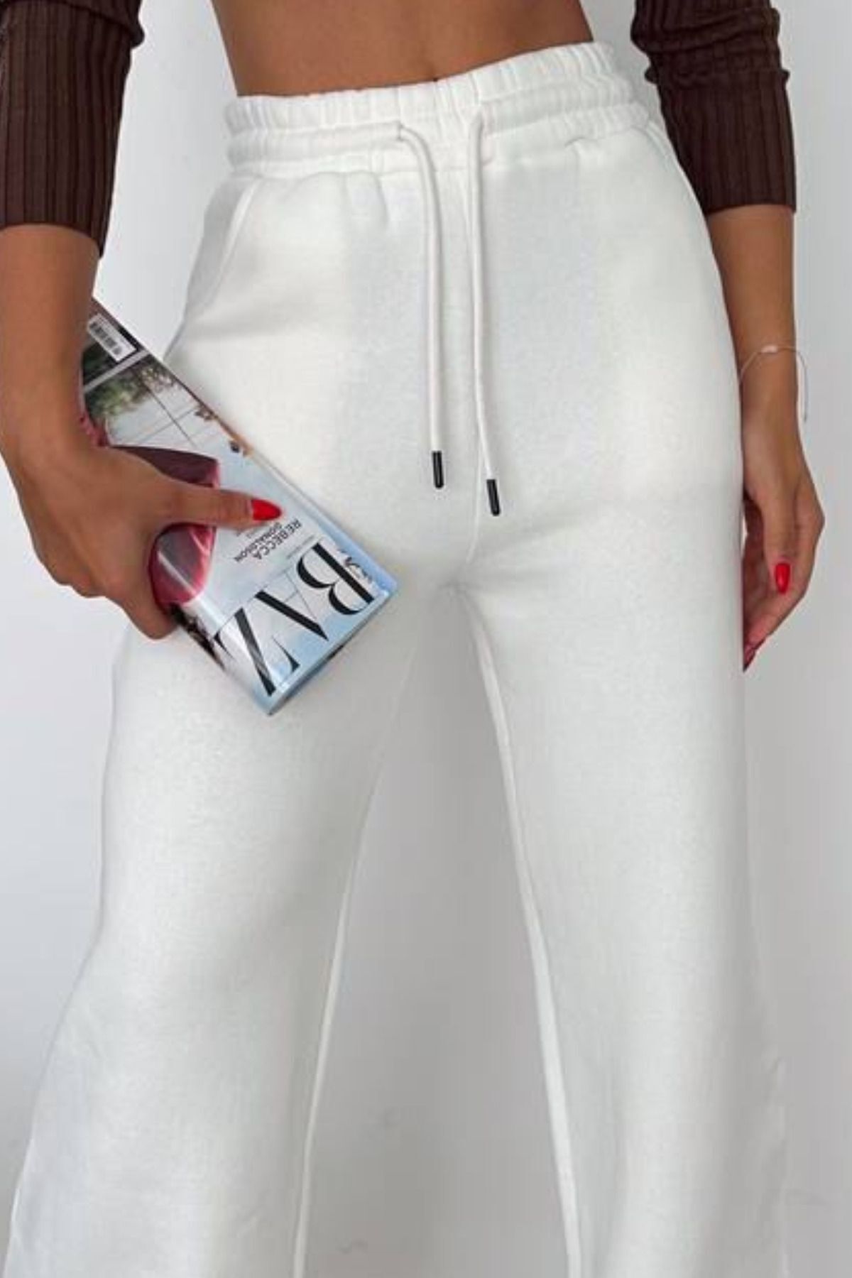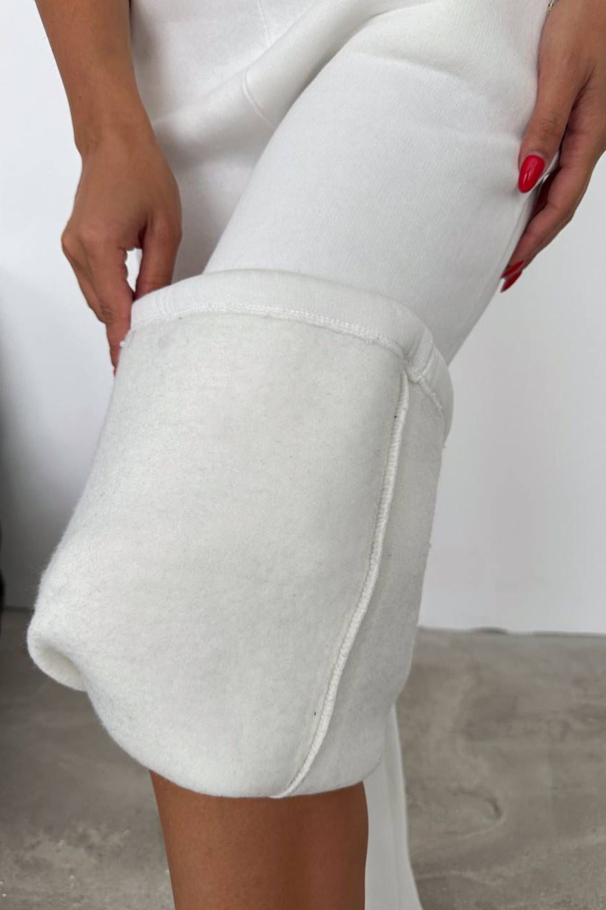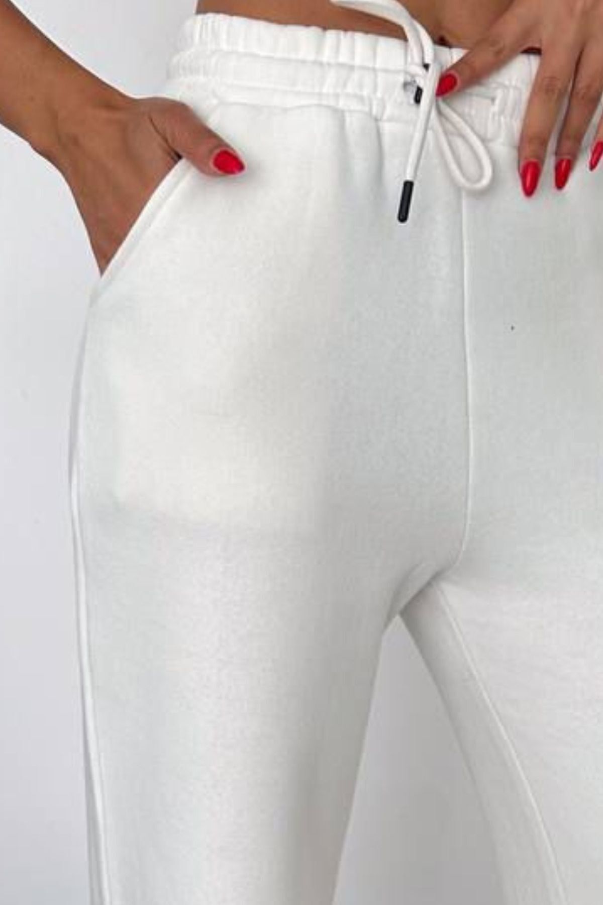 Balenbi Kadın Bol Paça Yüksek Bel Polarlı Kışlık Eşofman Altı 1086 M - Ekru