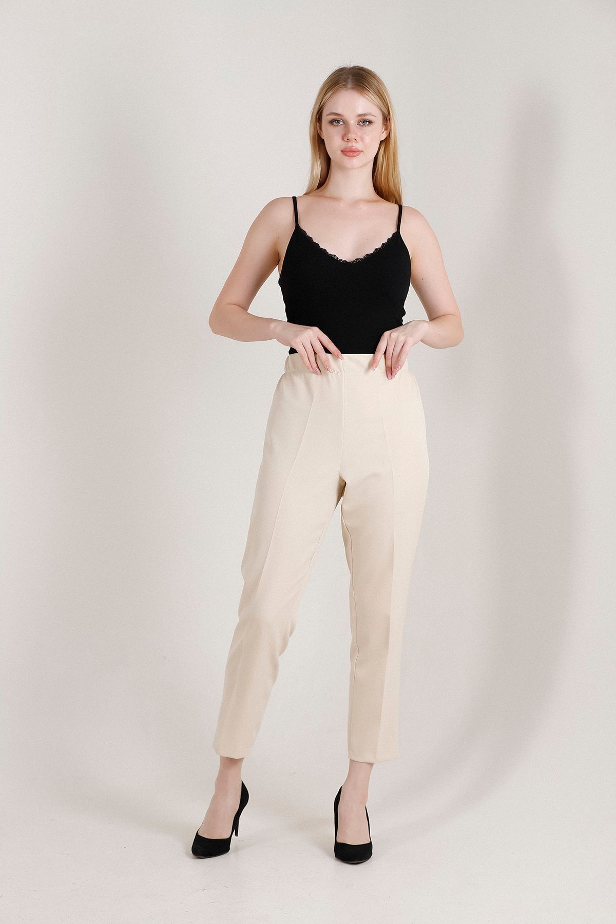 Balenbi Kadın Büyük Beden Havuç Paça Likralı Dokuma Pantolon 1004 54 - Bej