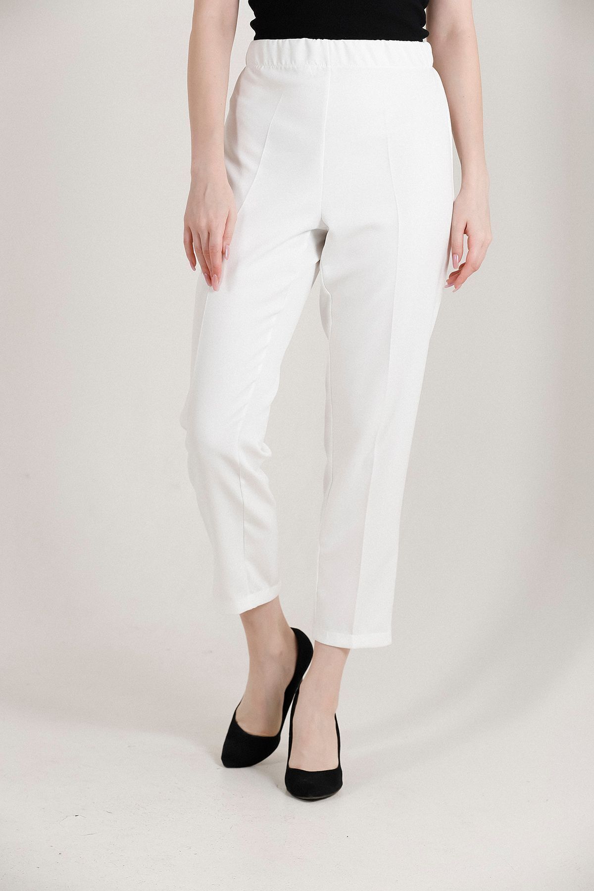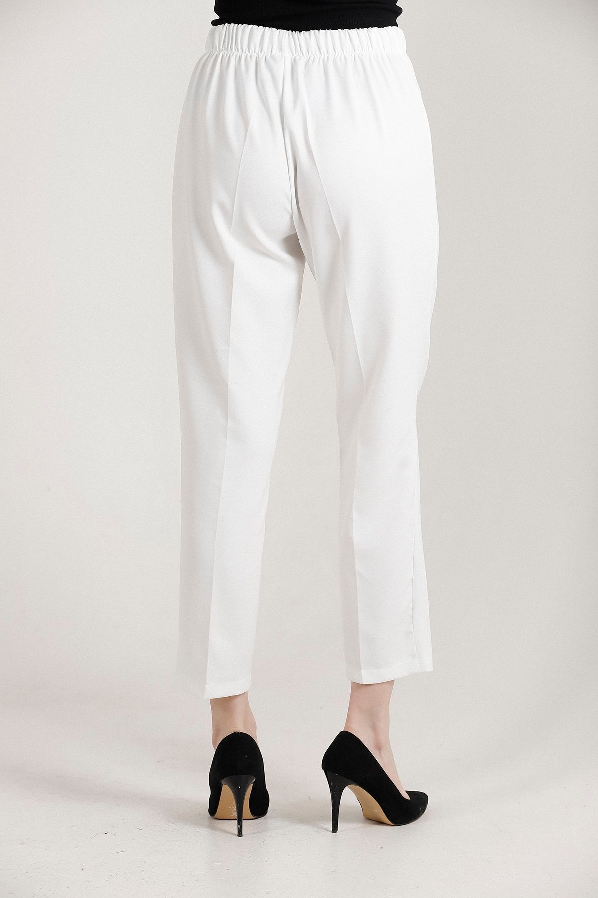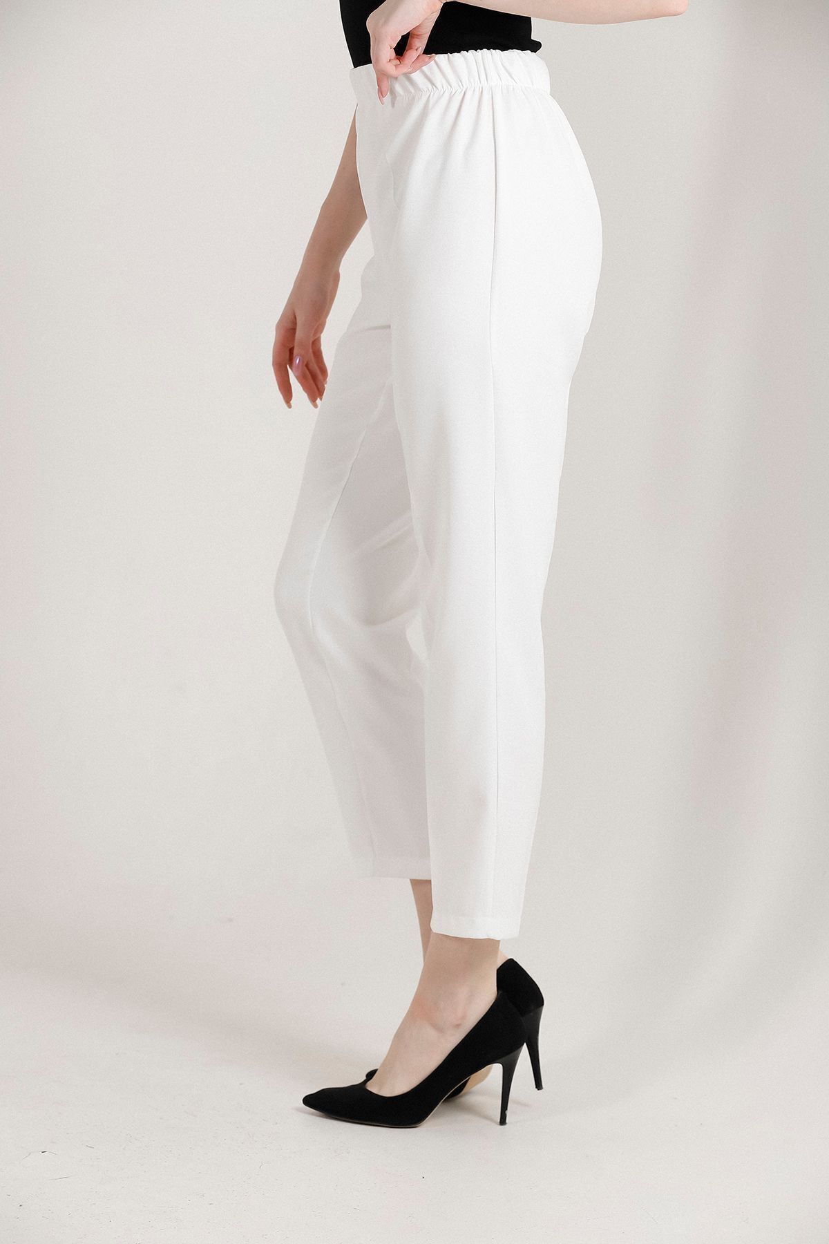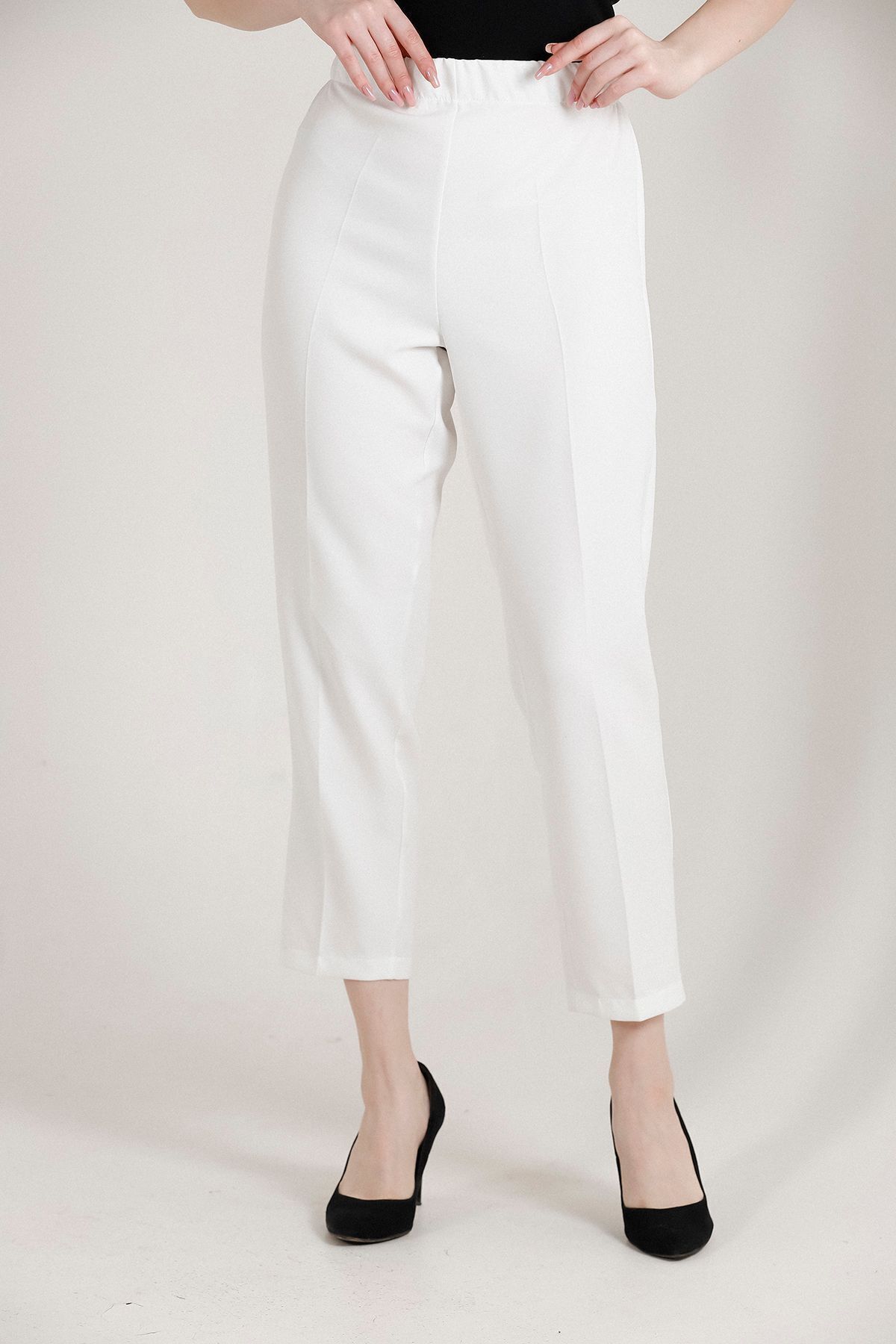 Balenbi Kadın Büyük Beden Havuç Paça Likralı Dokuma Pantolon 1004 50 - Beyaz