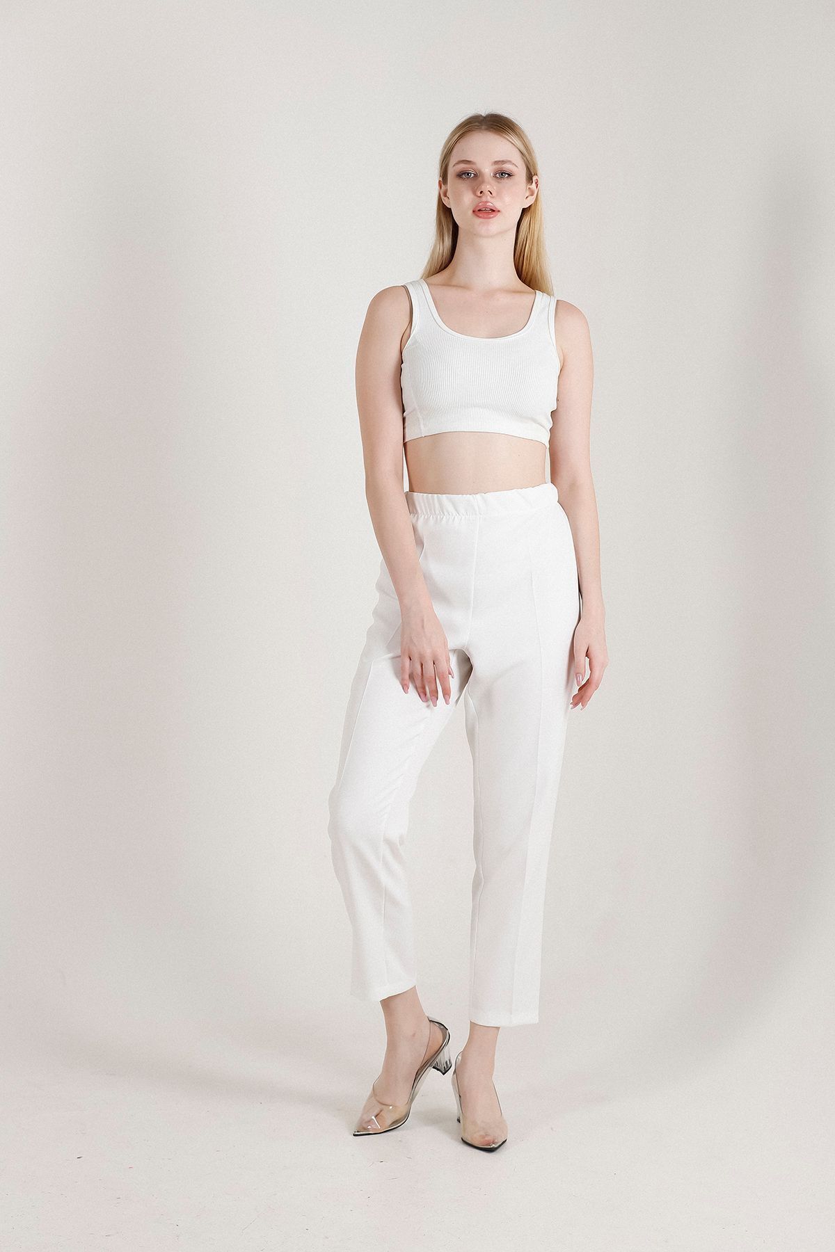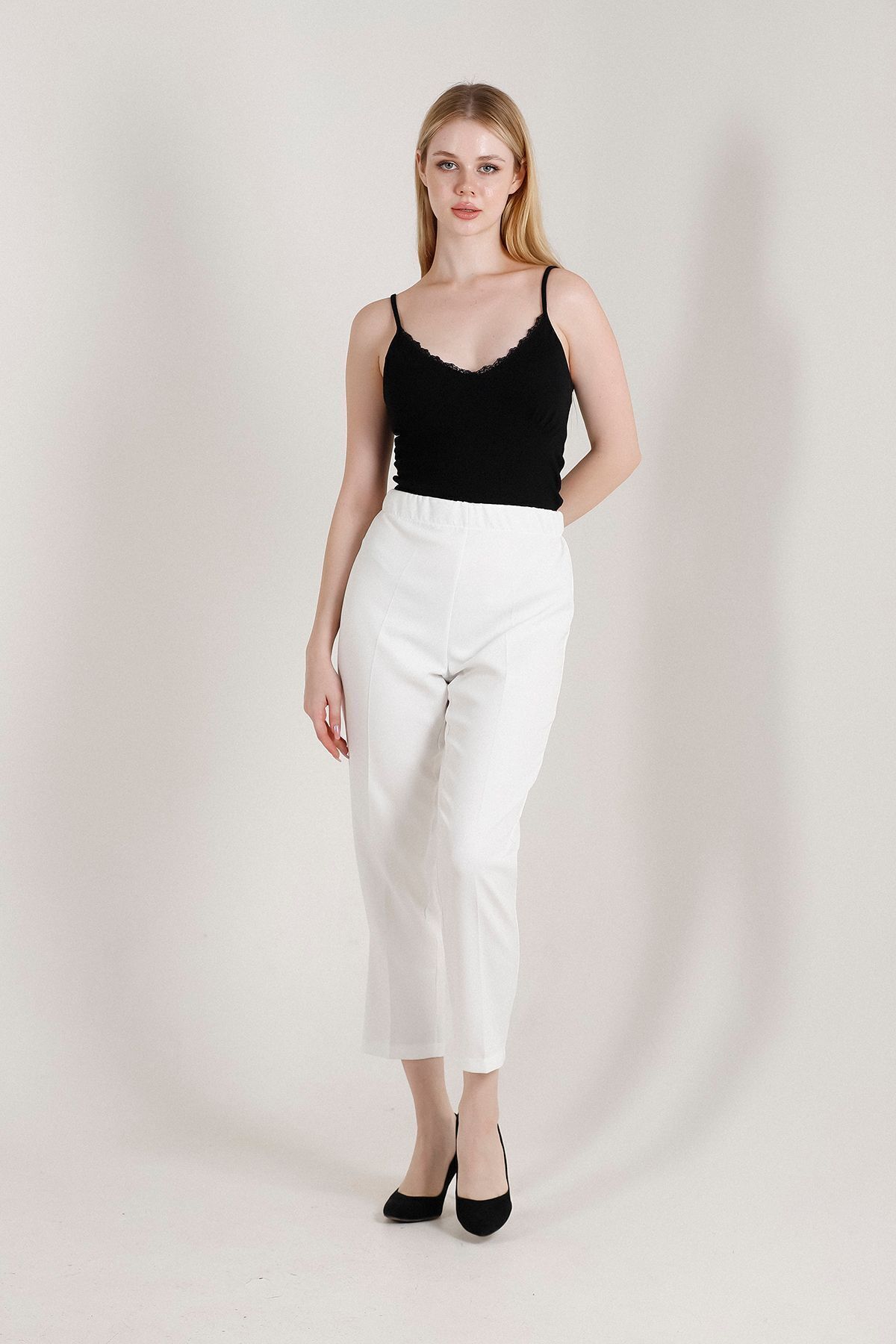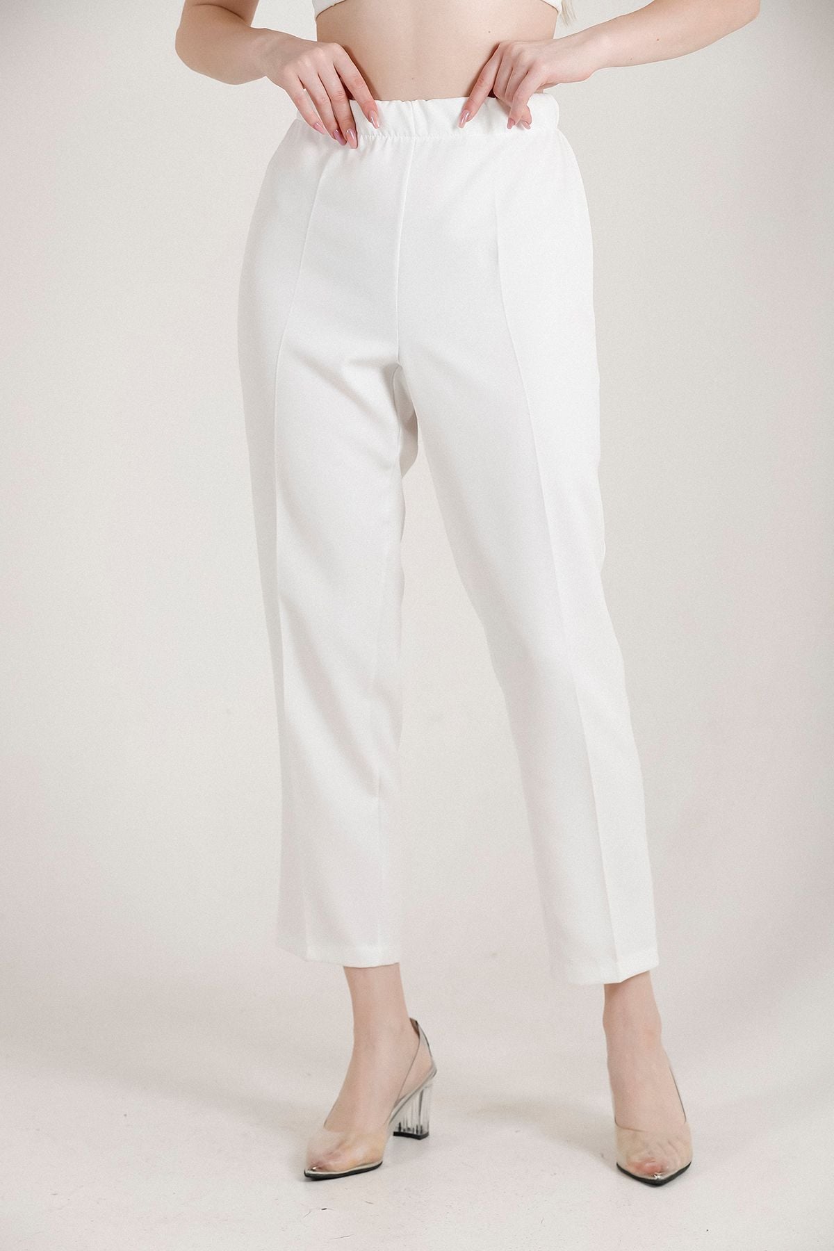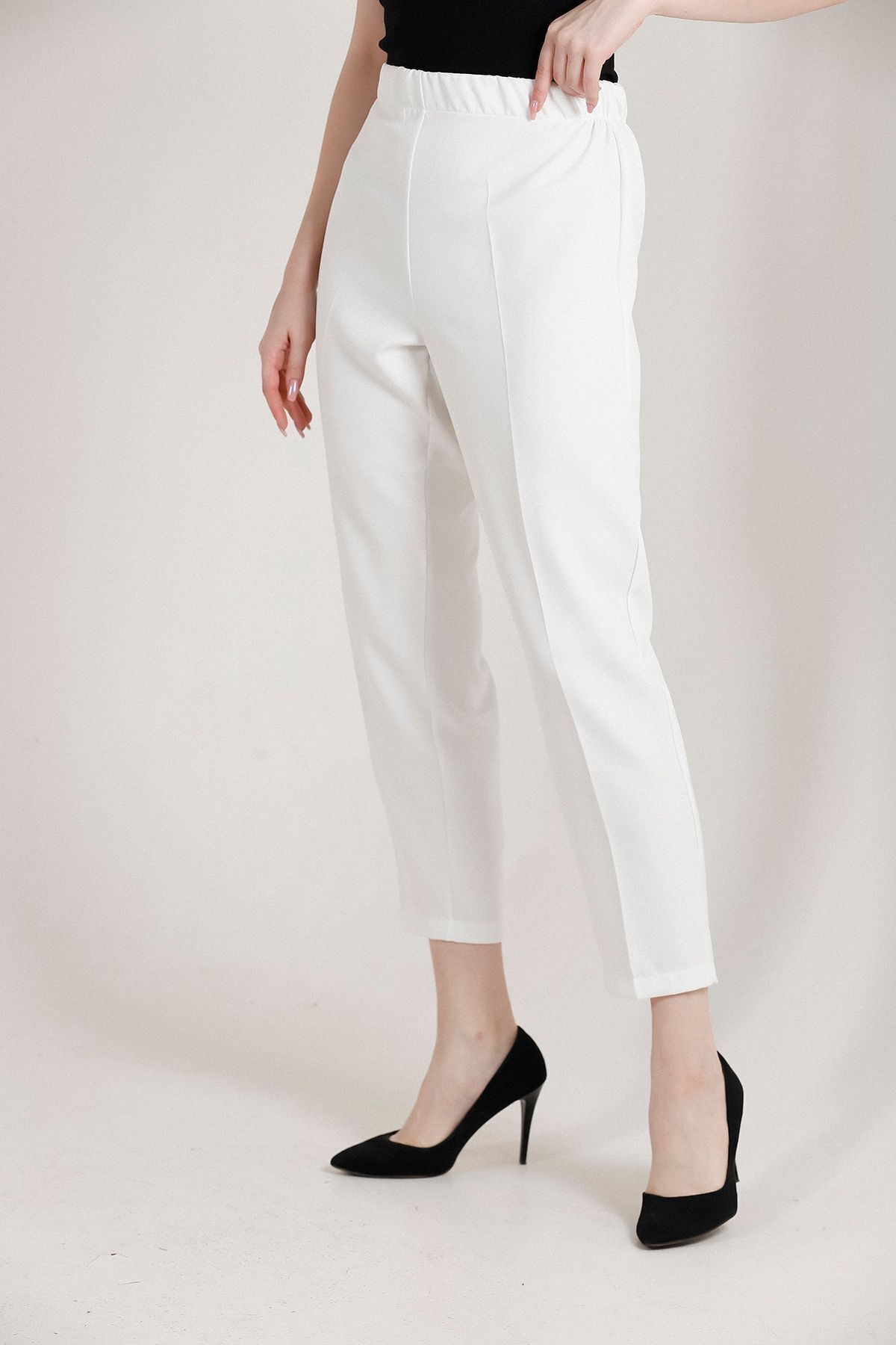 Balenbi Kadın Büyük Beden Havuç Paça Likralı Dokuma Pantolon 1004 50 - Beyaz