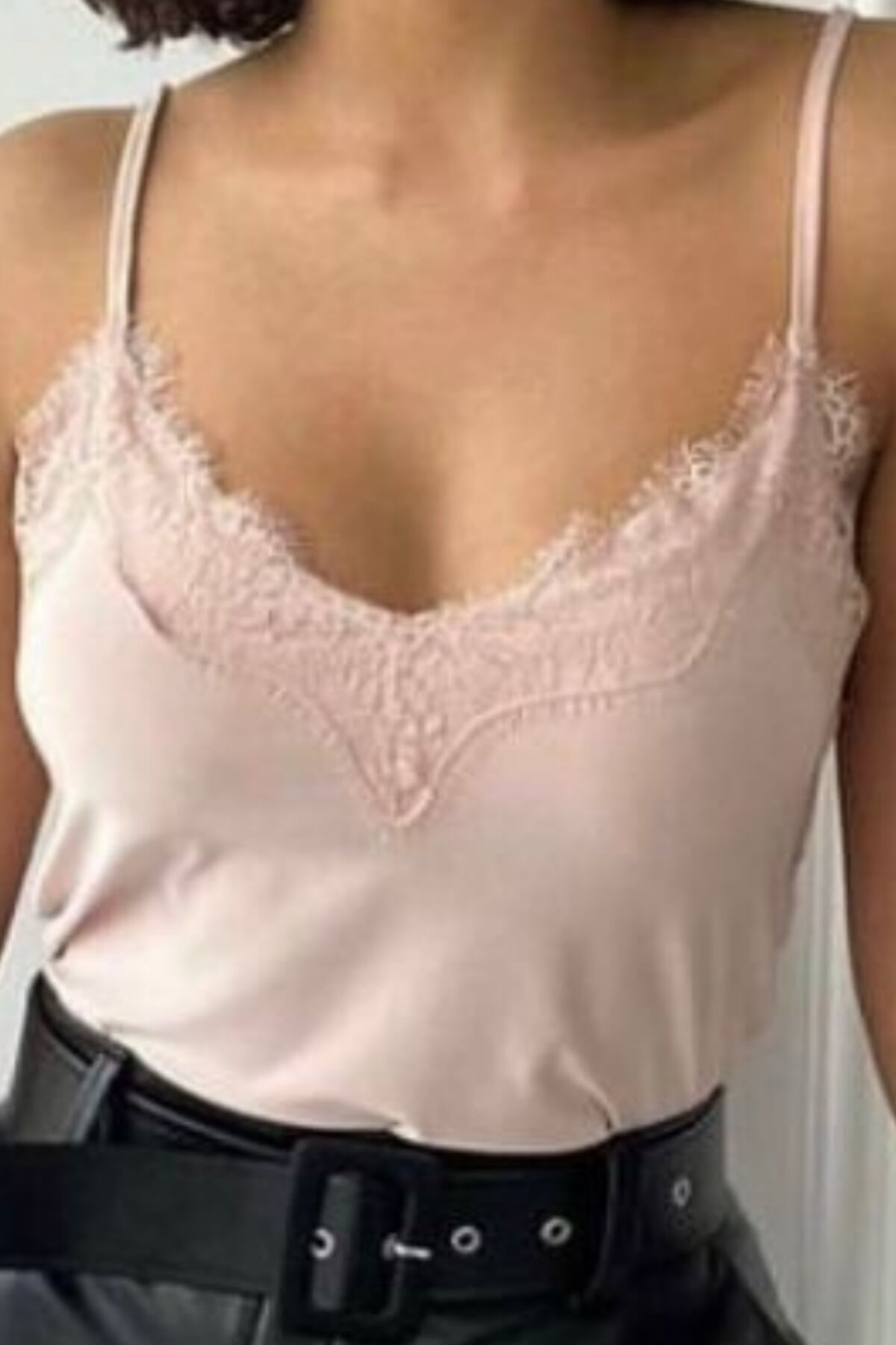 Balenbi Kadın Dantel Detaylı İp Askılı Sandy Bluz 1070 M - Pudra